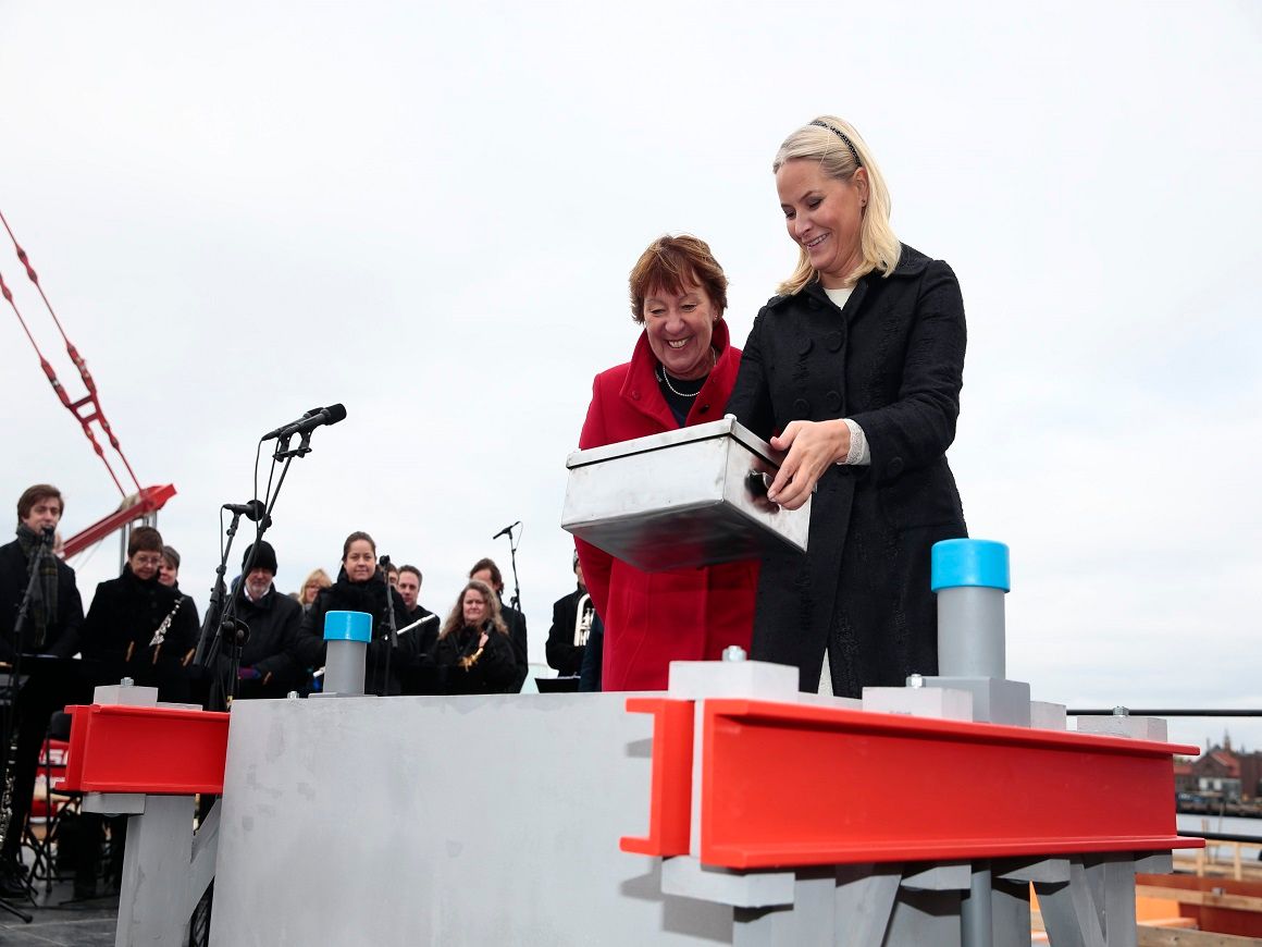 Hennes Kongelige Høyhet Kronprinsesse Mette-Marit la i ettermiddag ned grunnstenen for det nye Munchmuseet i Bjørvika i Oslo. Det nye museet skal etter planen stå ferdig i desember 2019.
