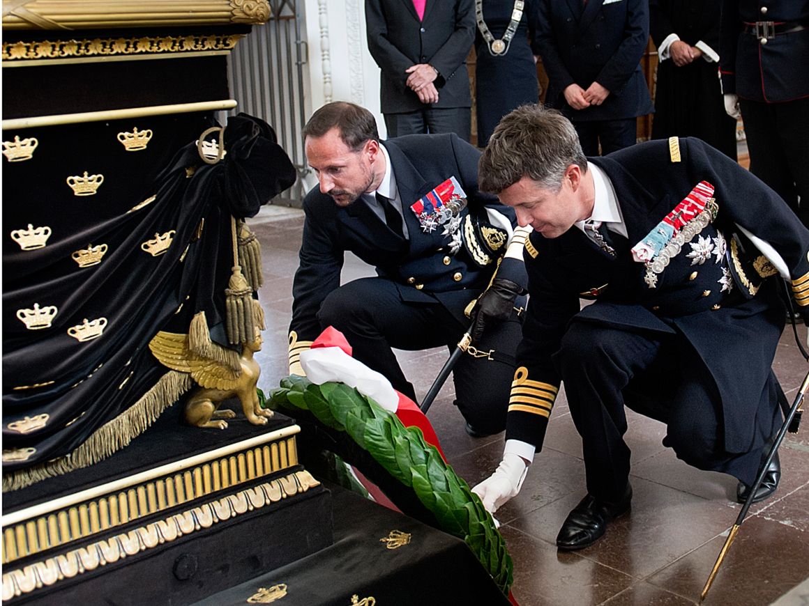 Akkompagnert av stormklokka i Roskilde domkyrkje kom kronprinsane frå Danmark og Noreg for å leggje ned kransar frå begge landa ved grava til han som var Noregs Kong Christian Frederik – og seinare vart Danmarks Christian VIII.