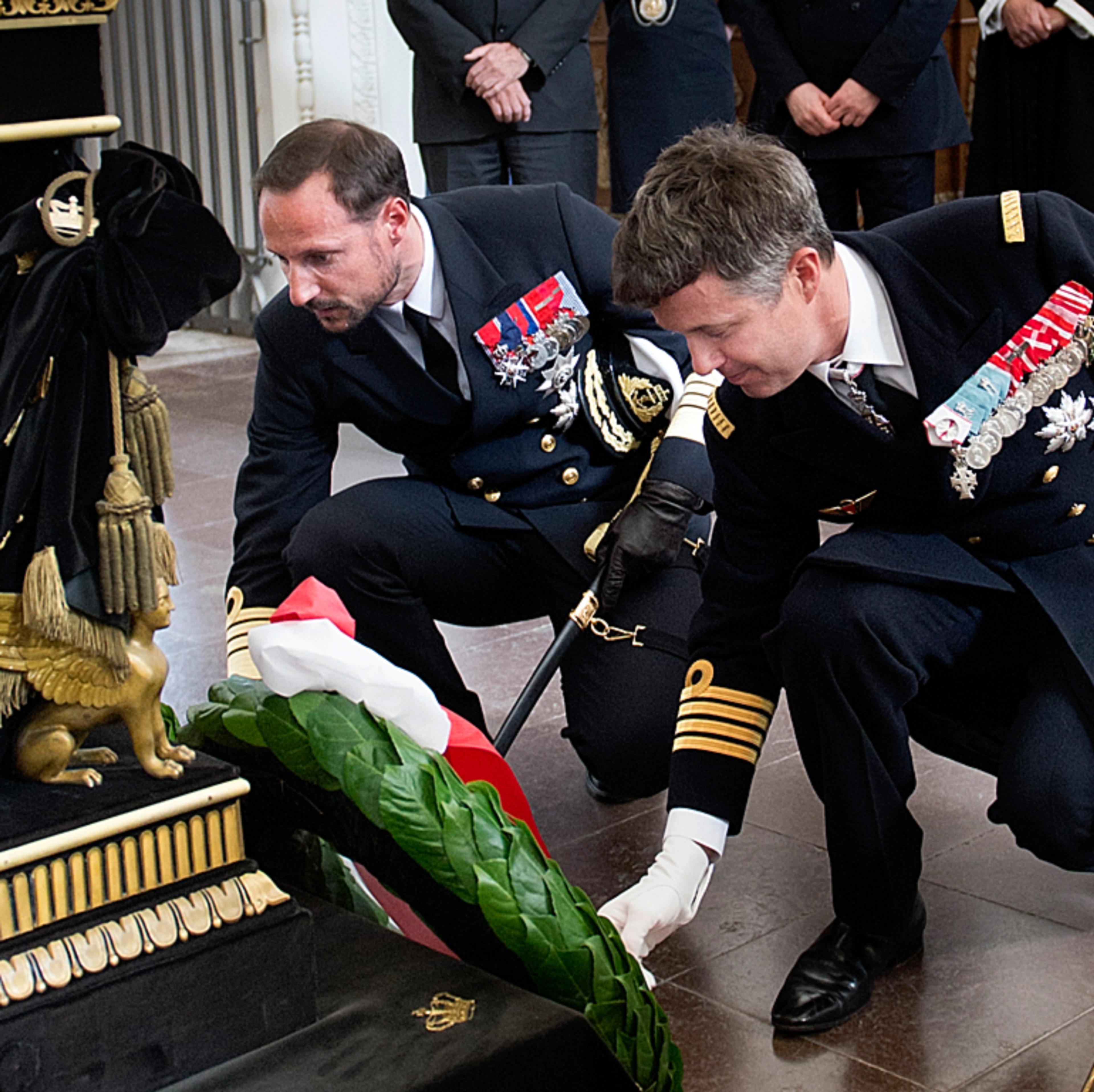 H.K.H. Kronprins Haakon la i dag ned krans ved Kong Christian Frederiks sarkofag i Roskilde domkyrkje. Det same gjorde H.K.H. Kronprins Frederik av Danmark.