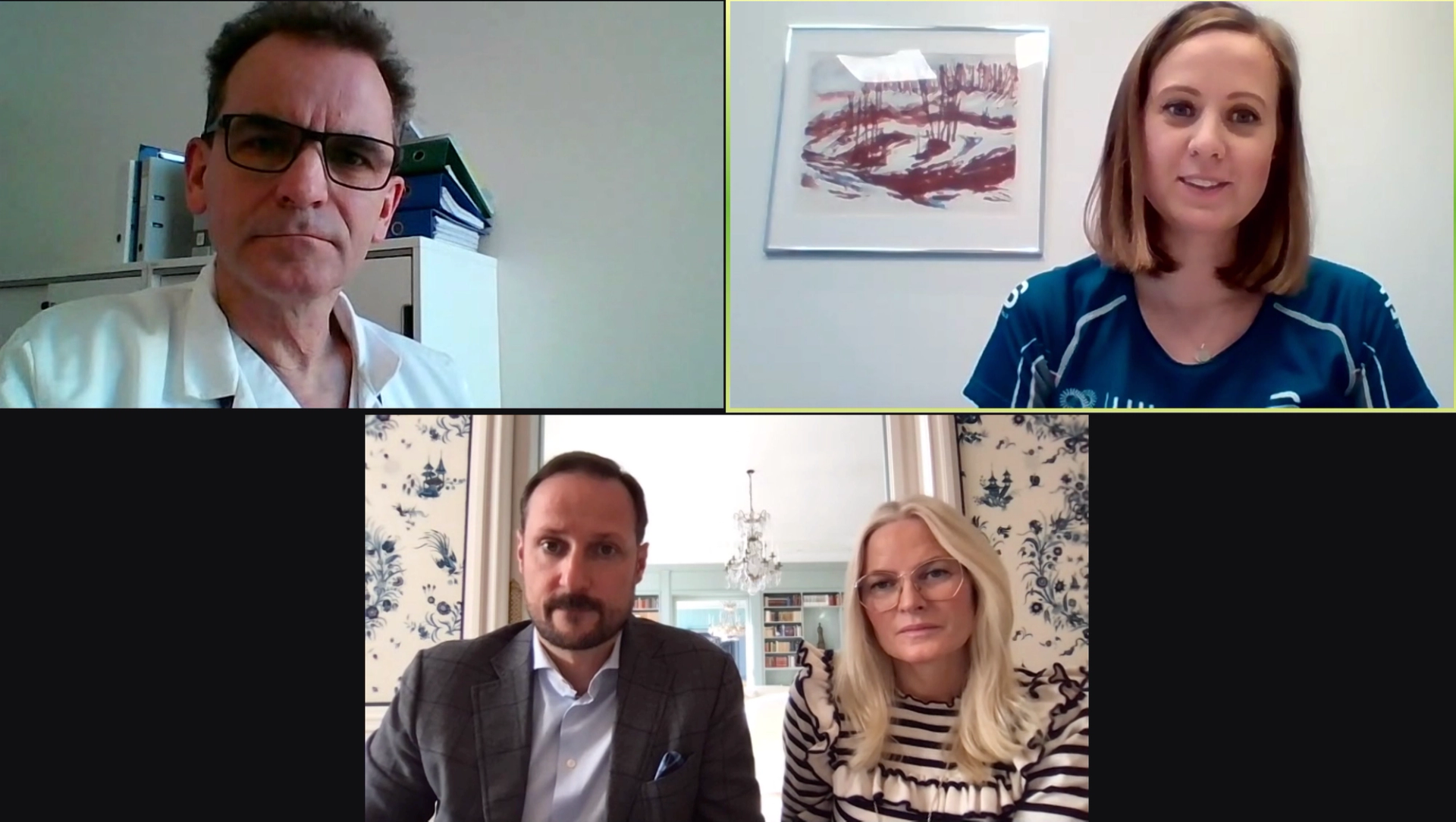 I dag var Deres Kongelige Høyheter Kronprinsen og Kronprinsessen på digitalt besøk til LHL-sykehuset Gardermoen. Der fikk de blant annet møte tre pasienter som i lang tid har slitt med senskader etter covid-19.