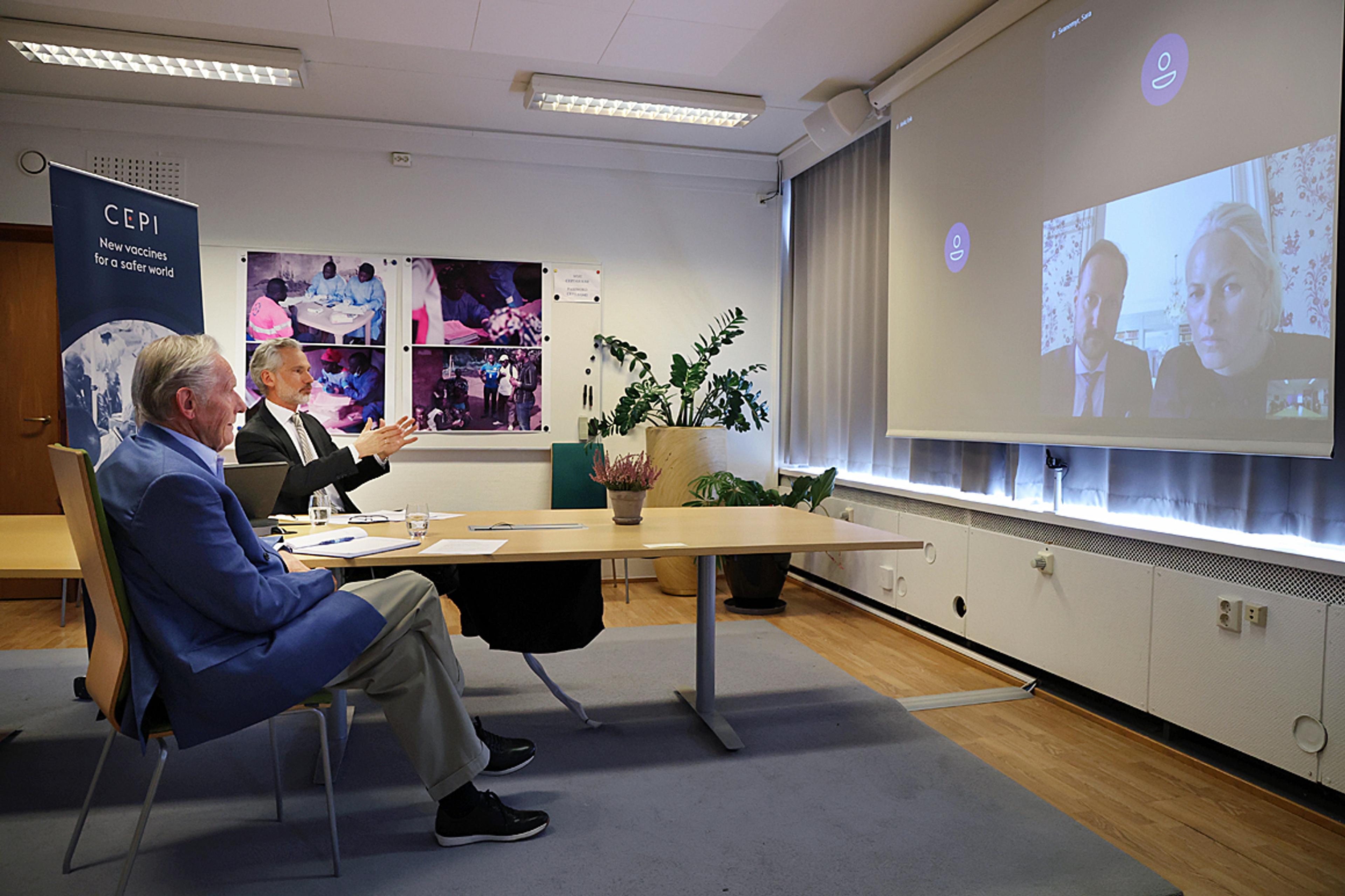 Spesialrådgiver Tore Godal og nestleder Frederik Kristensen i CEPI (Coalition for Epidemic Preparedness Innovations) koordinerer det viktige arbeidet med å utvikle en vaksine mot covid-19.