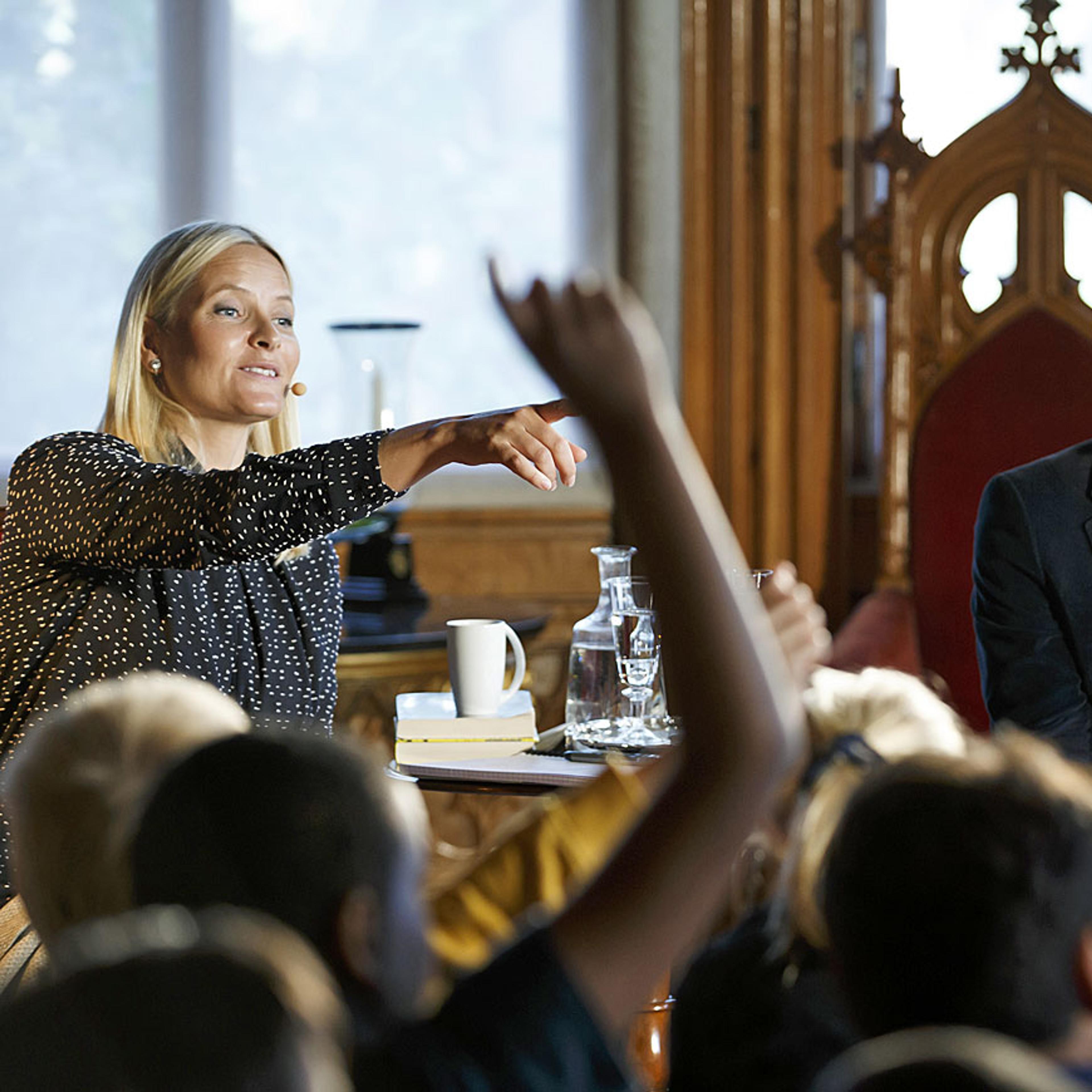 Mange hender ble rukket opp da Kronprinsessen stilte spørsmål om alt fra hvor de leste og hva de akkurat hadde lest til hva de var redde for.