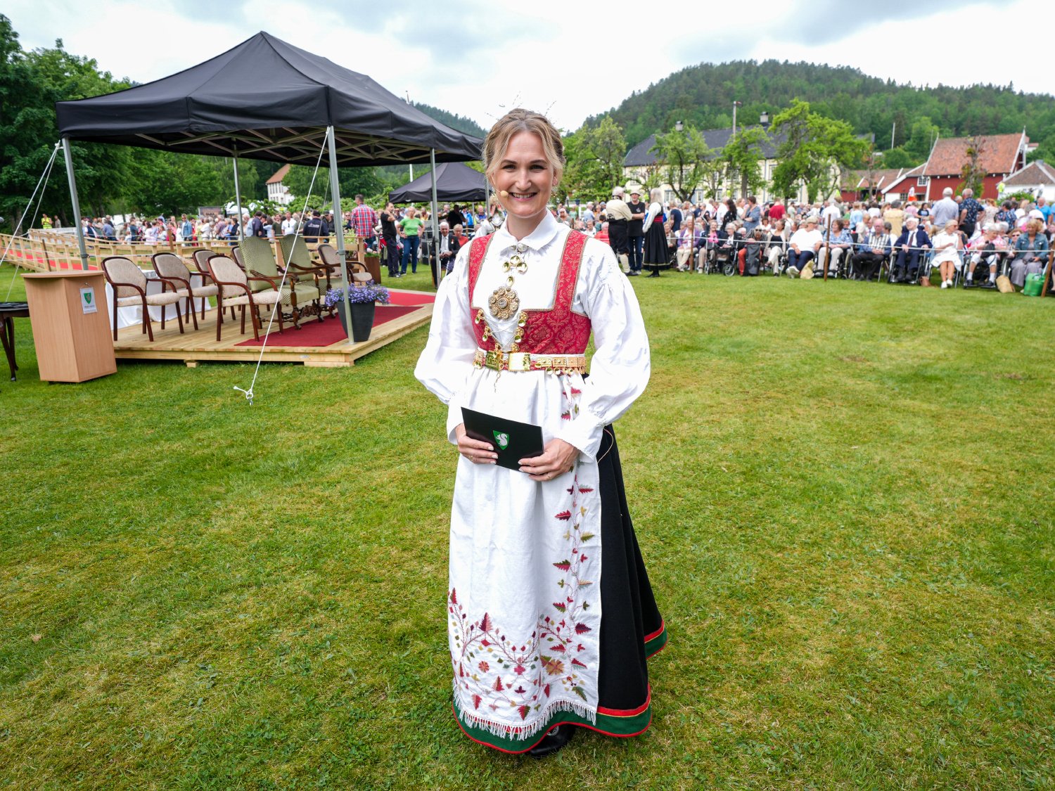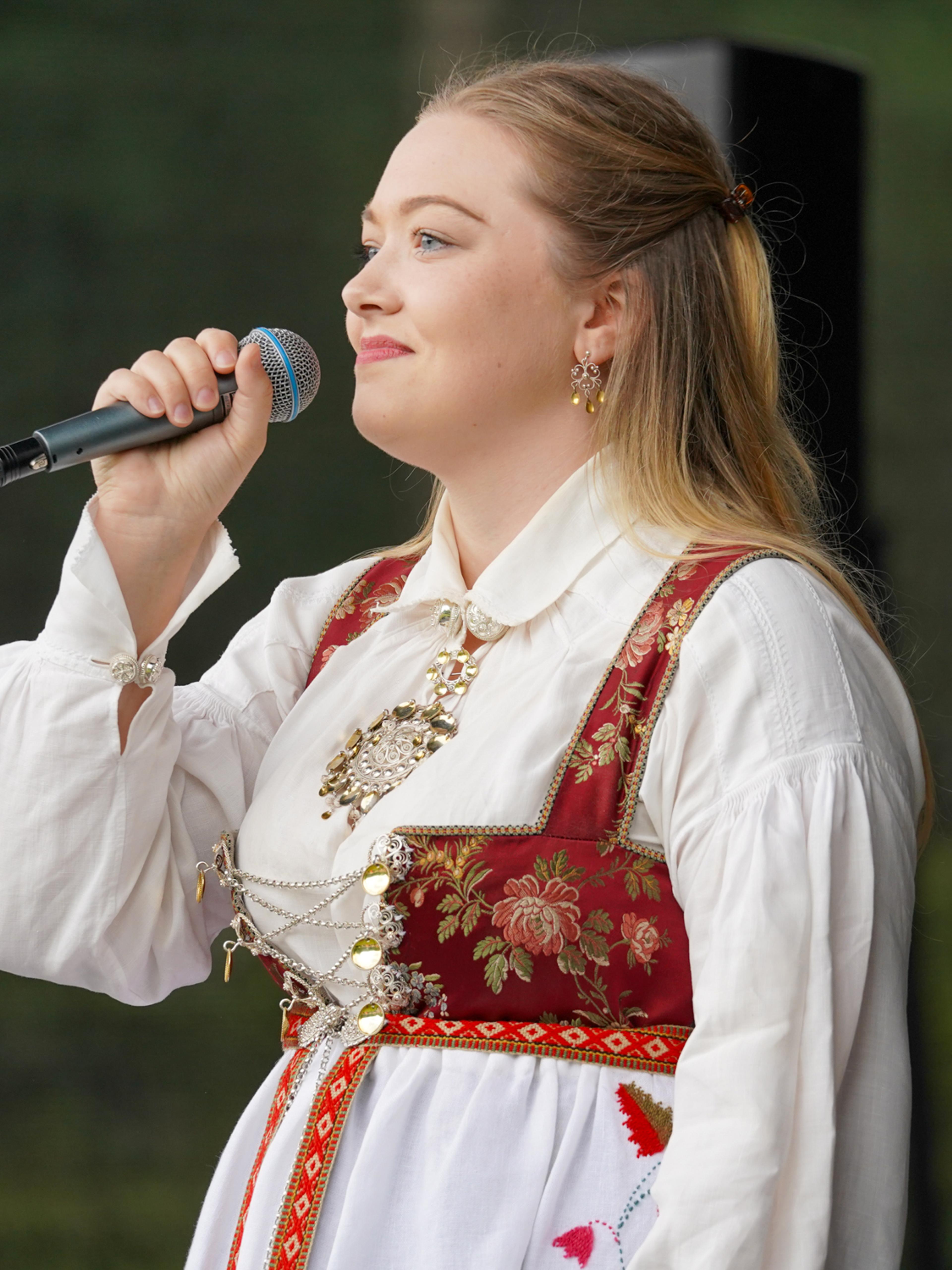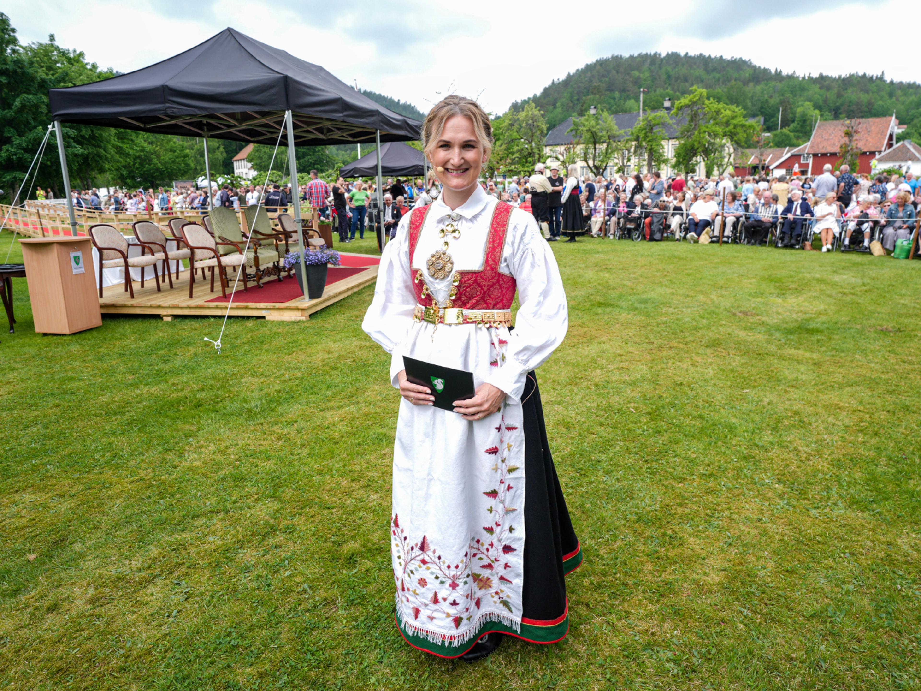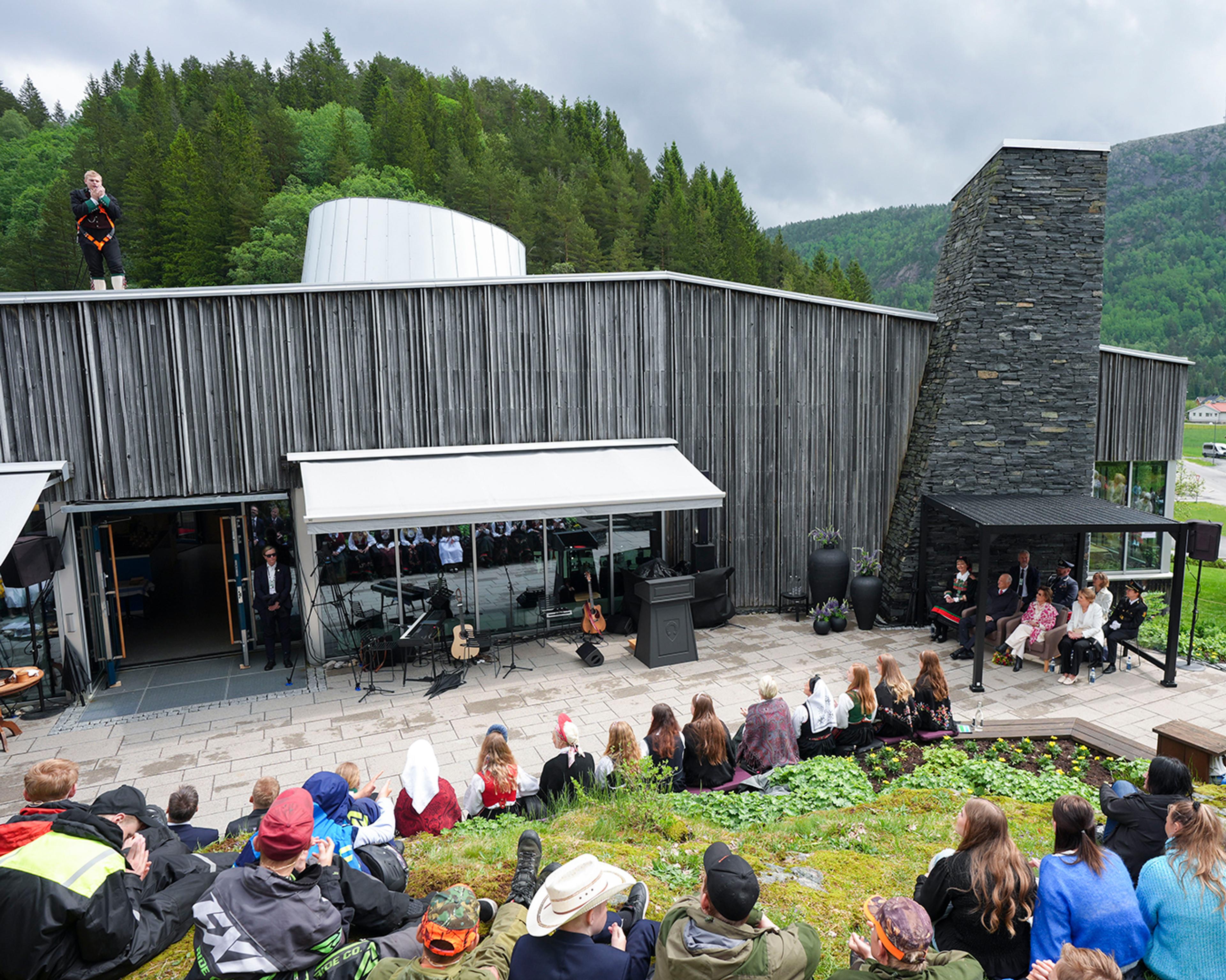 – Det at ein kommune på litt over 900 menneske kan vise til eit så aktivt kulturliv, er rett og slett imponerande, sa Dronning Sonja på talarstolen i Kyrkjebygda, i hagen ved Minne kultursenter.