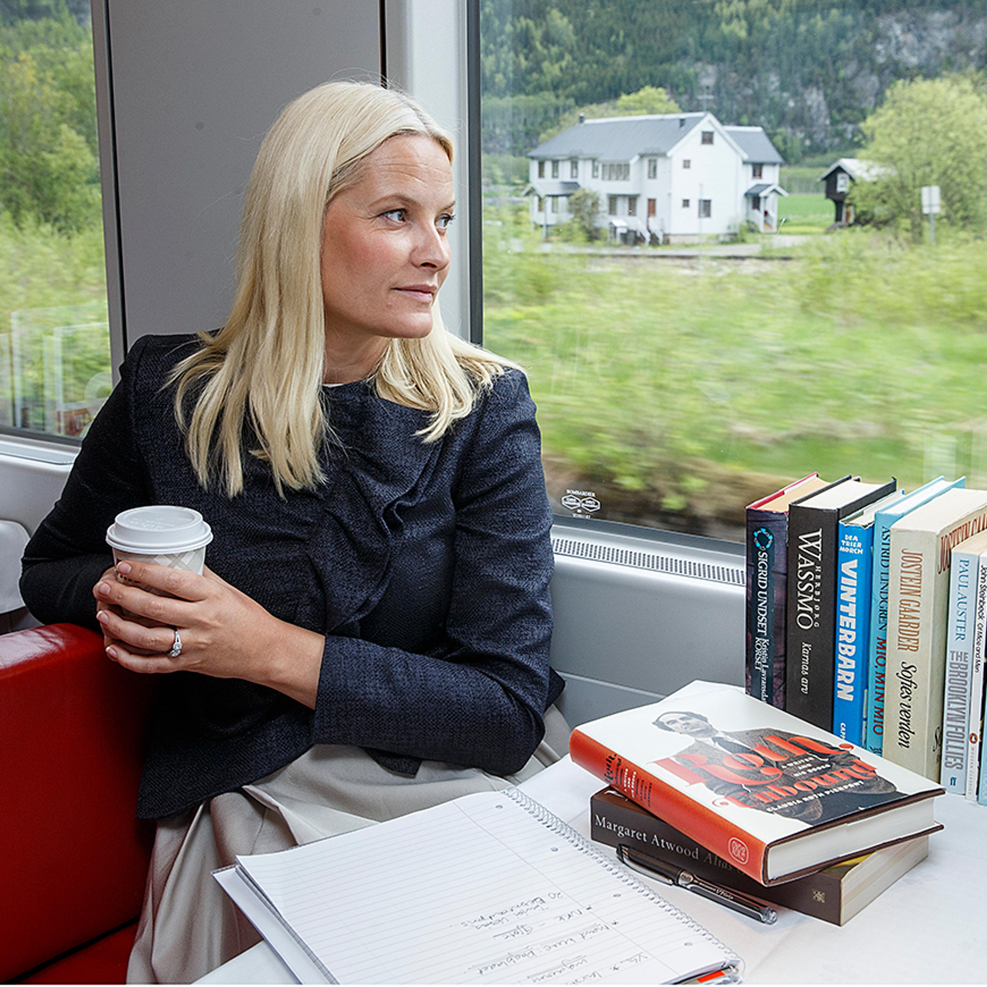 Kronprinsesse Mette-Marit deltar også i en samtale på Litteraturtorget i Lillehammer i morgen, før hun igjen går ombord i toget og setter kursen for Hamar, som er endestasjon denne gangen.