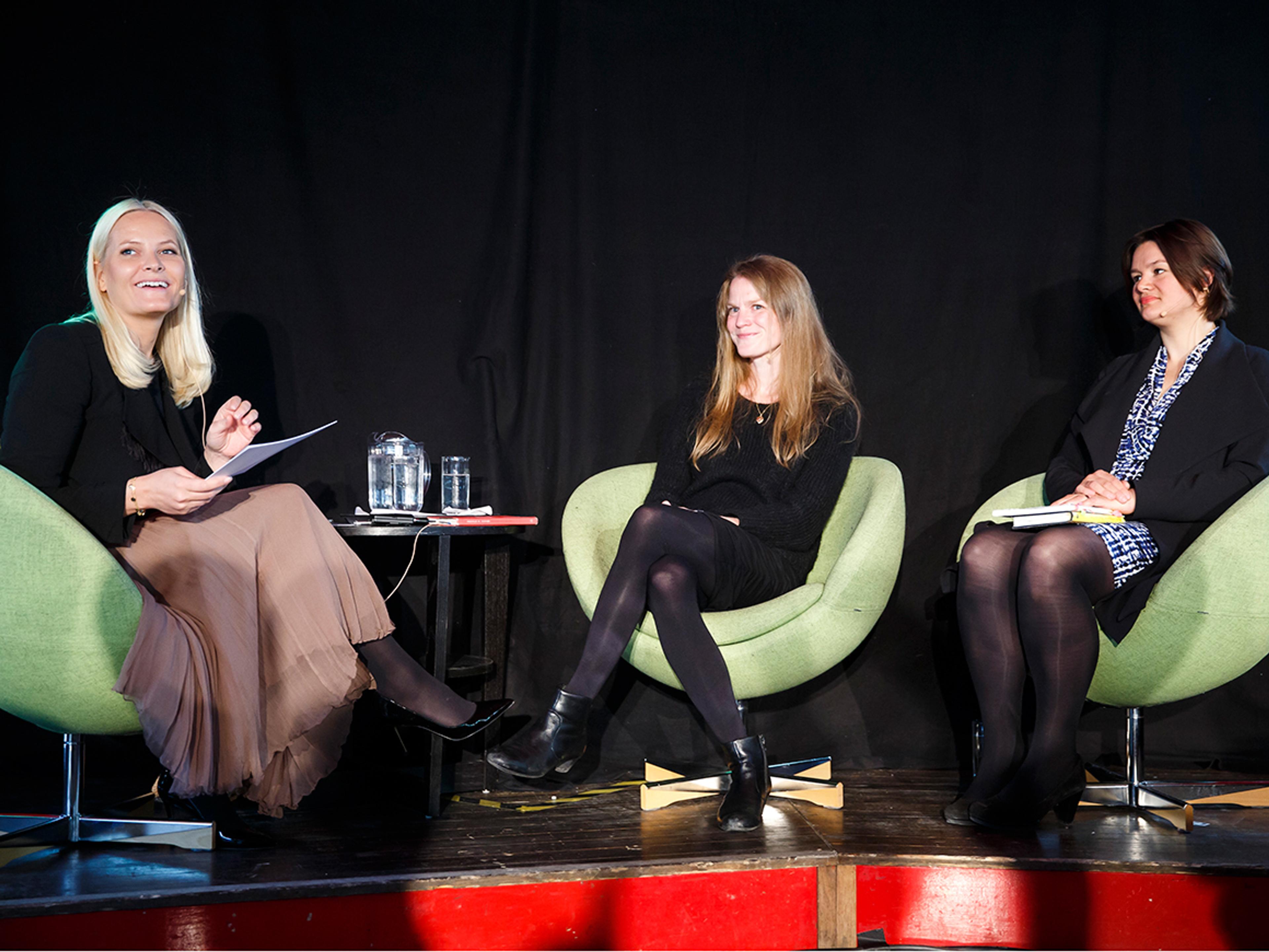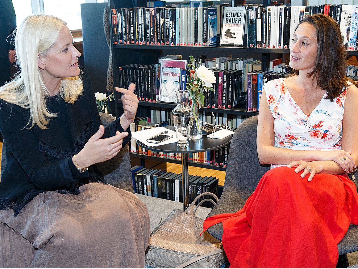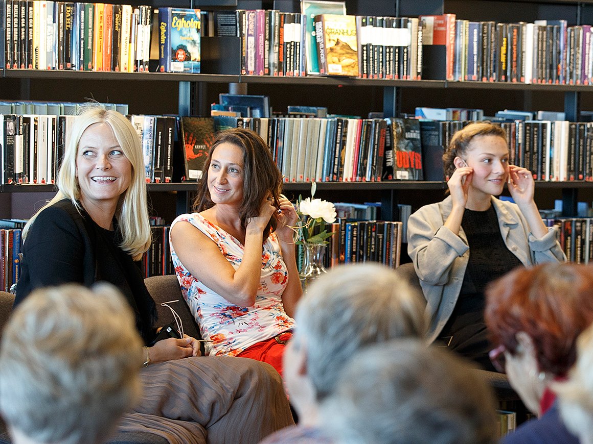 Med seg i salongen hadde Kronprinsessen forfatterne Ruth Lillegraven og Ingvild H. Rishøy, som begge har blitt tildelt Brageprisen for bøker de har skrevet - Lillegraven for diktsamlingen Urd i 2013, og Rishøy for novellesamlingen Vinternoveller i 2014.