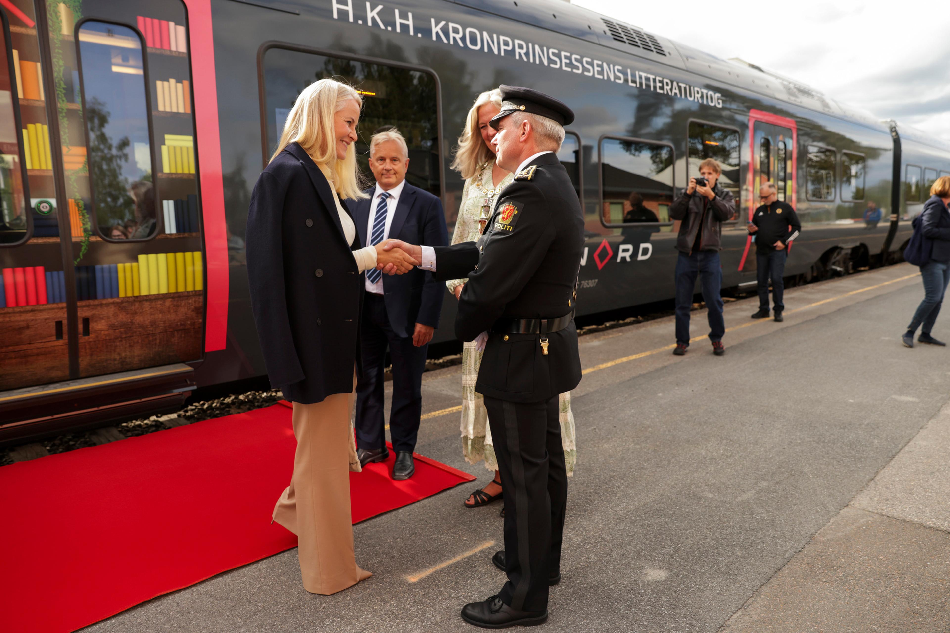 Hennes Kongelige Høyhet Kronprinsessen reiste i dag ut på tur med Litteraturtoget igjen. Den lille bokfestivalen på skinner går i år fra Elverum til Røros.
