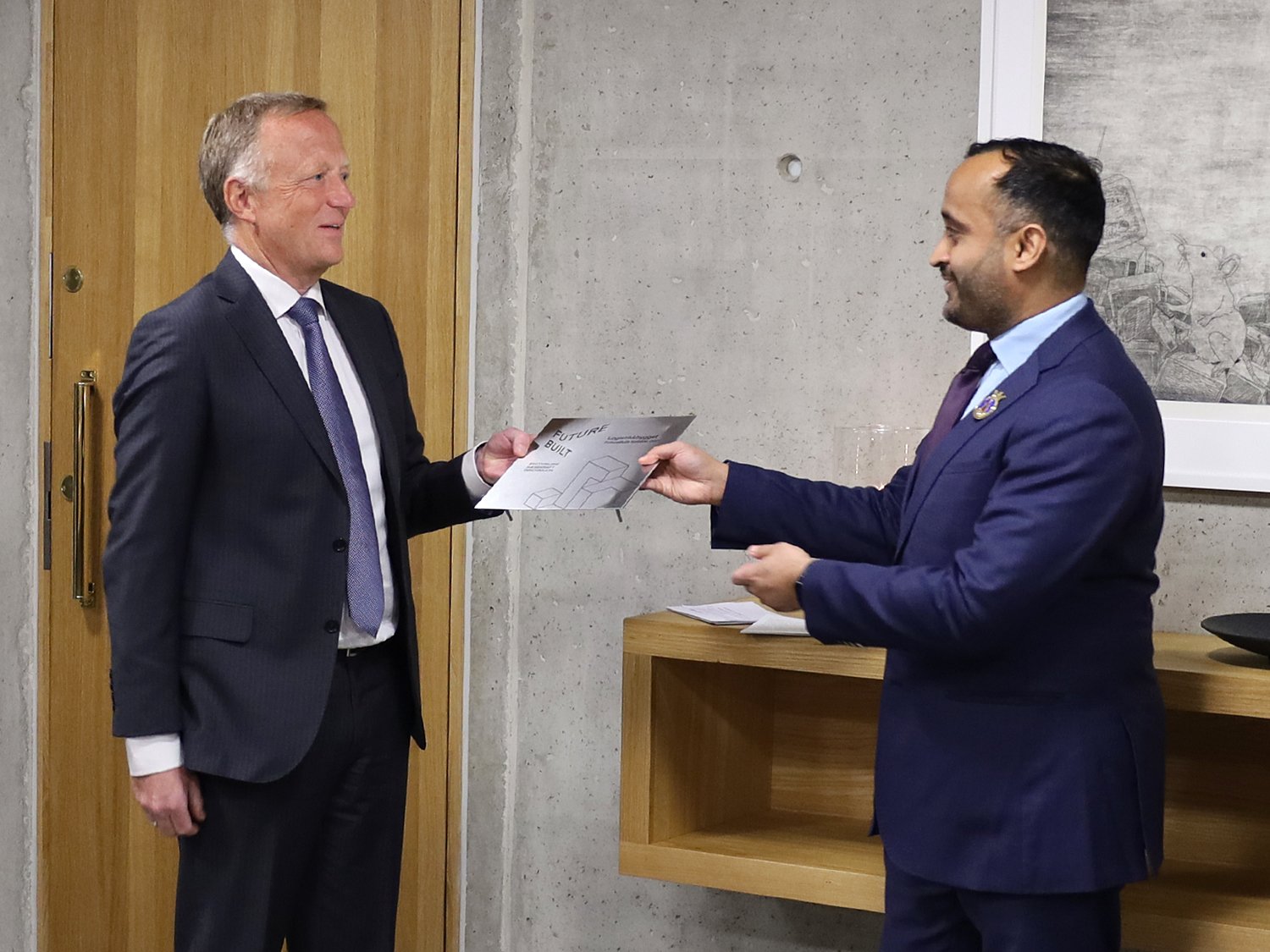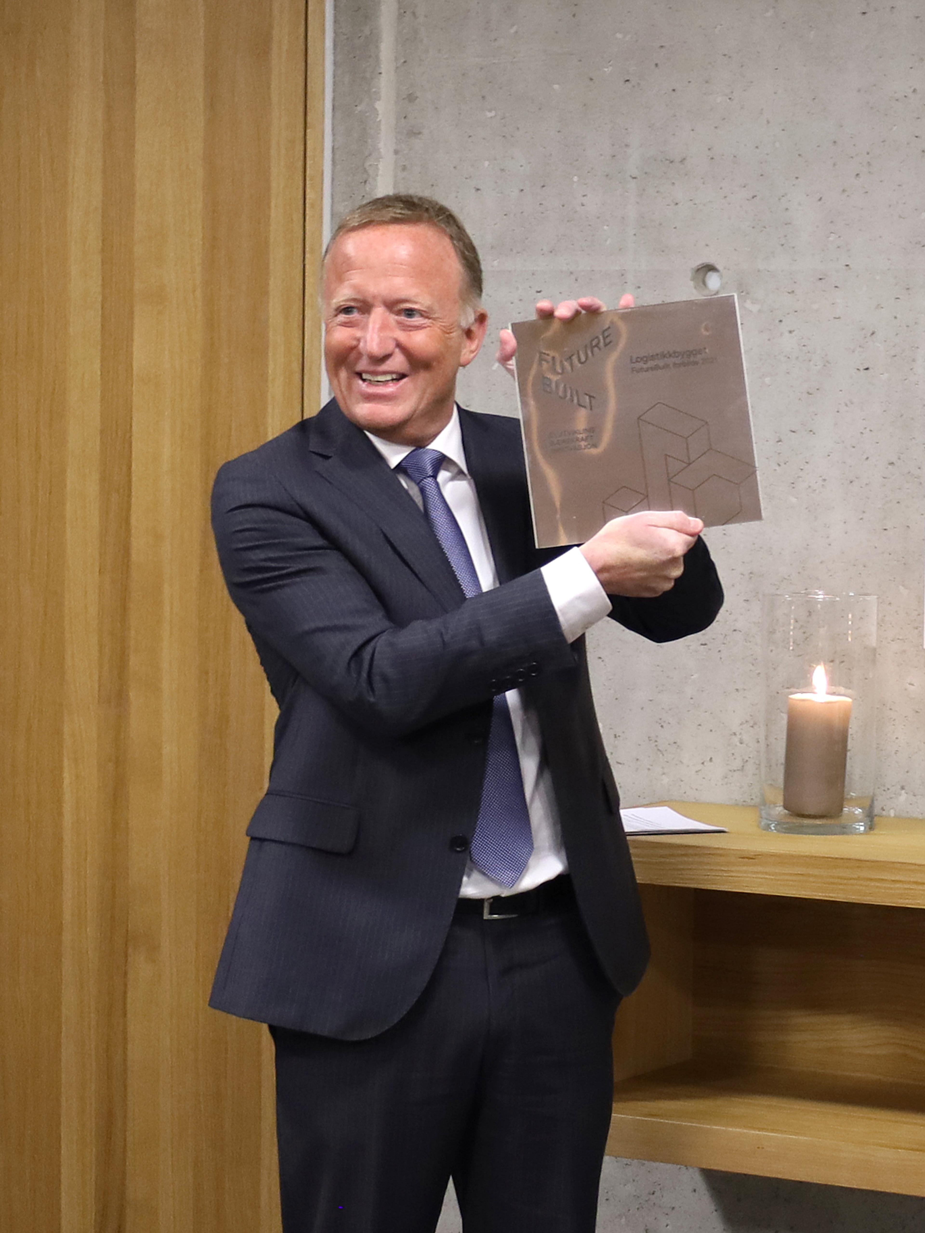 Statsbygg innledet et samarbeid med FutureBuilt. Logistikkbygget ble det 42. forbildeprosjektet i FutureBuilts portefølje, kunne varaordfører Abdullah Alsabeehg fortelle da han talte under dagens markering. Oslo kommune er en av flere samarbeidspartnere i FutureBuilt, og målet er å flytte byggenæringen i mer miljøvennlig retning. Varaordføreren overrakte FutureBuilts plakett til Statsbyggs administrerende direktør, Harald Vaagaasar Nikolaisen.