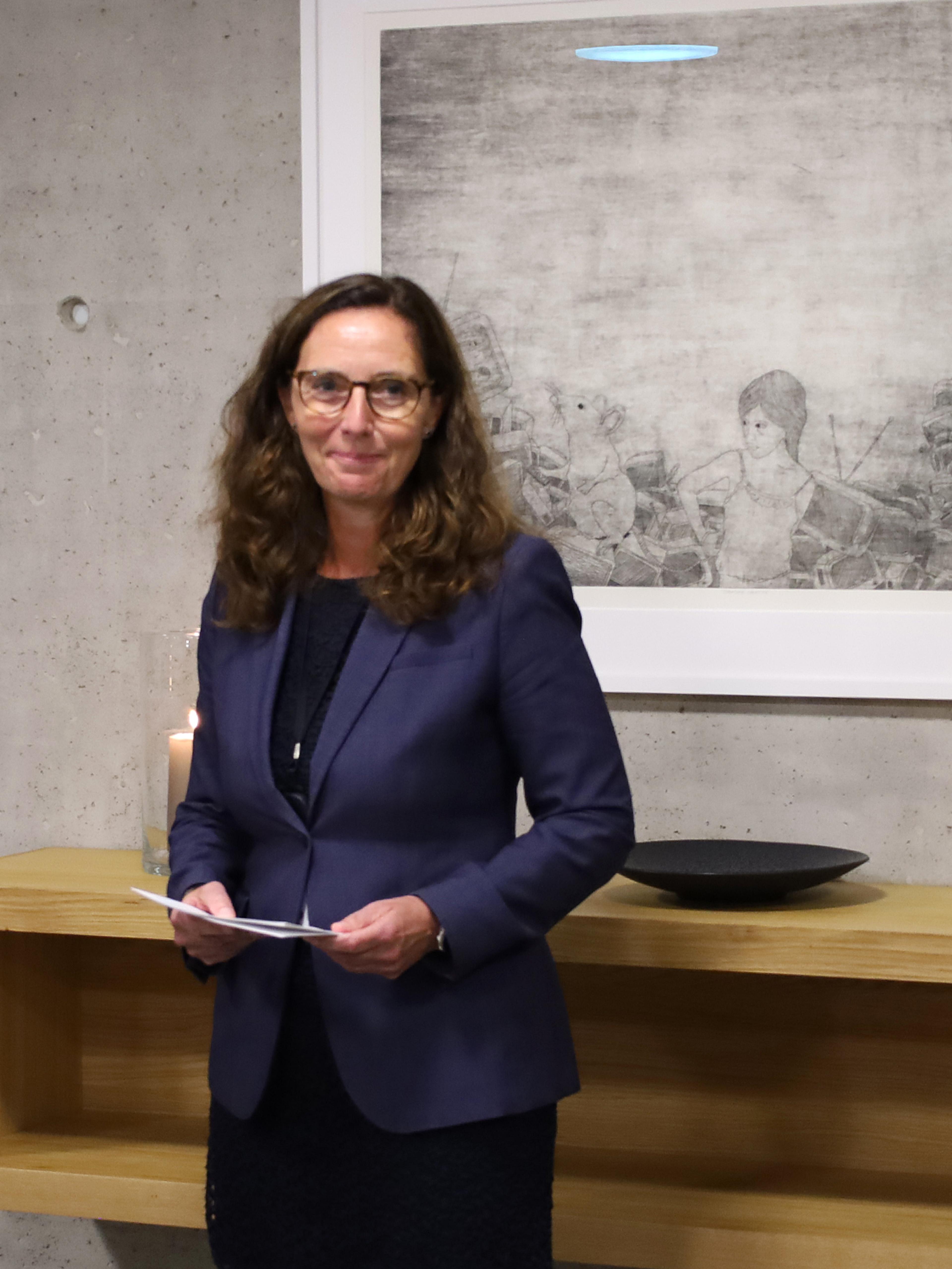 Statssekretær Gunn Karin Gjul fra Kommunal- og distriktsdepartementet understreket også Logistikkbyggets viktige rolle i sikkerhetsarbeidet som har blitt gjennomført ved De kongelige eiendommer de senere årene. På vegne av oppdragsgiveren ga hun FutureBuilt-plaketten videre til Kronprins Haakon.