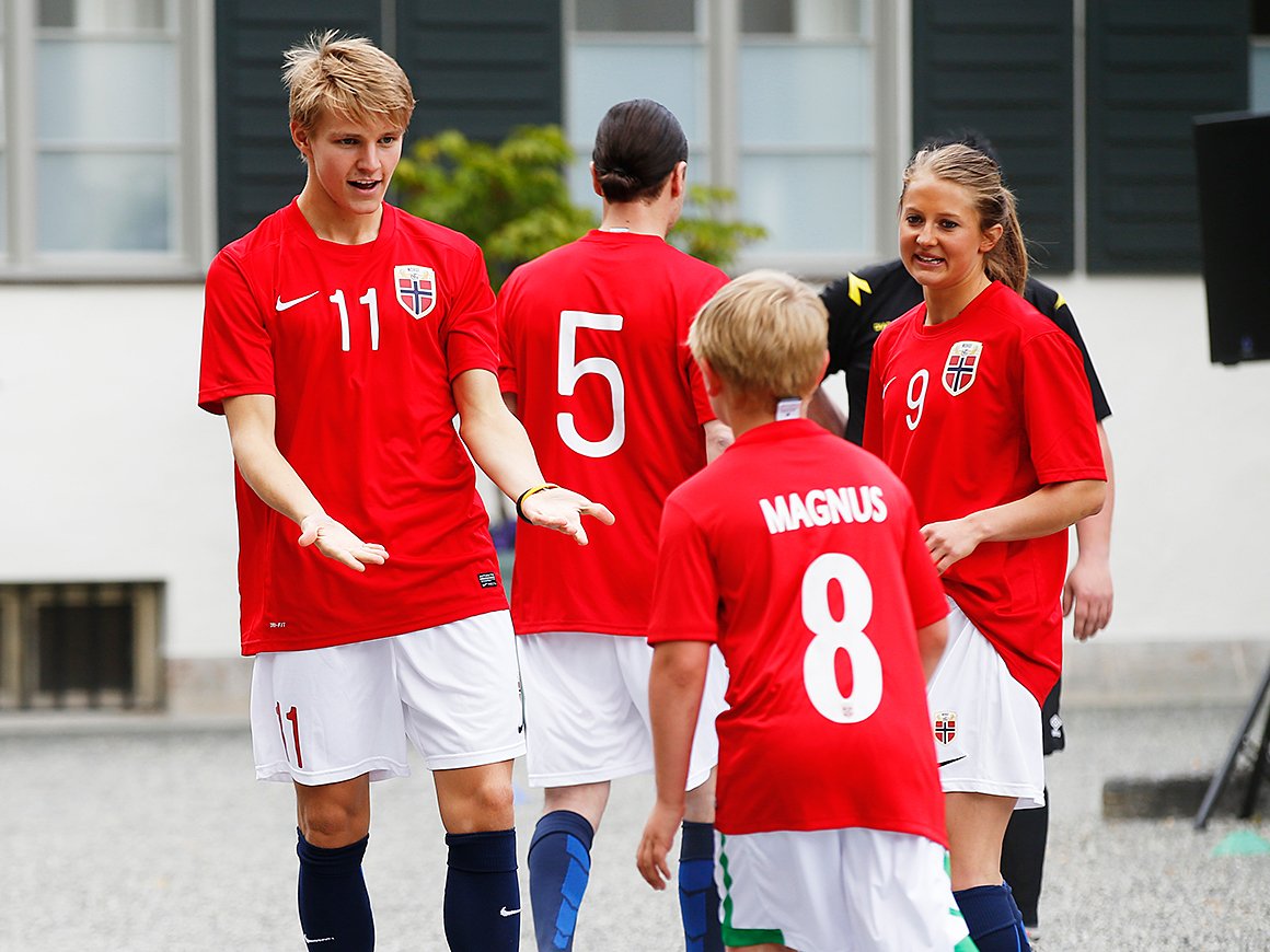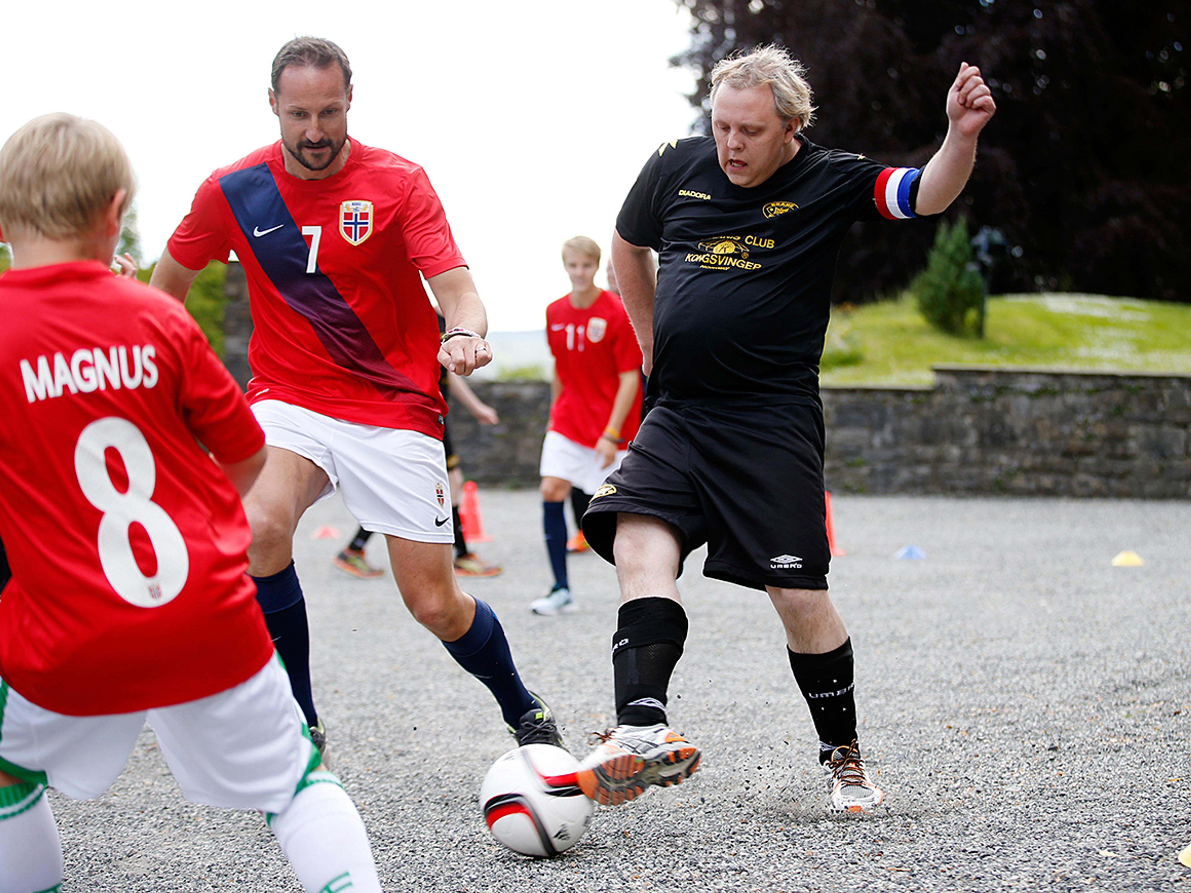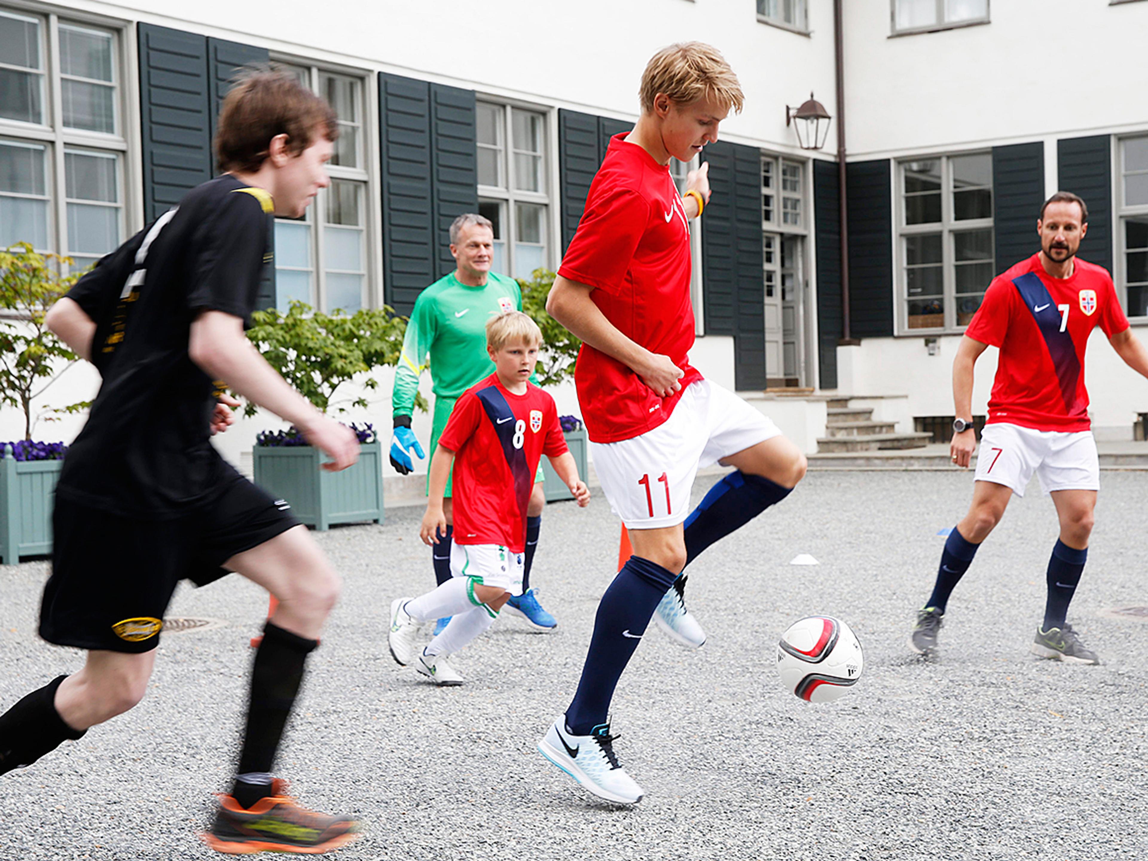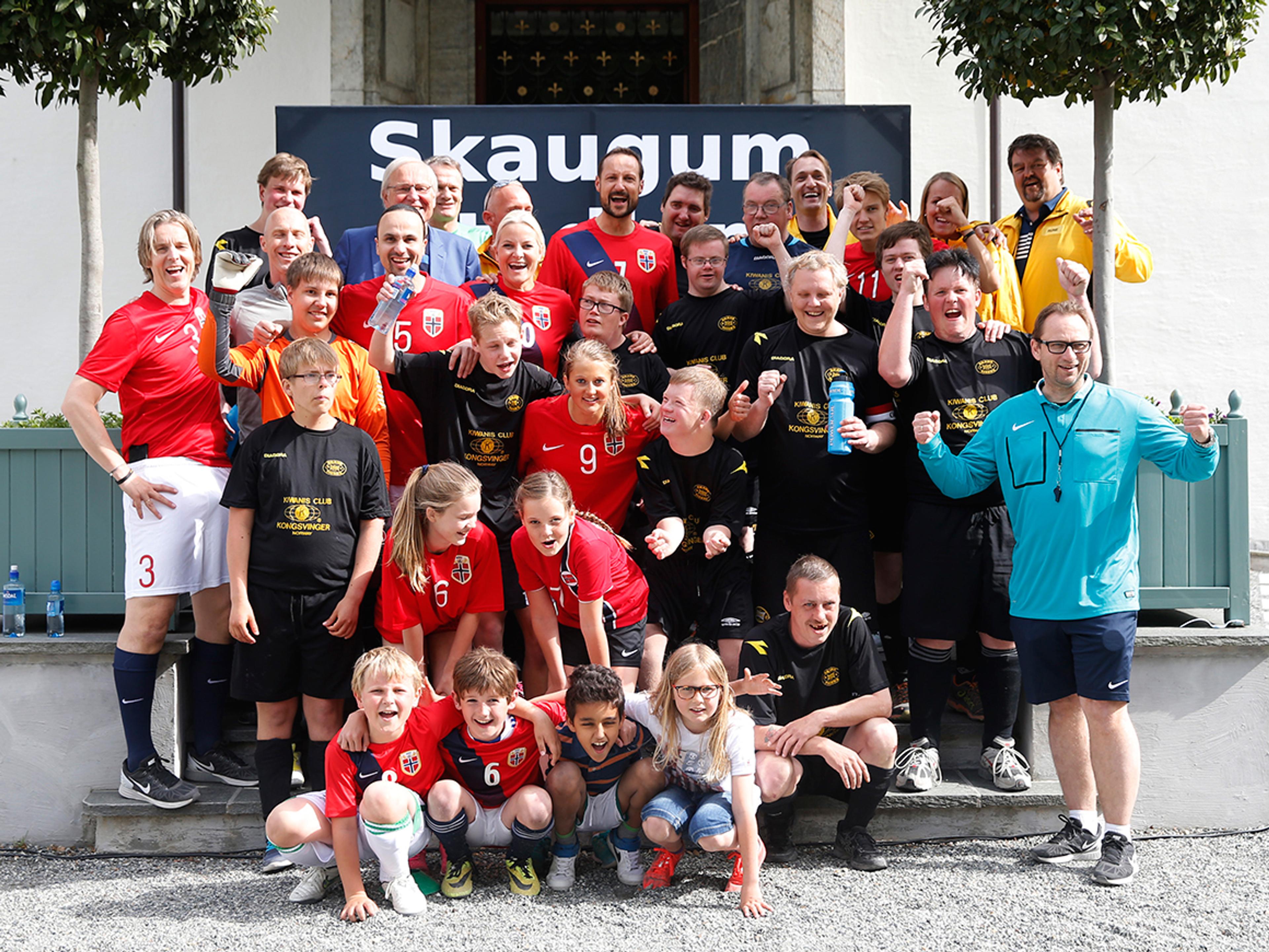 Real Madrids Martin Ødegaard, veteranene Jan Åge Fjørtoft og Frode Grodås, og dertil Ingvild Flugstad Østberg forsterket Skaugum-laget der både Kronprinsparet, Prinsesse Ingrid Alexandra og Prins Sverre Magnus stilte.