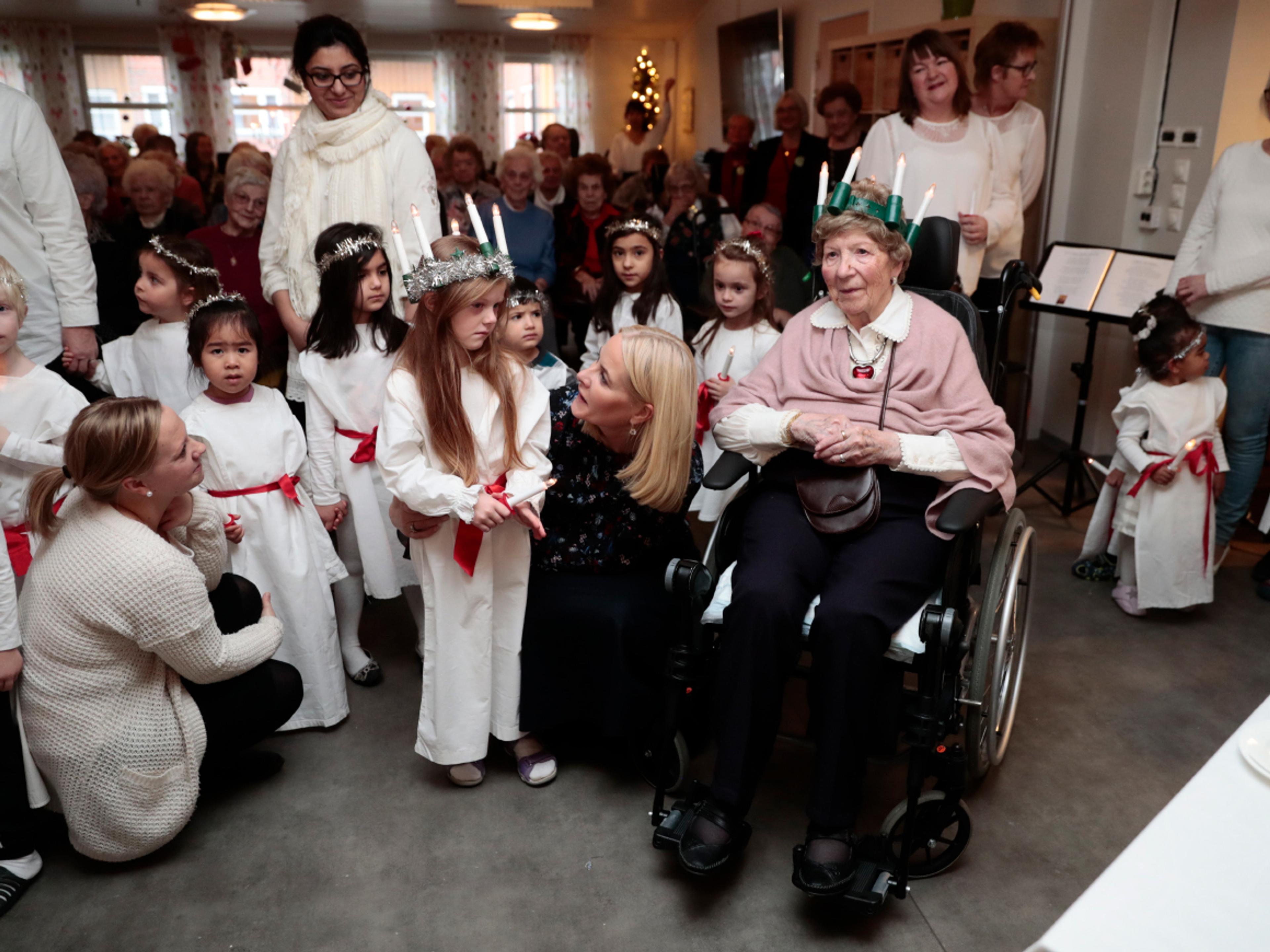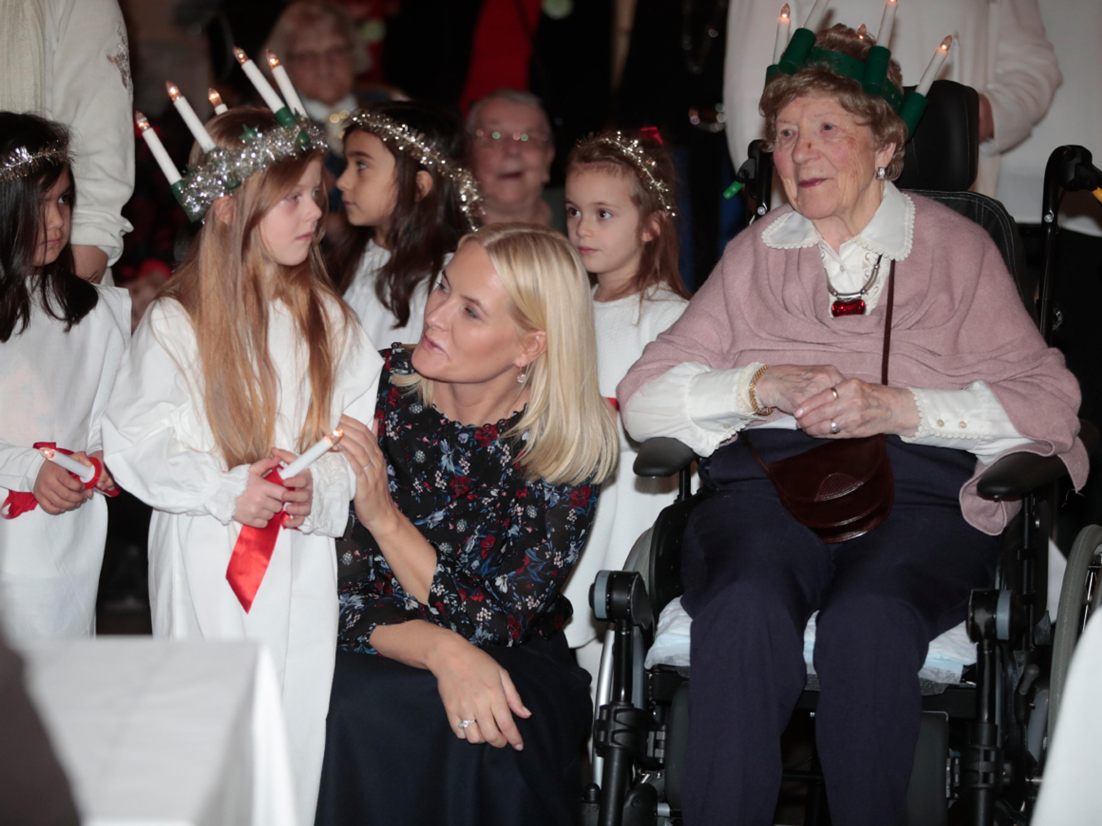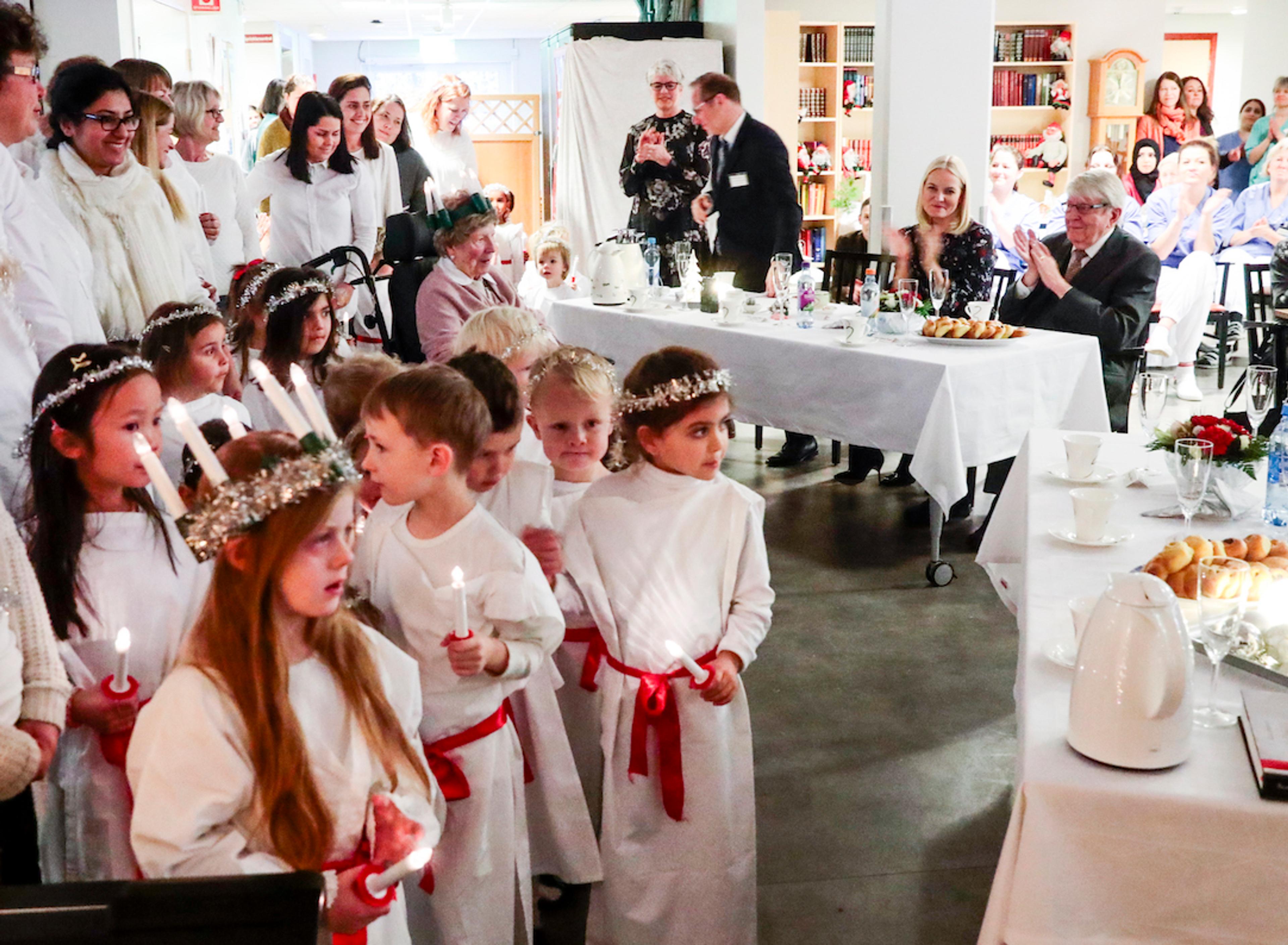 Lussekatter og korsang sto på programmet i dag. Deres Kongelige Høyheter Kronprinsen og Kronprinsessen var invitert til julebesøk og Luciafeiring på Lørenskog Sykehjem.