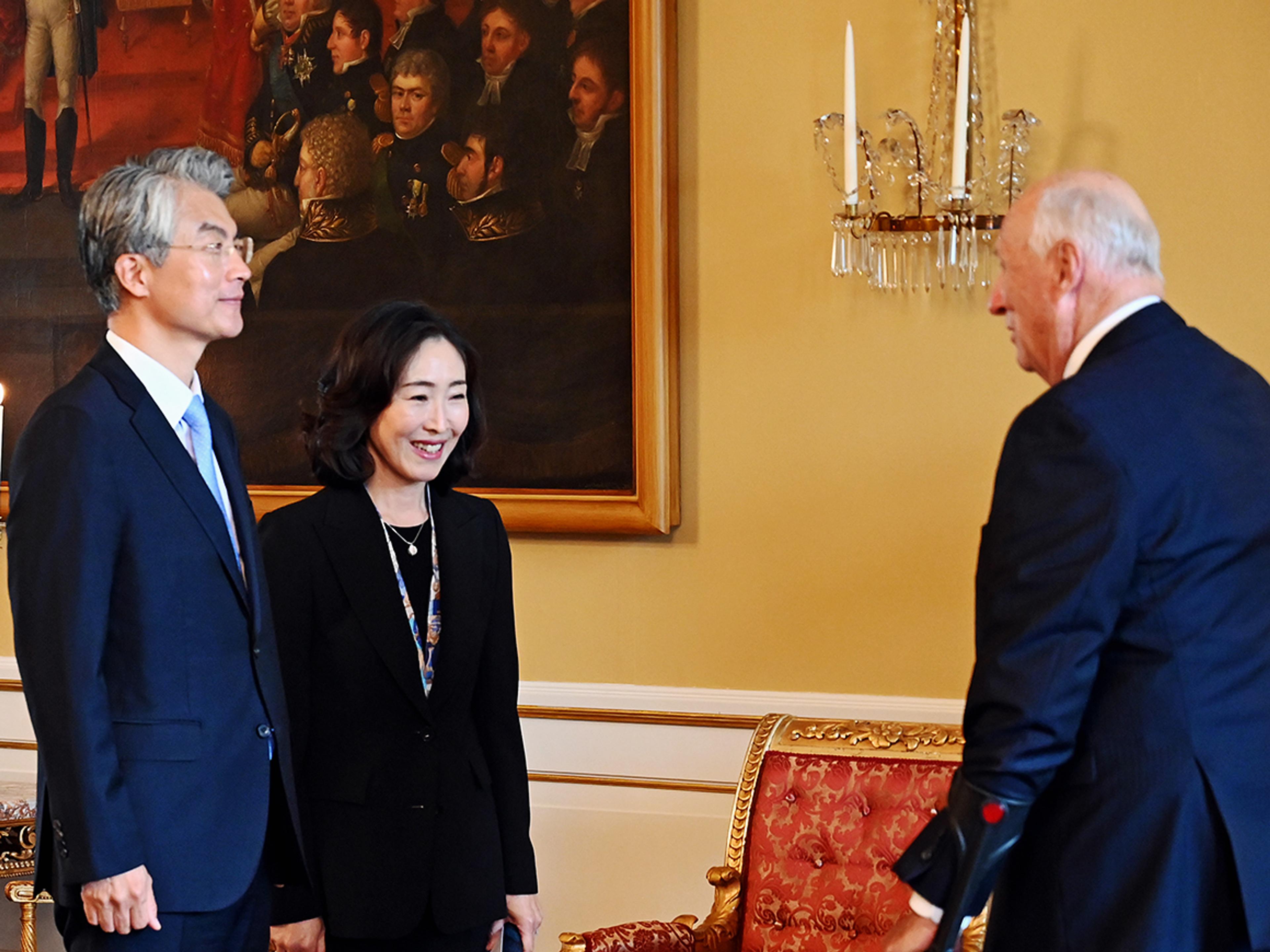 Det er tradisjon at Kongeparet inviterer nye ambassadører til lunsj, men på grunn av pandemien og strenge smittevernregler har det ikke vært mulig å gjennomføre slike arrangement på Slottet.