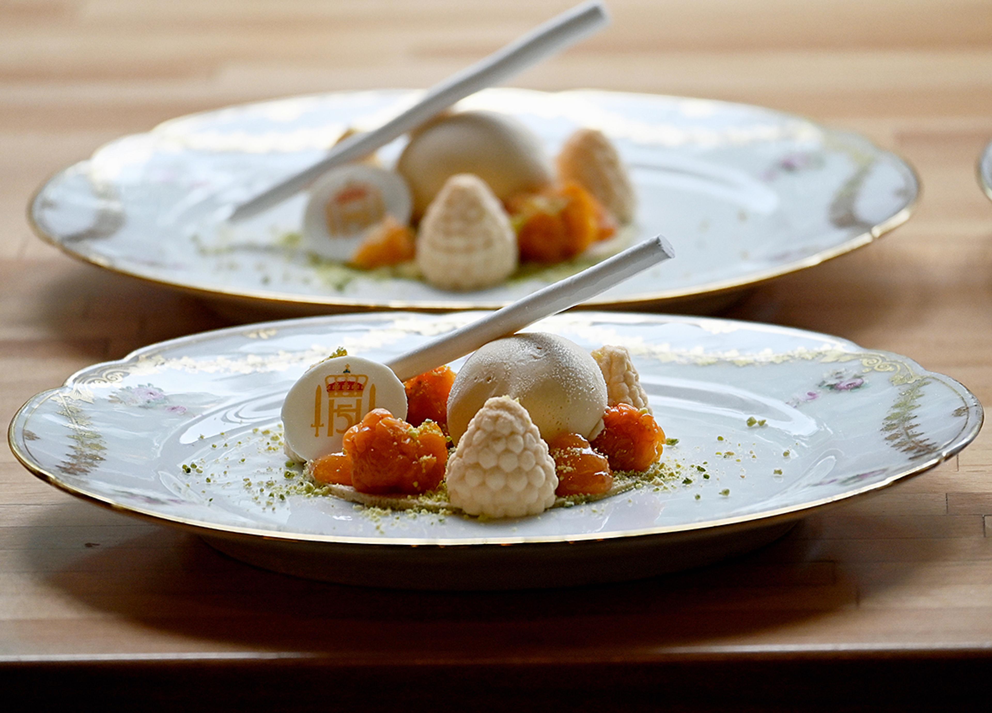 Kong Harald tok imot ambassadørene med ledsagere i Speilsalen, mens lunsjen ble servert i Store festsal. Gjestene satt ved runde bord, og det ble servert tre retter som besto av sashimi av laks og kamskjell med små tomater, tomatbuljong og korianderolje, kveite med tatlete, sopp, spinat, potet, purreløk og smørsaus med kaviar. Til dessert var det multer med pistasj- og karamellis.