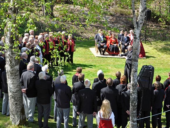 Asbjørn Andersen fra Lyngør kulturhistoriske samlinger orienterte Dronningen om minnelunden, mens prosjektleder Martha H. Hansen fra Lyngør 2012 var konferansier for kulturprogrammet.