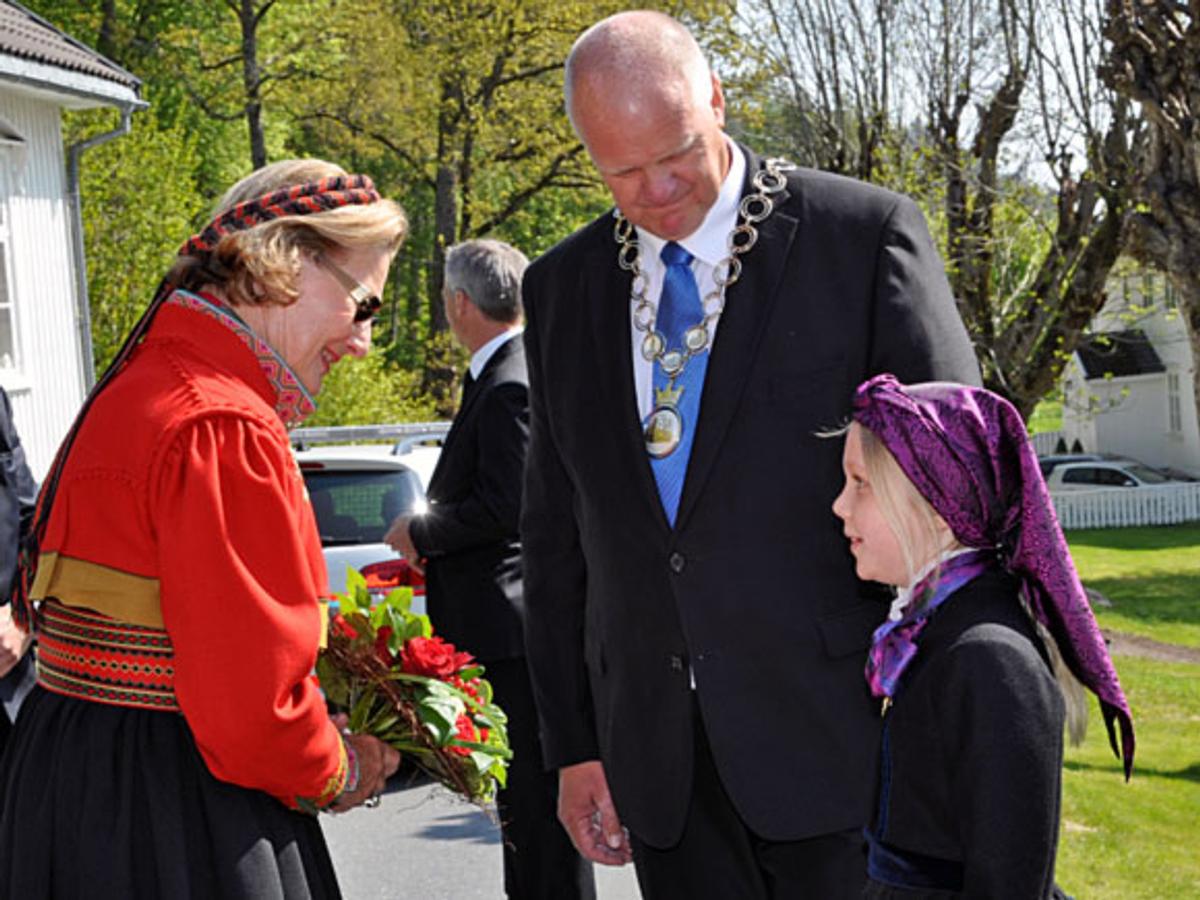 Dronningen fikk også en kort orientering om kirkens historie. Både Kong Haakon og Kong Olav har besøkt Dypvåg kirke. Det skjedde i forbindelse med henholdsvis 700- og 750-årsjubileene.