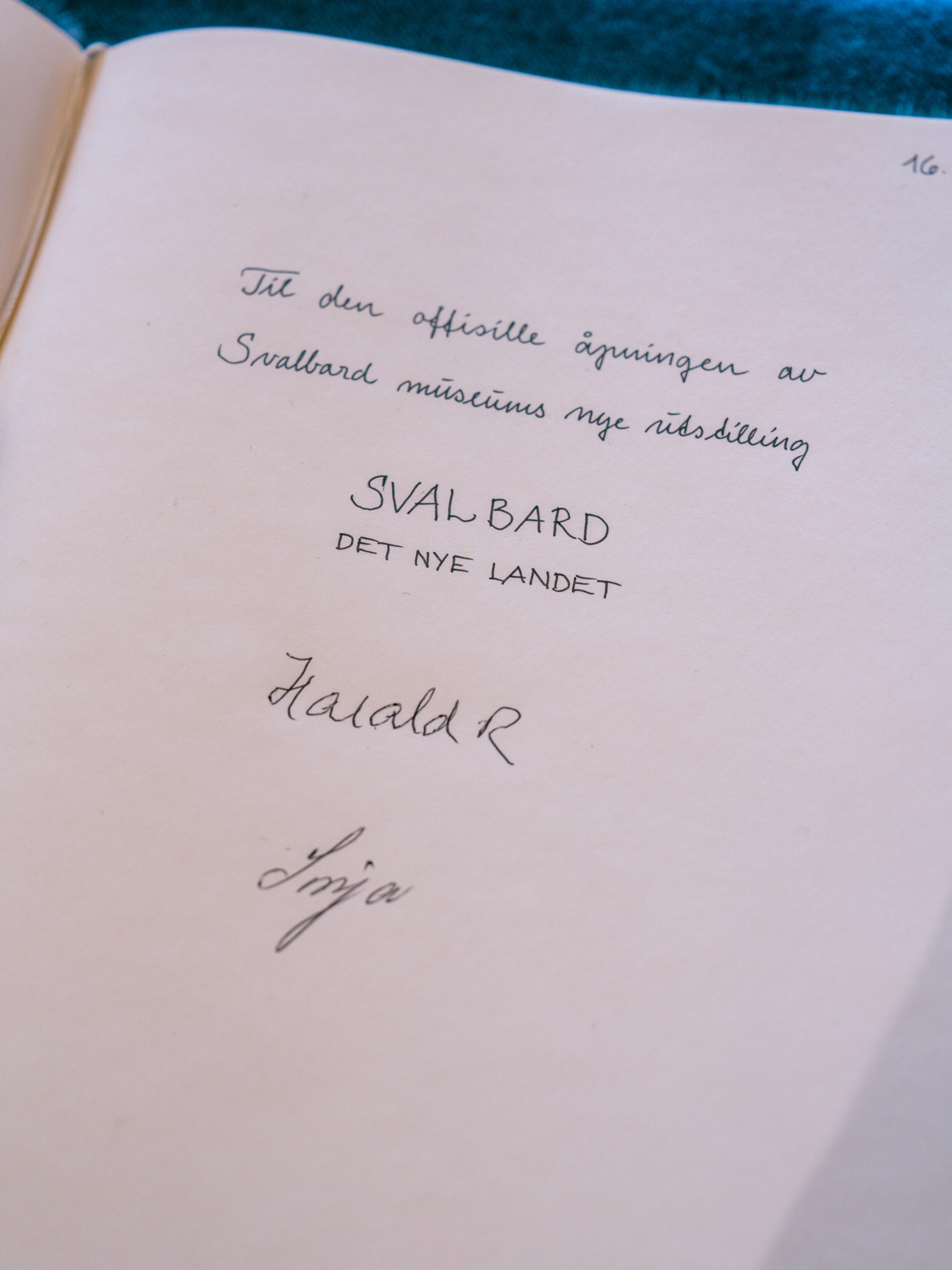 Kongeparet besøkte også Svalbard Museum der Dronning Sonja åpnet den nye utstillingen “Svalbard – det nye landet” i anledning 100-årsmarkeringen. Direktør Eystein Markusson foredro om utstillingen og kom også innpå det sårbare eventyrlandet Svalbard.