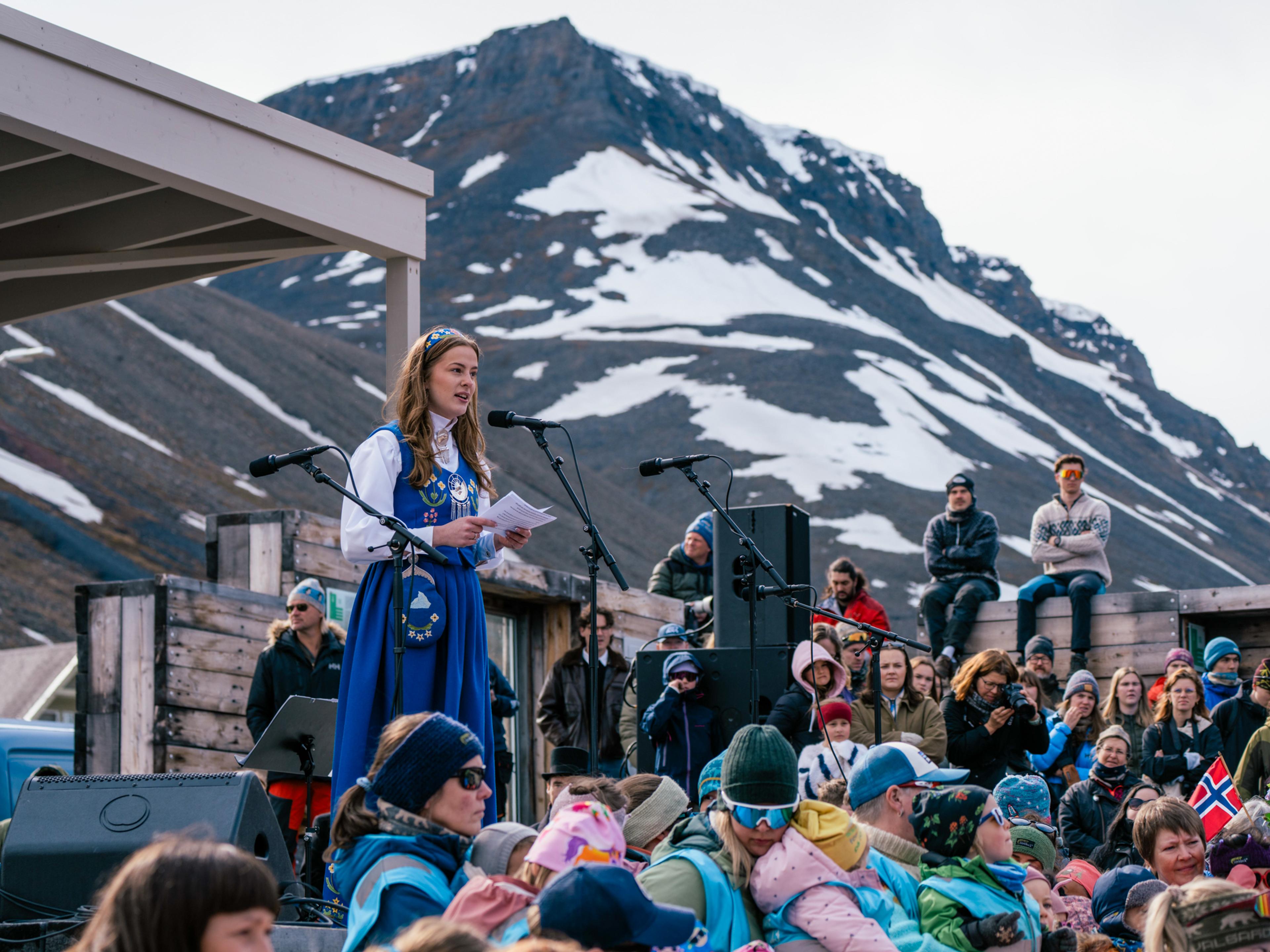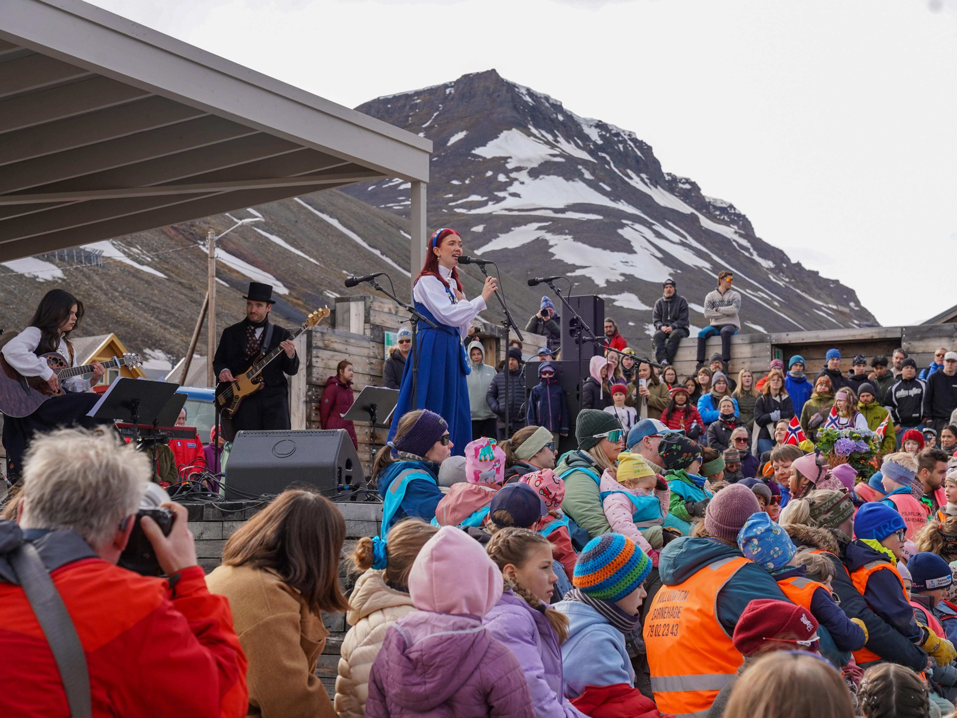 På torget hadde samfunnet i Longyearbyen forberedt et program som godt illustrerte det rike kulturlivet for alle aldersgrupper. Polarleik vartet opp med folkedans, barn fra Kullungen og Polarflokken barnehage sang “Snøskutersang”, unge fra Sirkus Svalnardo kastet seg ut i akrobatiske øvelser og det var mye vakker sang fra barn og unge.