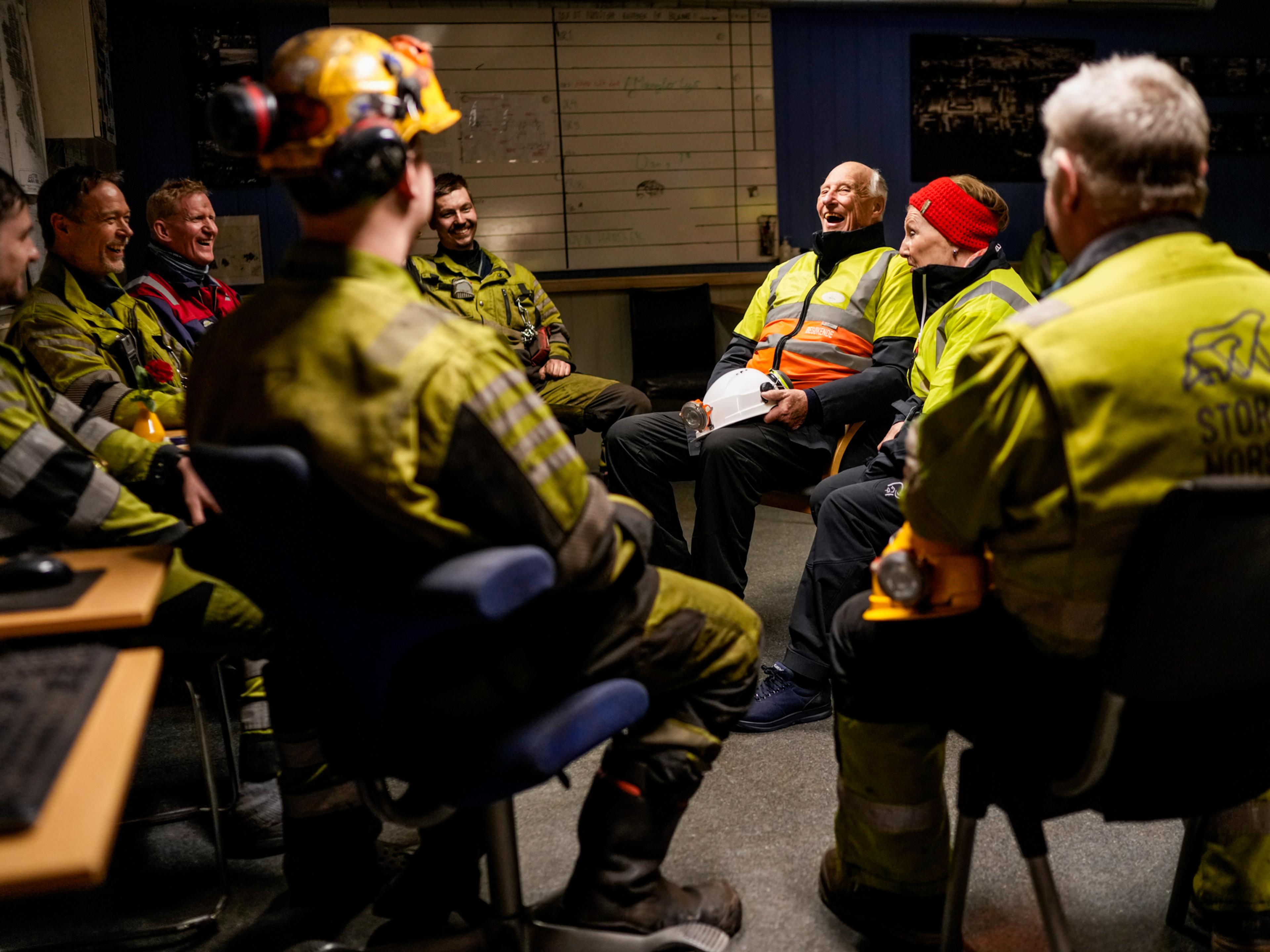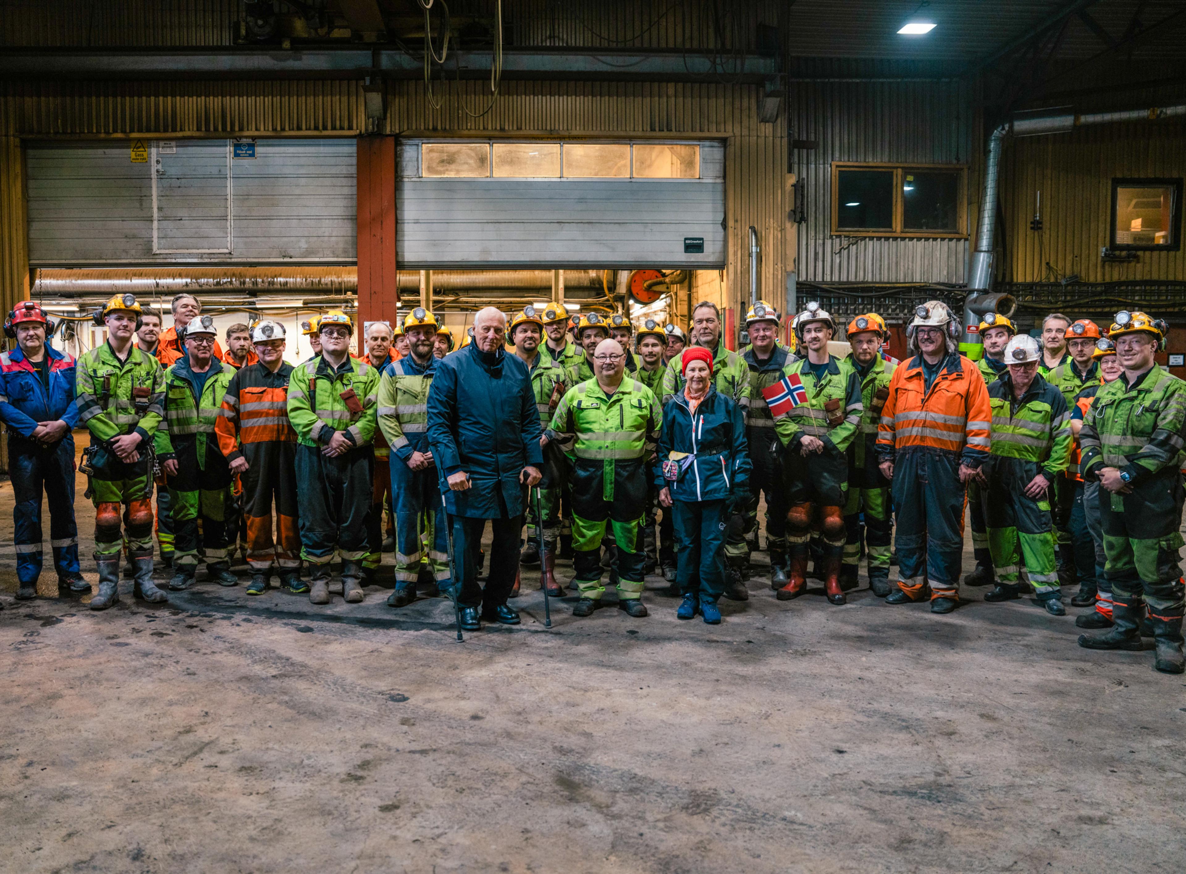 – Takk for invitasjonen, sa Kong Harald under velkomsten i Gruve 7, Norges siste aktive kullgruve, før Kongeparet ble med inn i gruva.