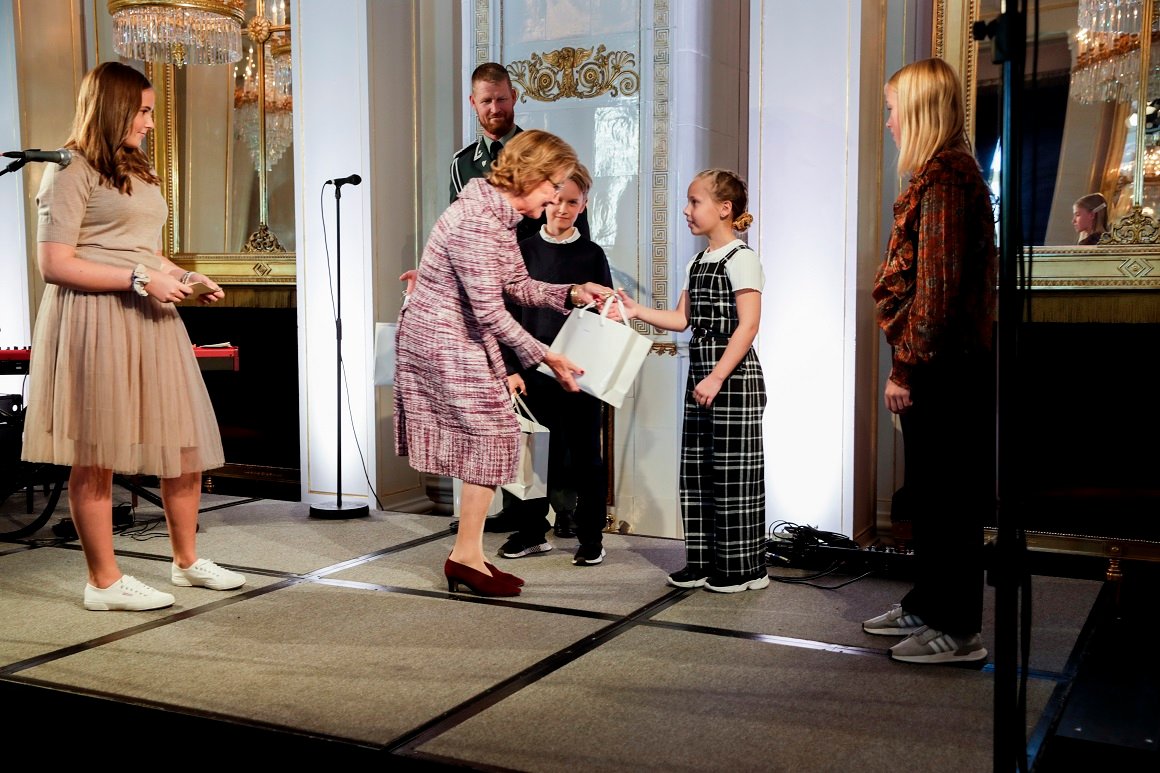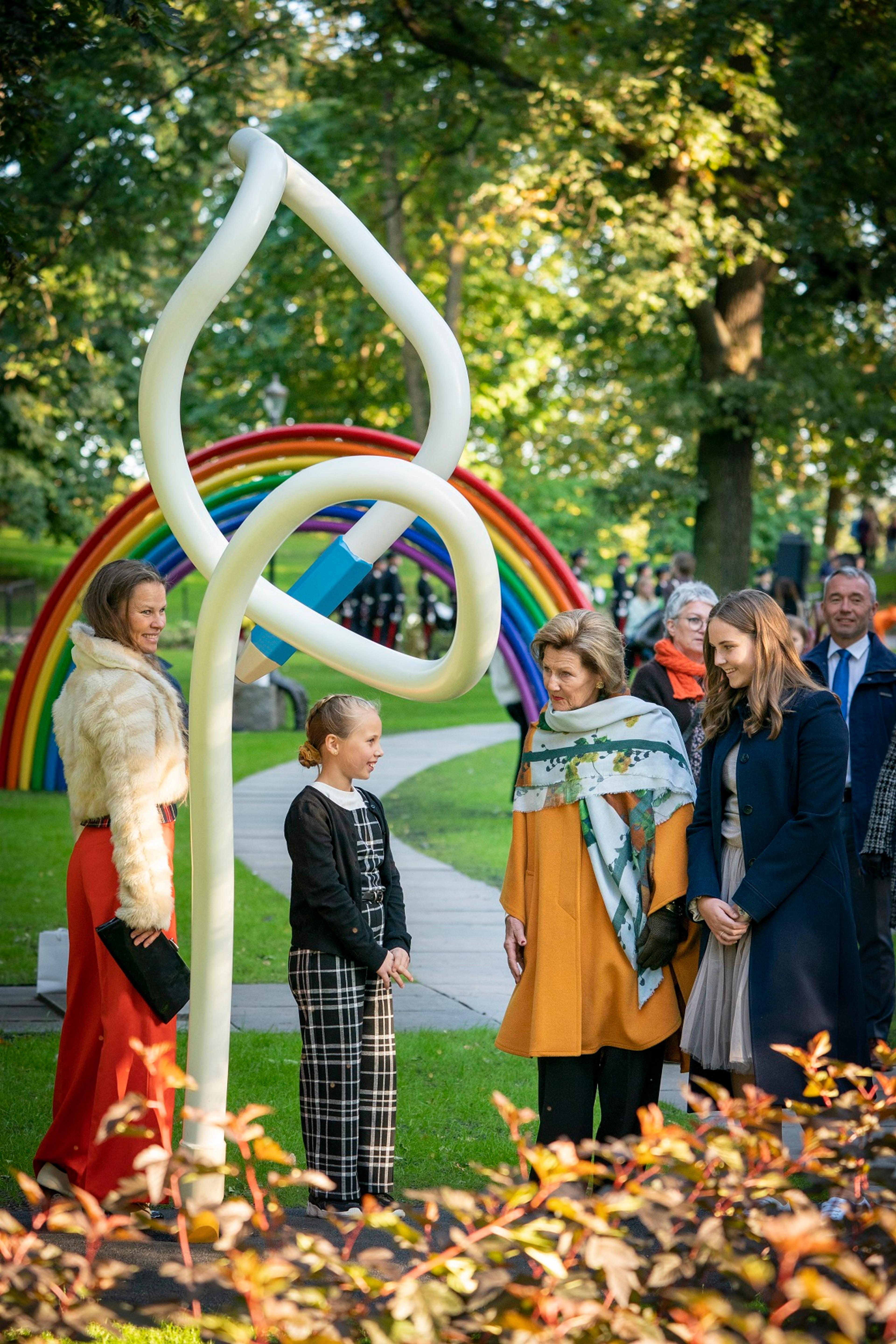 De 18 skoleelevene som har bidratt til skulpturene var invitert til markeringen sammen med sine foreldre og søsken. I tillegg var elever fra 5. og 6. trinn ved barneskolene Vahl og Uranienborg i Oslo invitert til Slottsbesøk.