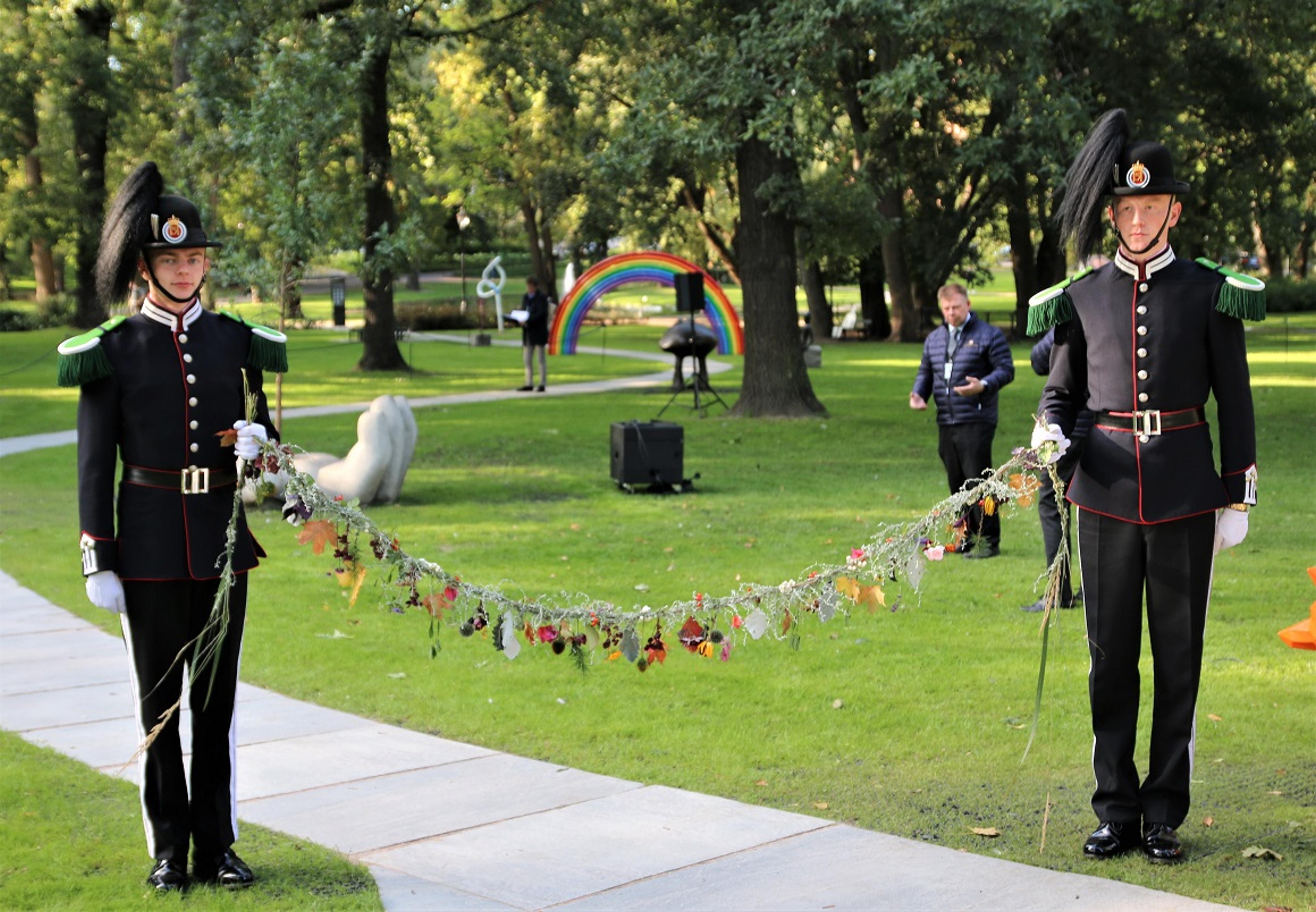 Gjestene beveget seg deretter ut i Slottsparken hvor de ble møtt av flott musikk fra Forsvarets stabsmusikkorps.