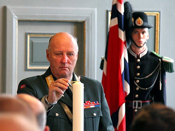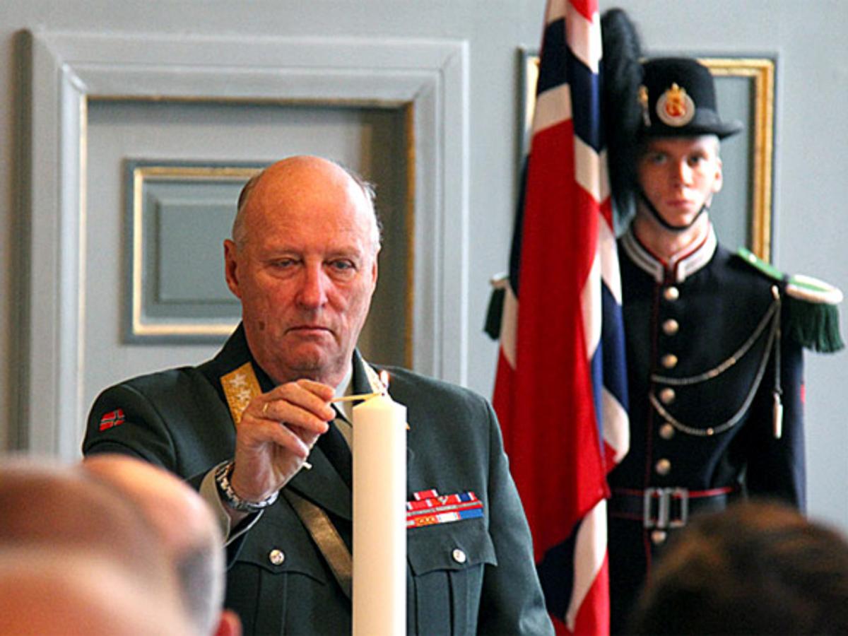 Kong Harald tende Minnelyset, før alle heldt eitt minutts stillheit for dei falne.