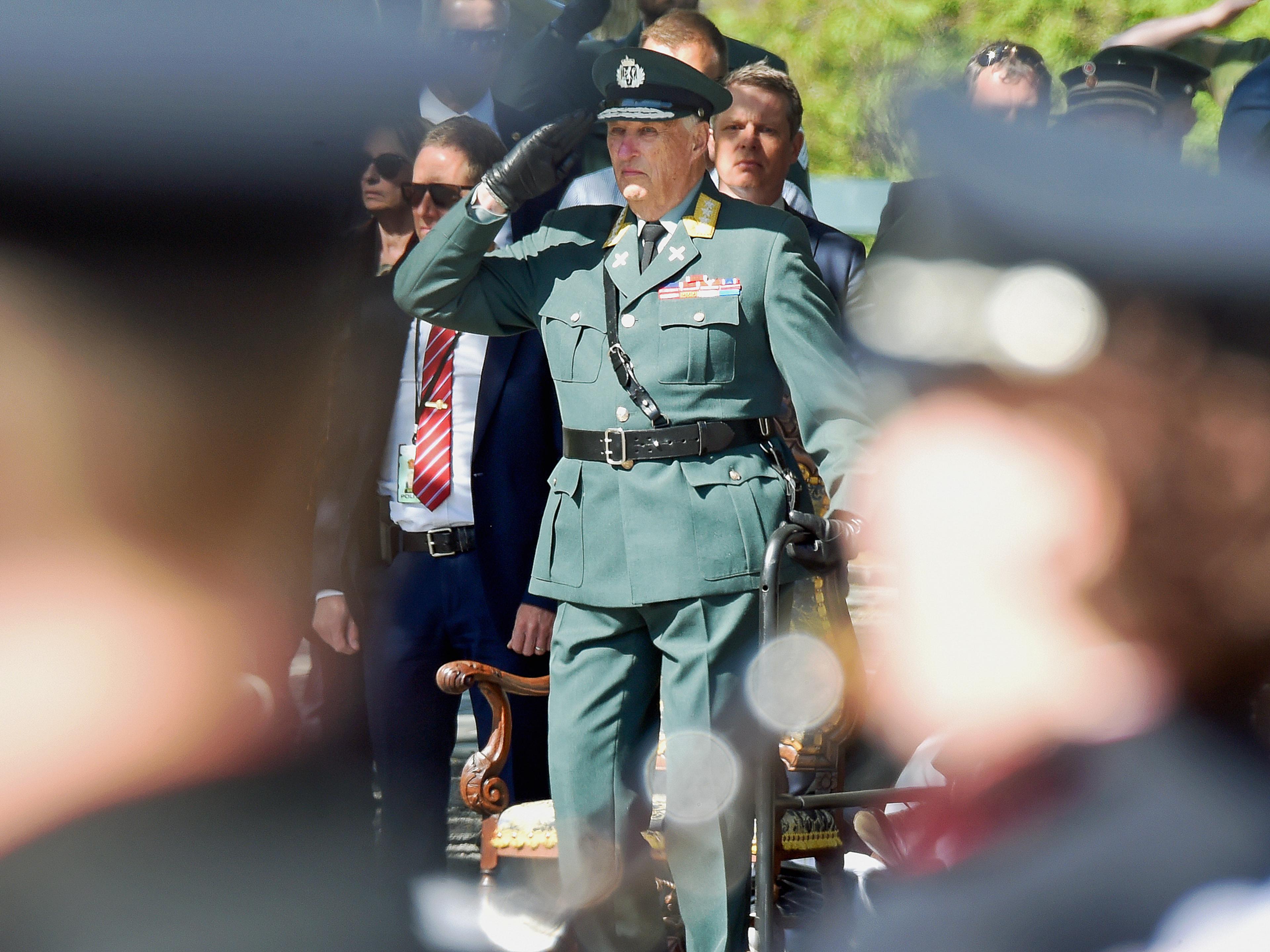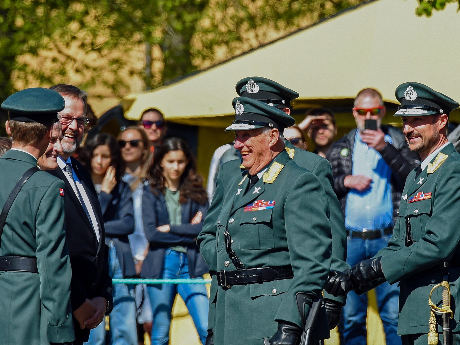 Før kransnedlegginga inspiserte Kronprinsen Forsvarets honnøravdeling.