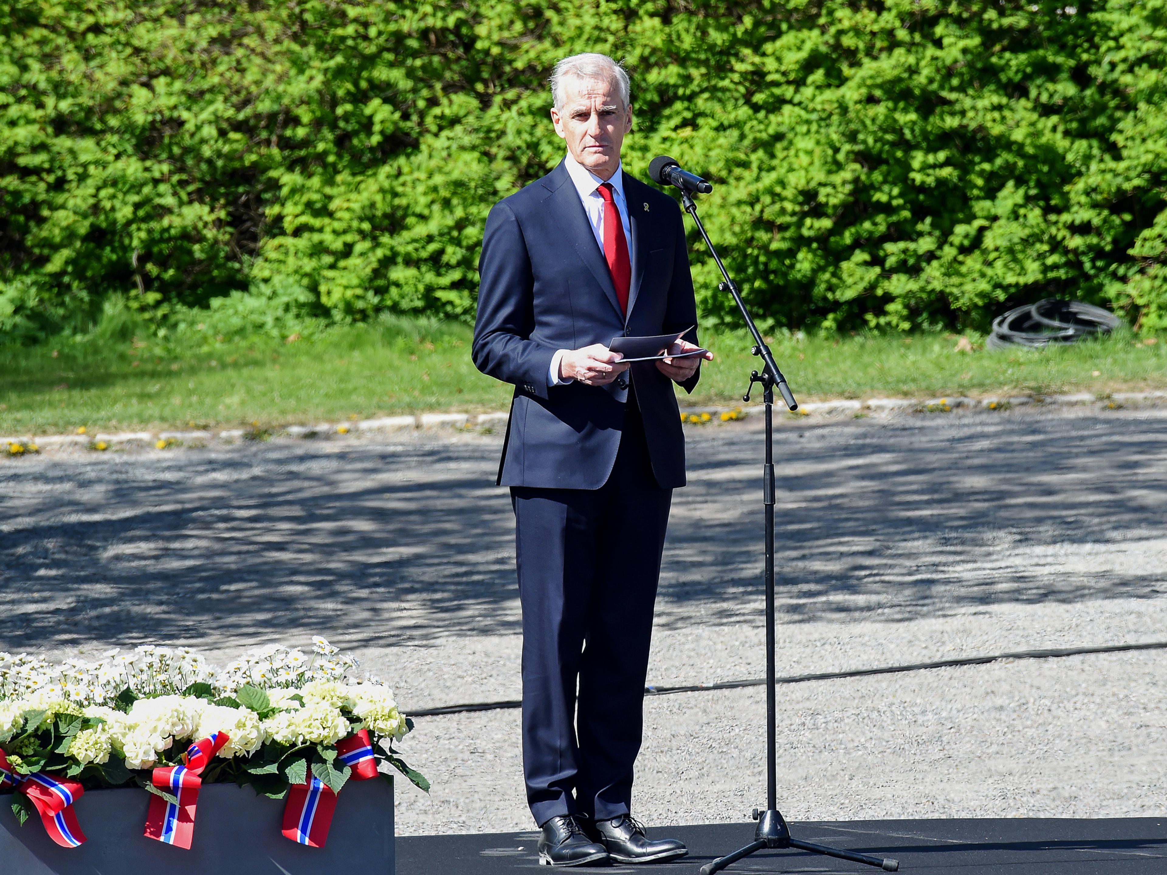 – Vi takkar alle som bidrog i kampen for eit fritt Noreg, sa statsminister Jonas Gahr Støre i talen sin under markeringa.