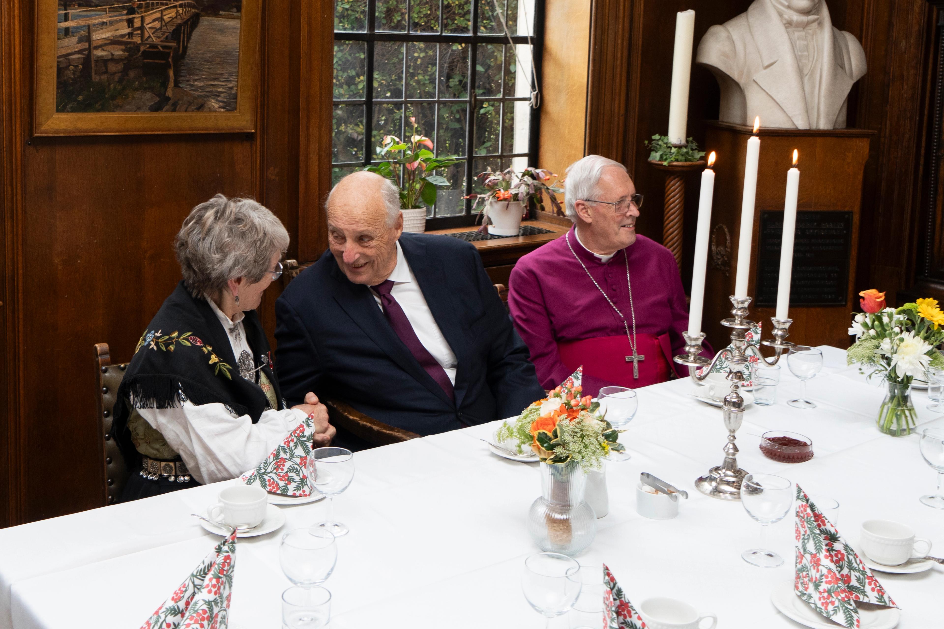 Under kirkekaffen møtte Kongeparet flere av de som bruker Sjømannskirken i London i hverdagen.I over 150 år har Sjømannskirken servert vafler til nordmenn i utlandet, og det ble selvsagt servert vafler laget på menigheten i Londons oppskrift.