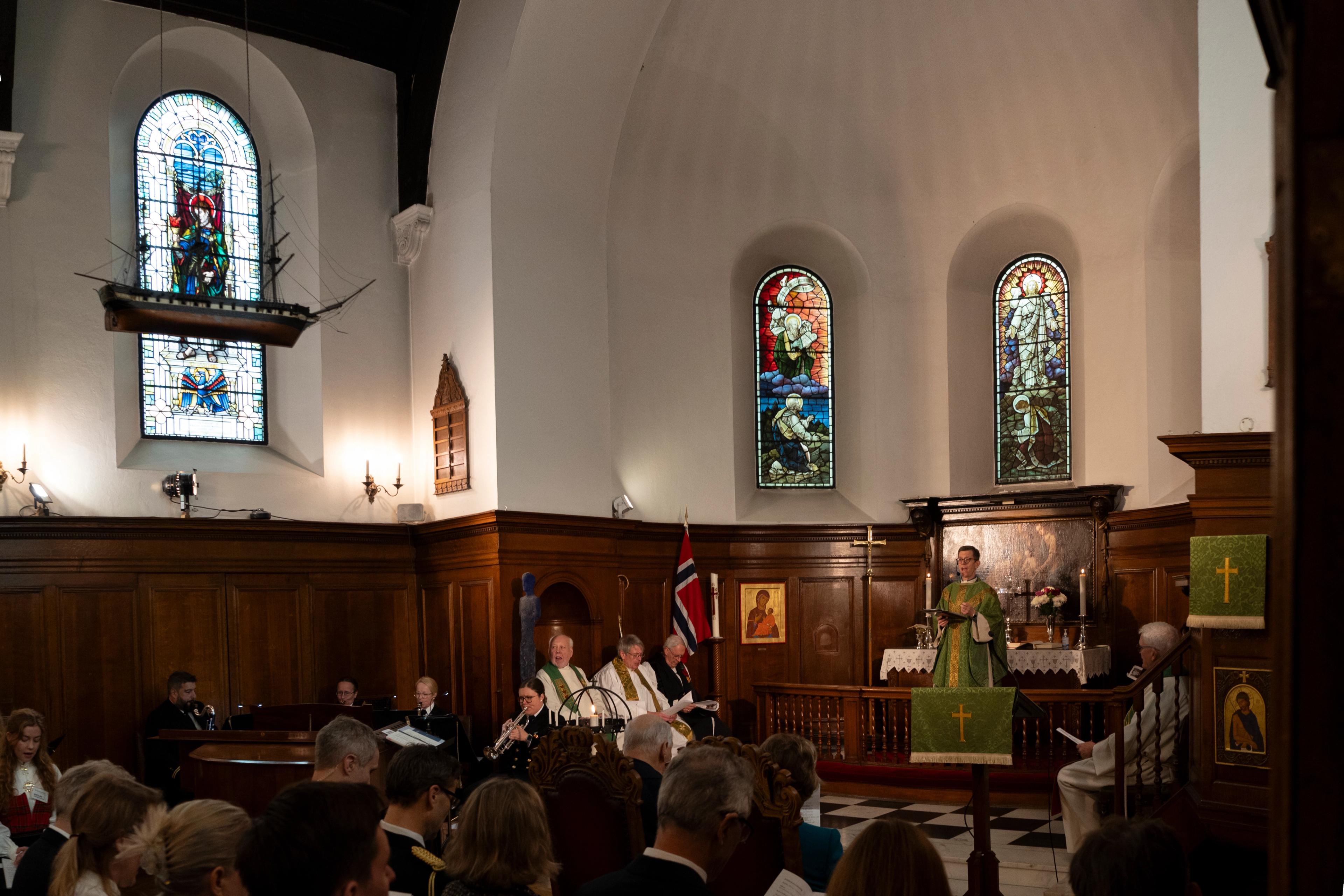 I år er det 80 år siden frigjøringen av Norge. Dette ble også markert ved Sjømannskirken i London med Kongeparet til stede.