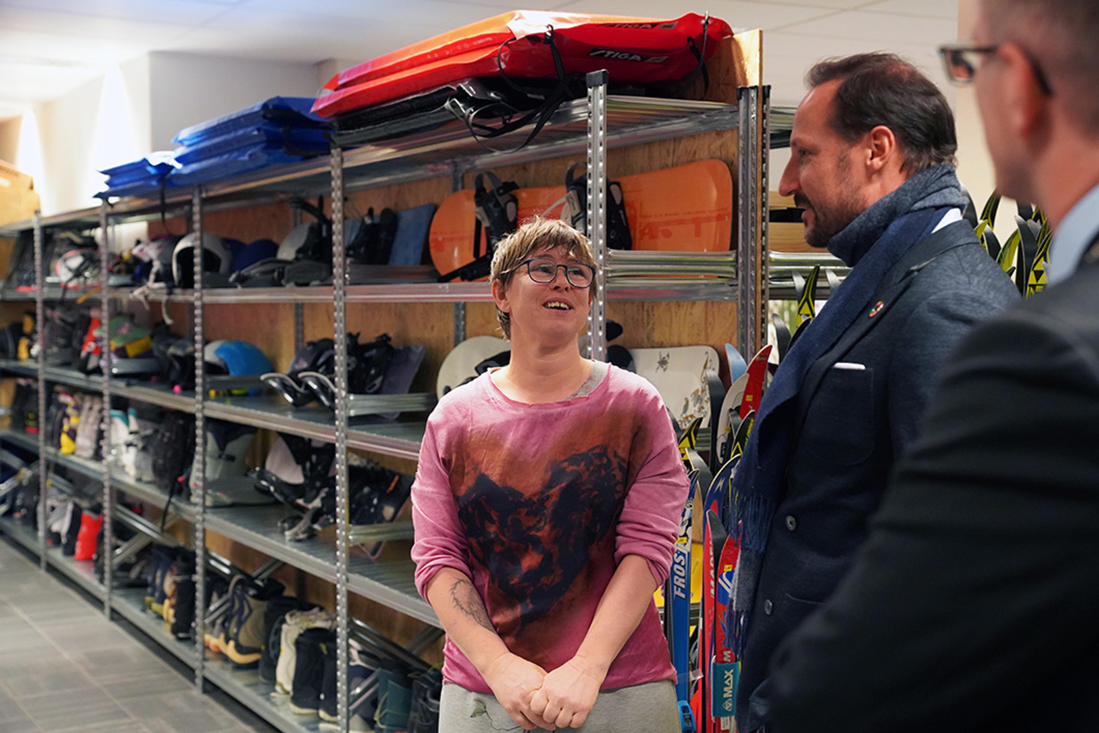 I Arendal møtte Kronprinsen både frivillige og brukarar av Skattkammeret. Her kan barn og unge låne utstyr for sommar- og vinteraktivitetar. Skattkammeret har ein visjon om at alle barn og unge skal ha sjansen til ein aktiv kvardag utan ein prislapp som ekskluderer nokon frå å delta. Skattkammeret er ein del av Kirkens Bymisjons arbeid for barn og unge og er spreidd rundt i heile landet.