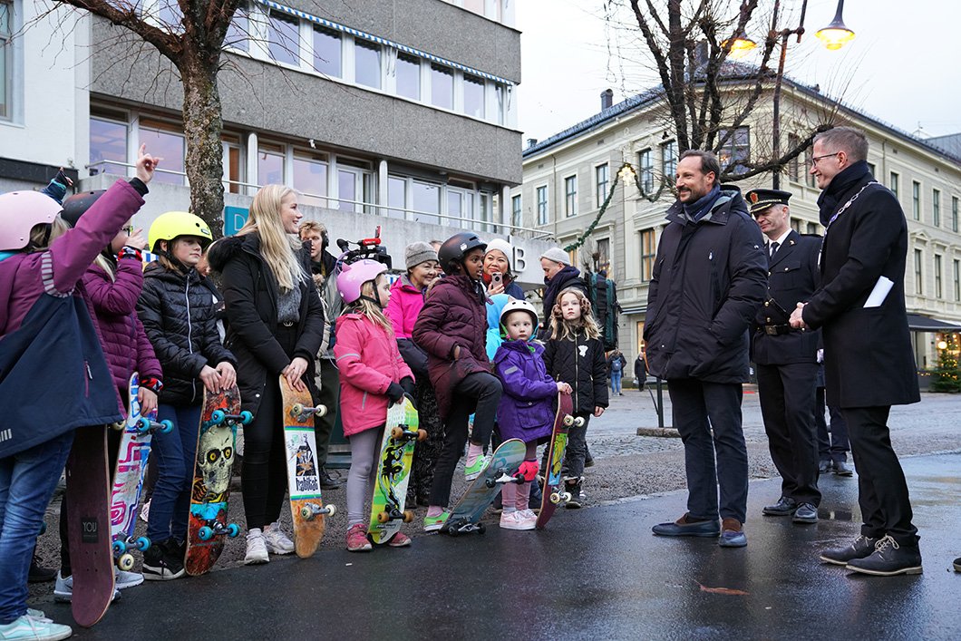 Besøket vart avrunda med skateshow framført av jentene i gruppa «Jenteskate» på kanalplassen i Arendal sentrum.
