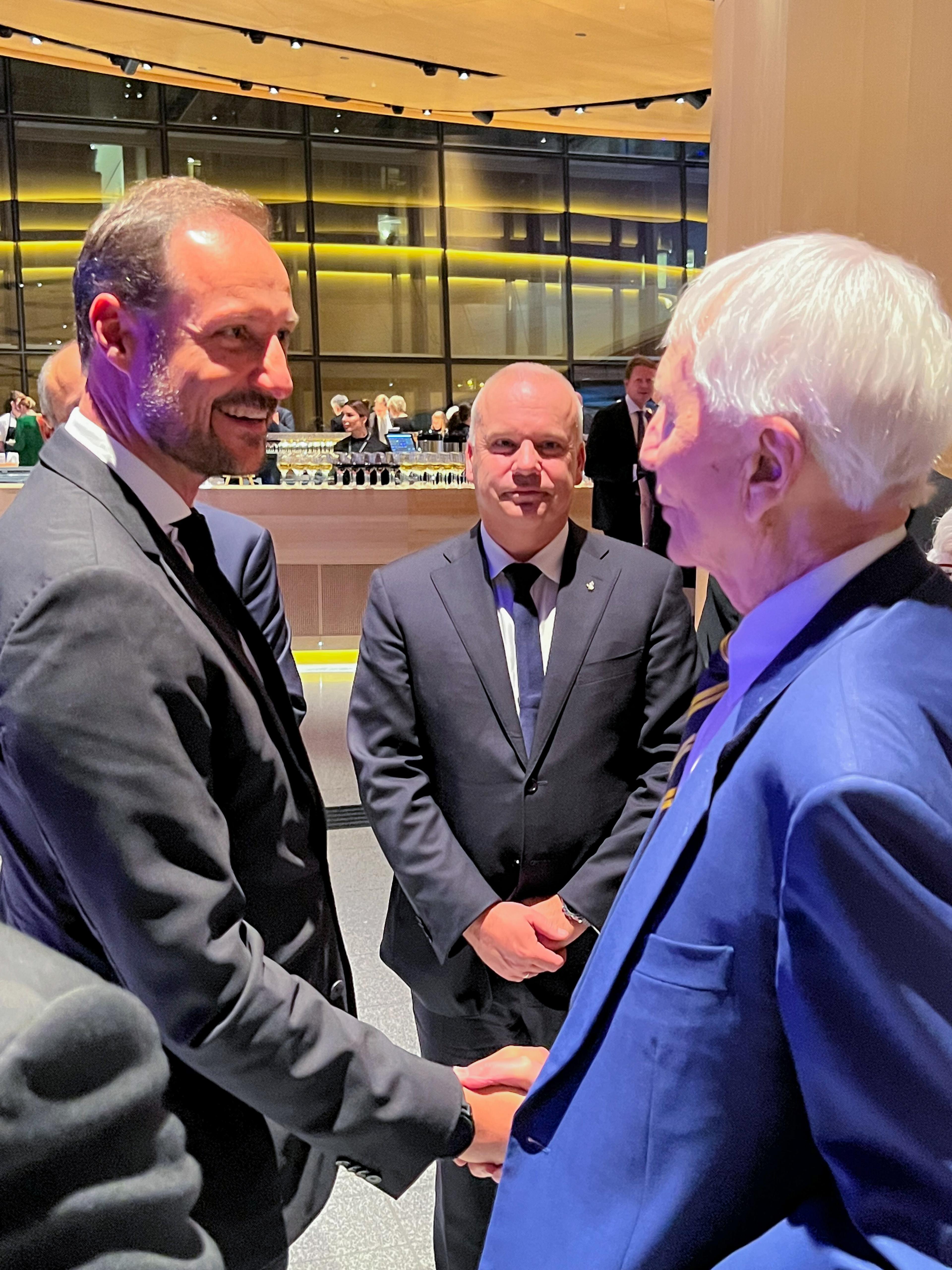 Konsernsjef Anders Opedal ønsket Kronprinsen velkommen til den to timer lange festforestillingen i konserthuset. I pausen hilste Kronprinsen på flere av selskapets tidligere konsernsjefer.