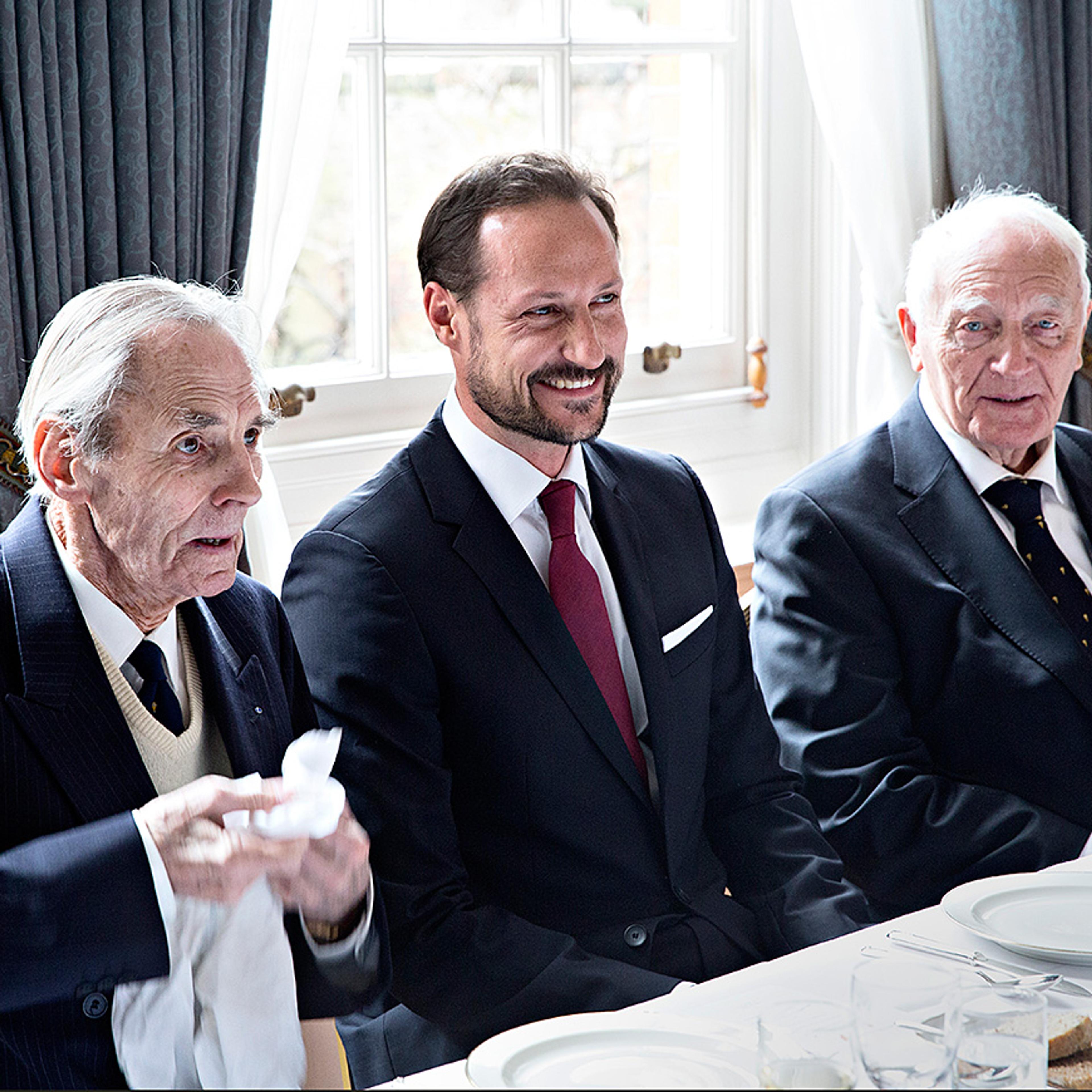 Programmet startet med en lunsj der Kronprinsen blant annet fikk møte de fem norske veteranene som var tilbake i London for å delta ved markeringen.
