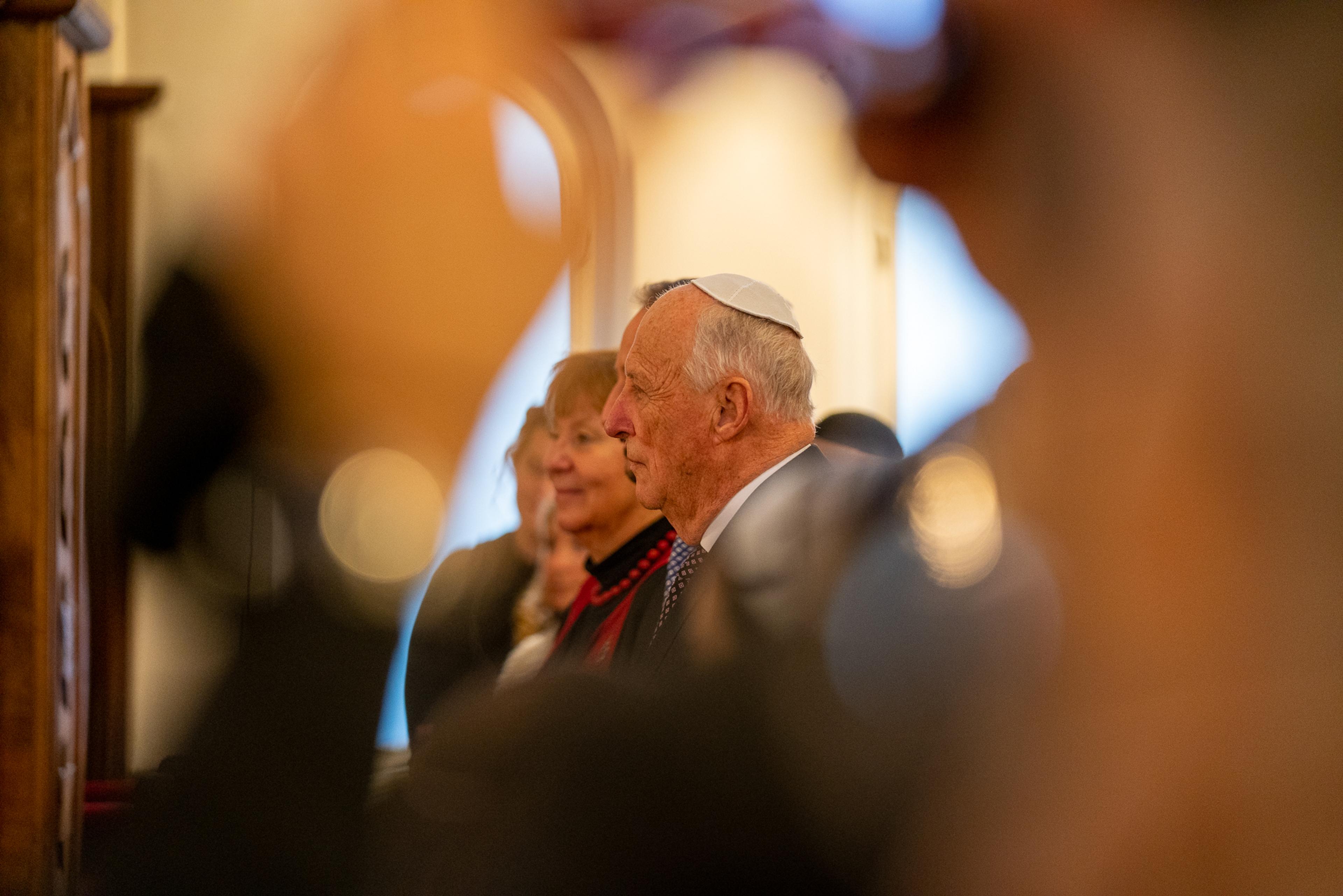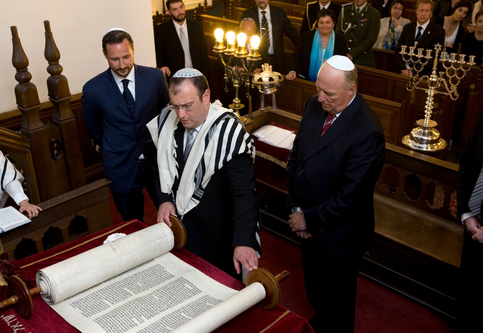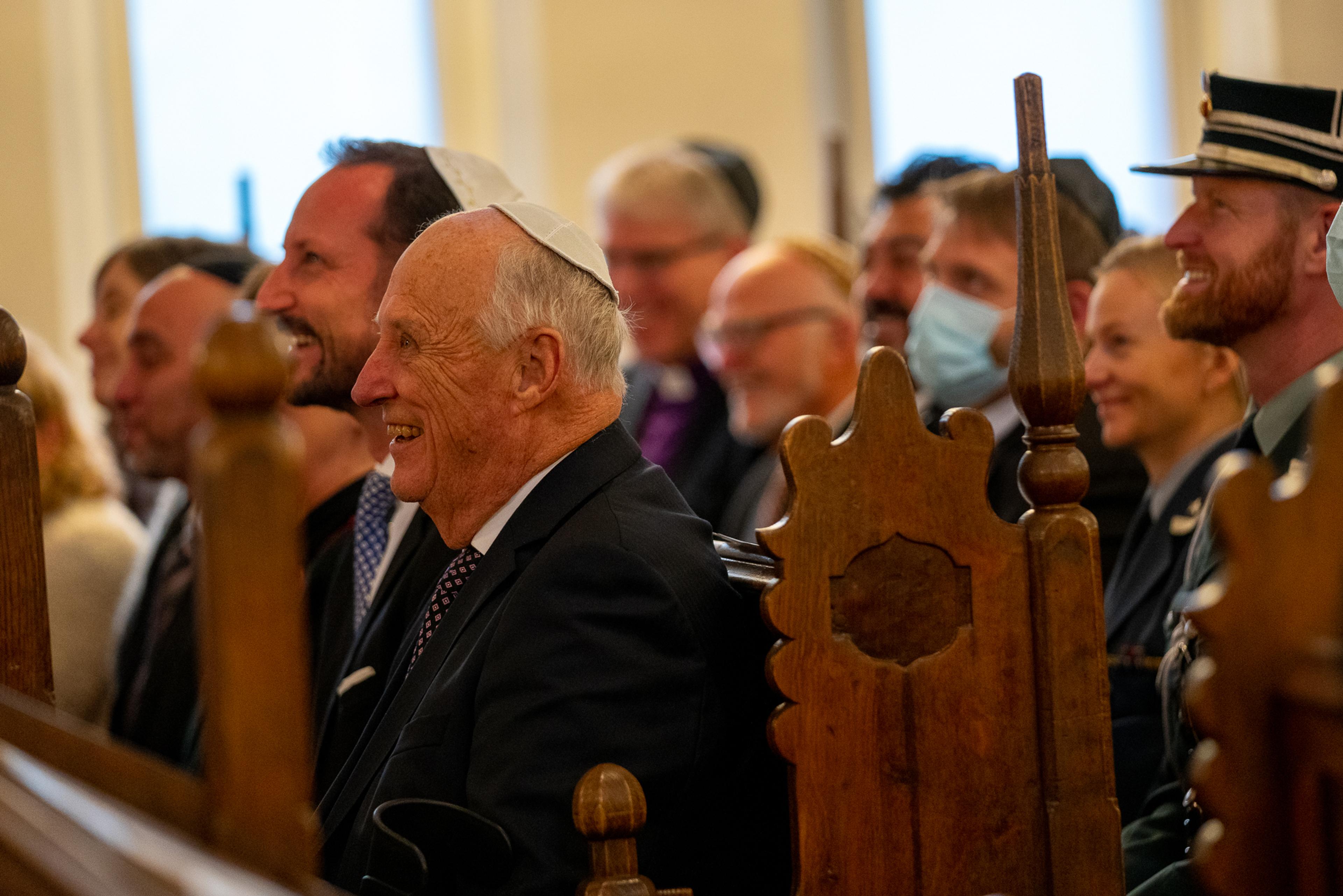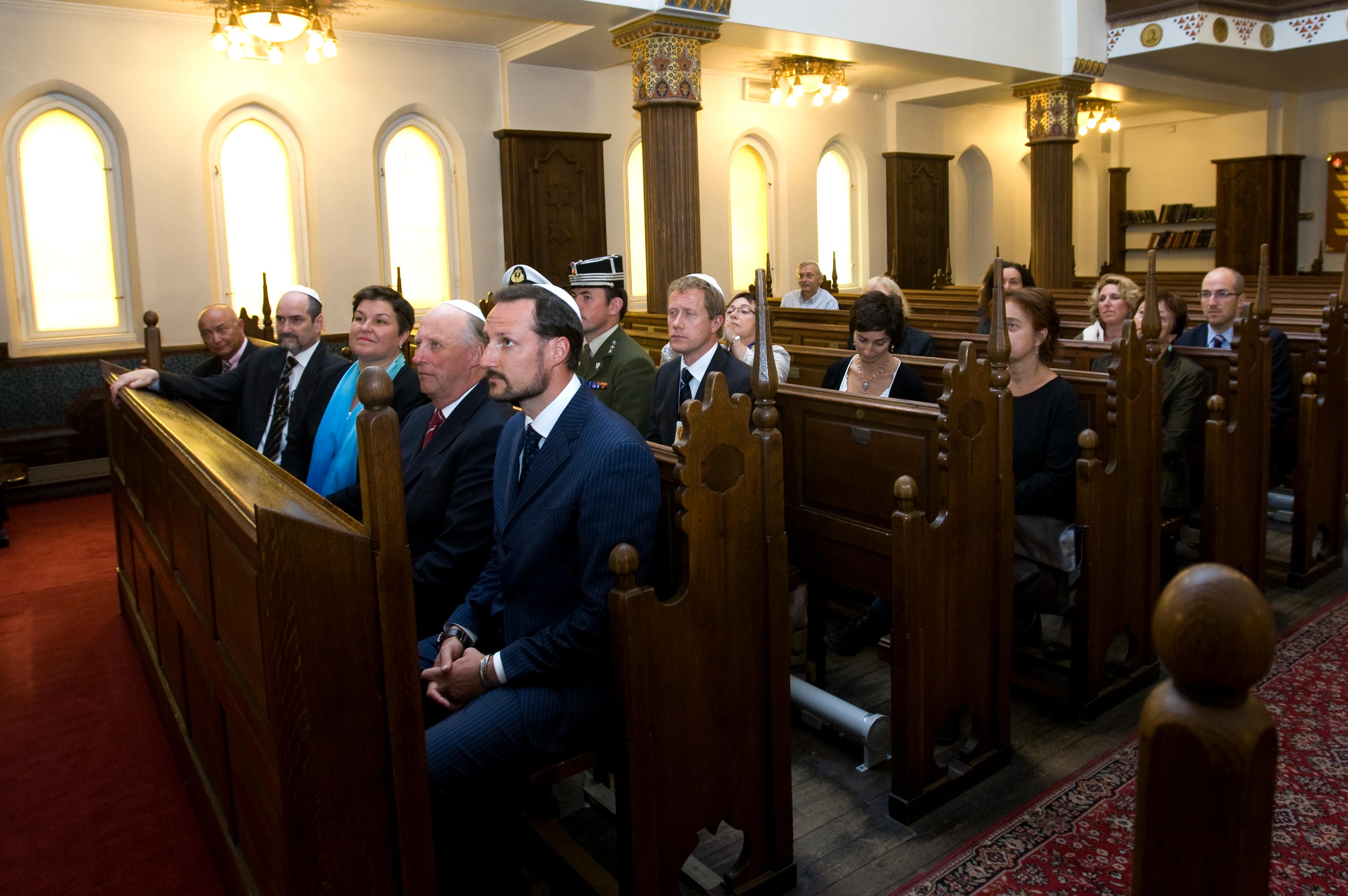 Hans Majestet Kongen og Hans Kongelige Høyhet Kronprinsen var i dag til stede ved markeringen av 100-årsjubileet til Det mosaiske trossamfunns synagoge i Oslo.