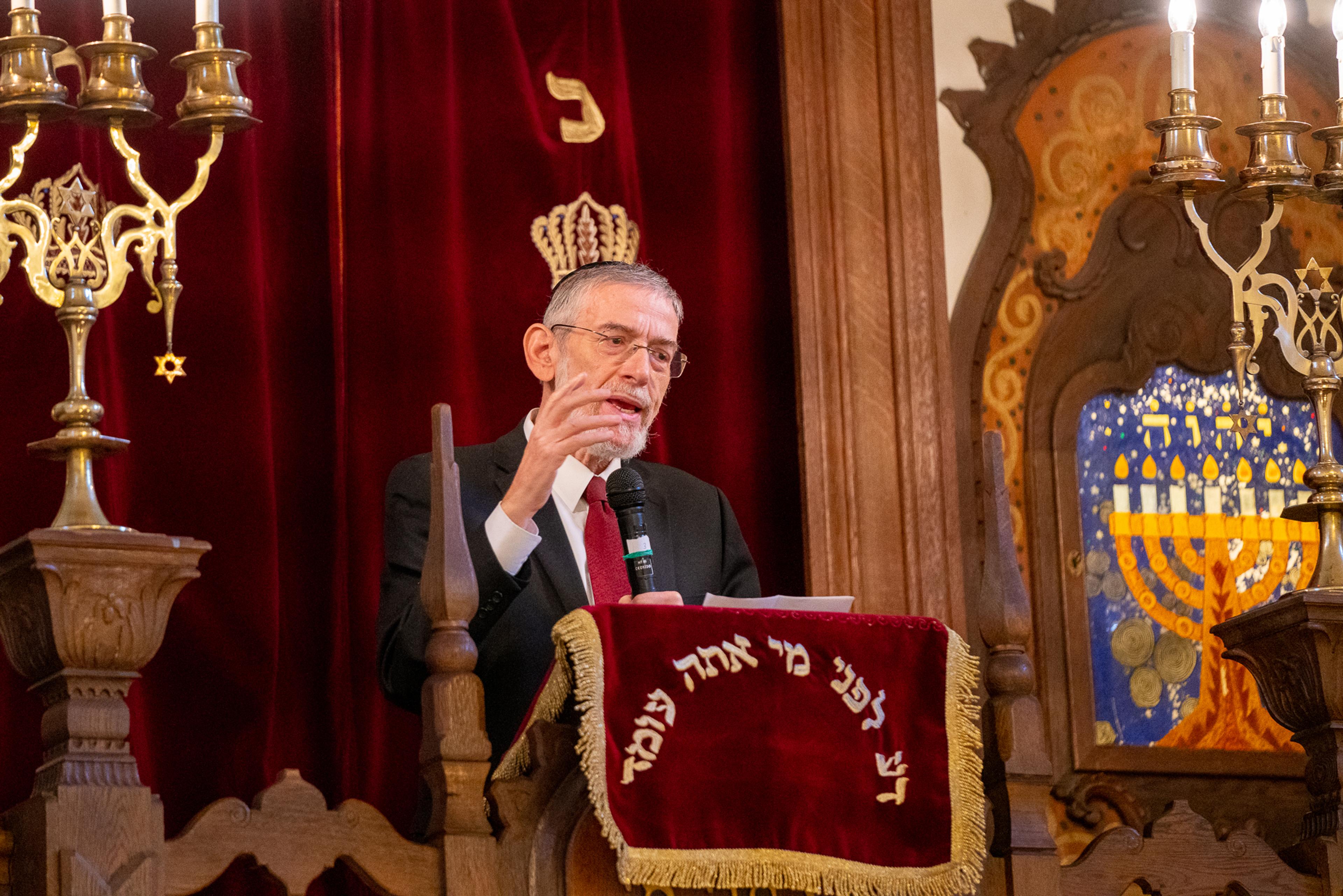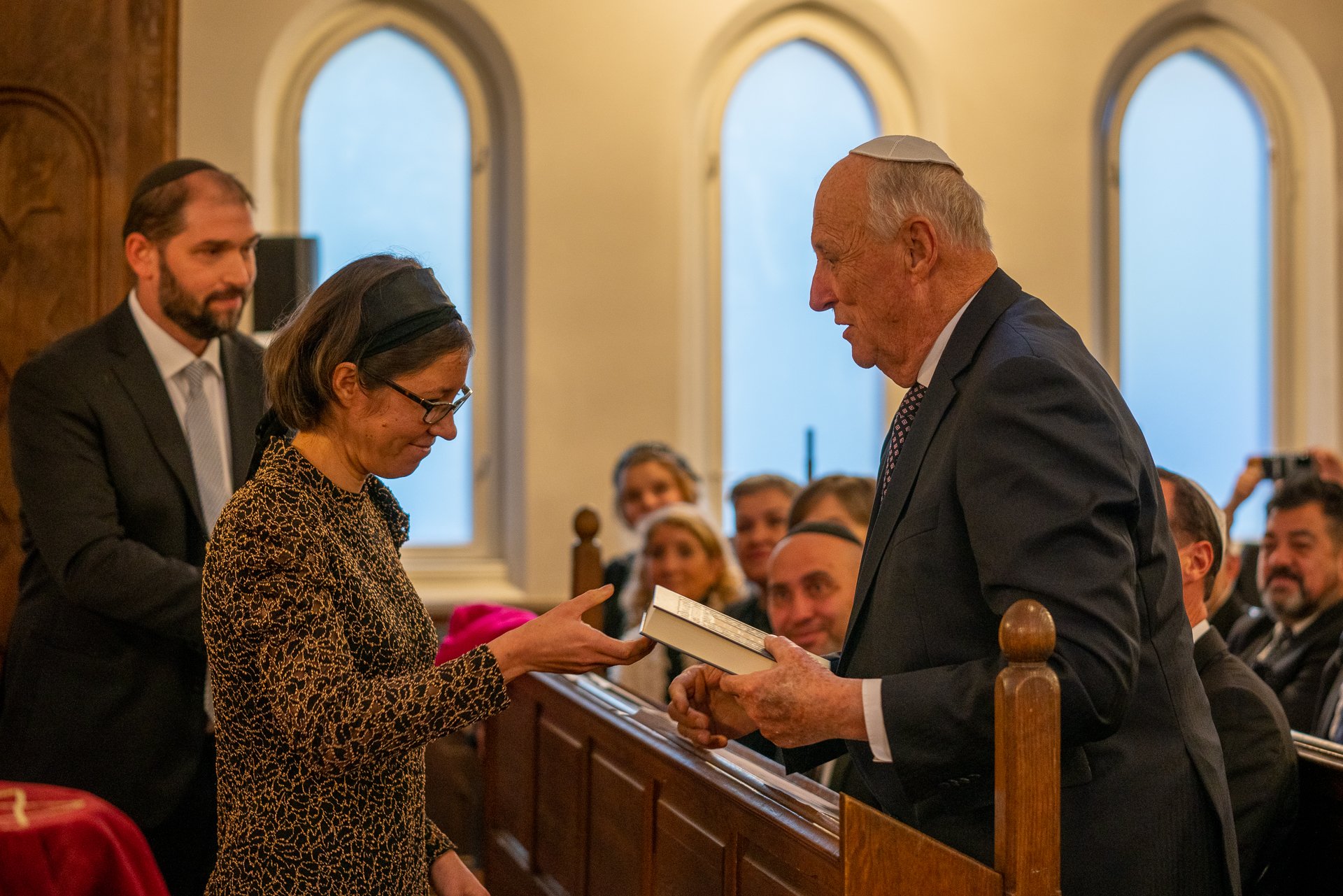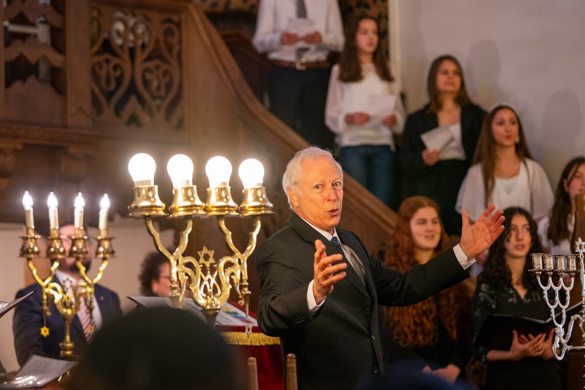 Program i synagogen besto av taler og musikalske innslag ved tre kantorer og menighetens barnekor, og hovedtalen ble holdt av overrabbiner Michael Melchior. Kongebønnen ble lest både på norsk og hebraisk. Ved avslutningen av høytideligheten fikk Kong Harald overrakt det første eksemplaret av bønneboken Siddur i norsk oversettelse.