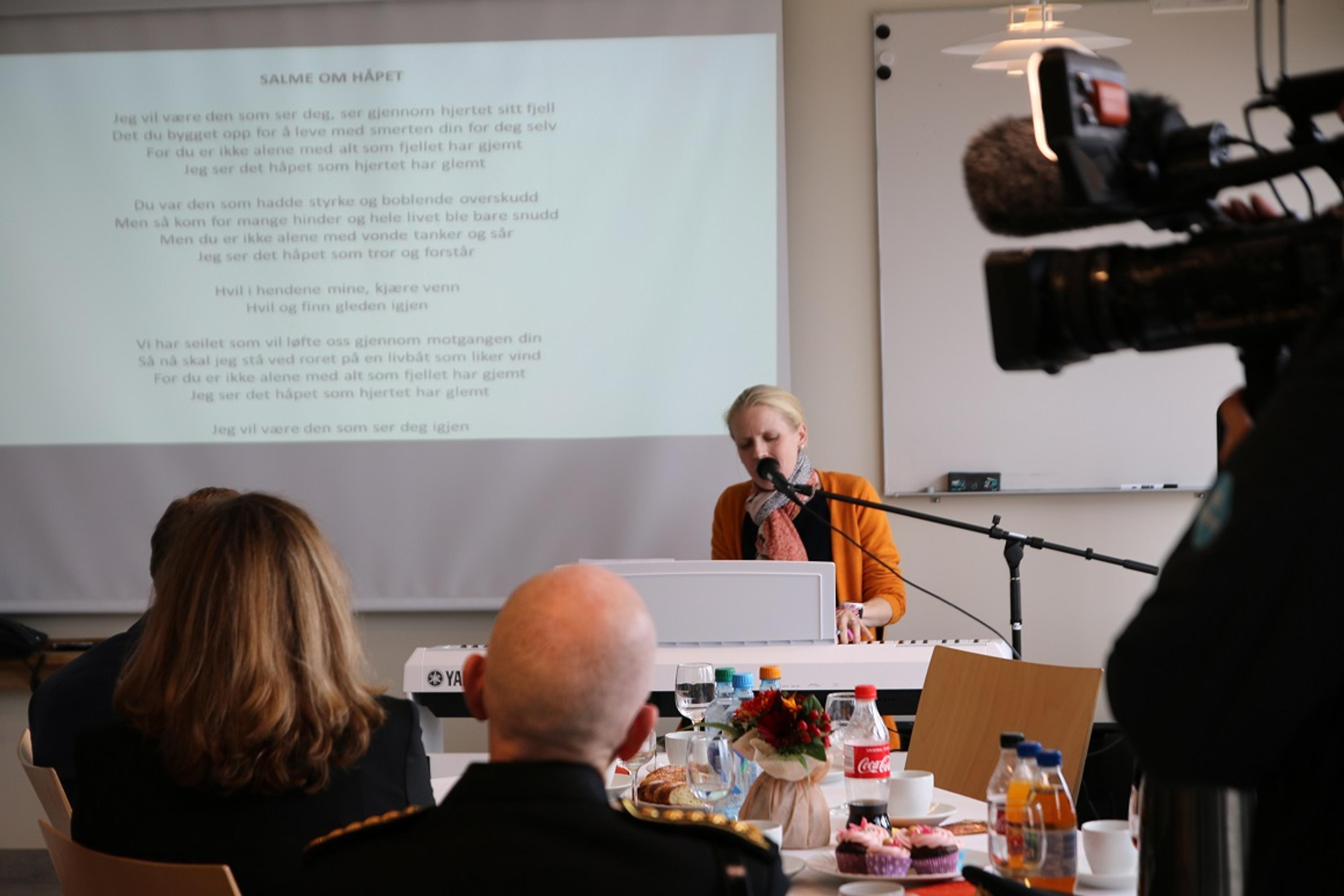 I kantina møtte Kronprinsen fleire av dei tilsette. Programmet vart runda av med eit musikalsk innslag ved overlege Ingvild Aurebekk. Ho framførte ein song inspirert av inntrykk i pasientarbeidet.