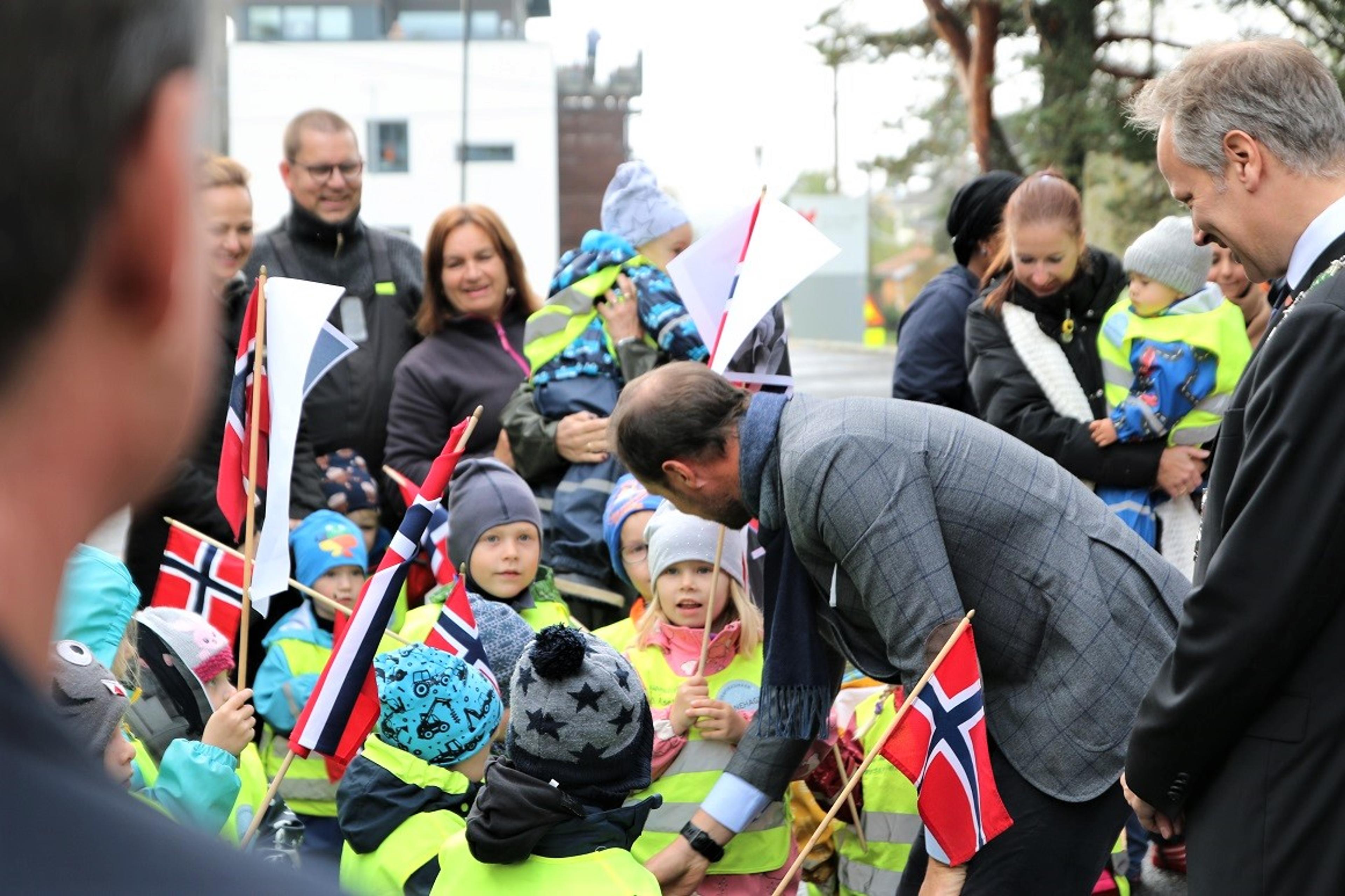 Kronprinsen vart ønskt velkommen til Fredrikstad av Åsebråten barnehage. Deretter fekk han ei orientering om klinikken, som fyller 50 år i 2019, av seksjonsleiar Roy Andersen.