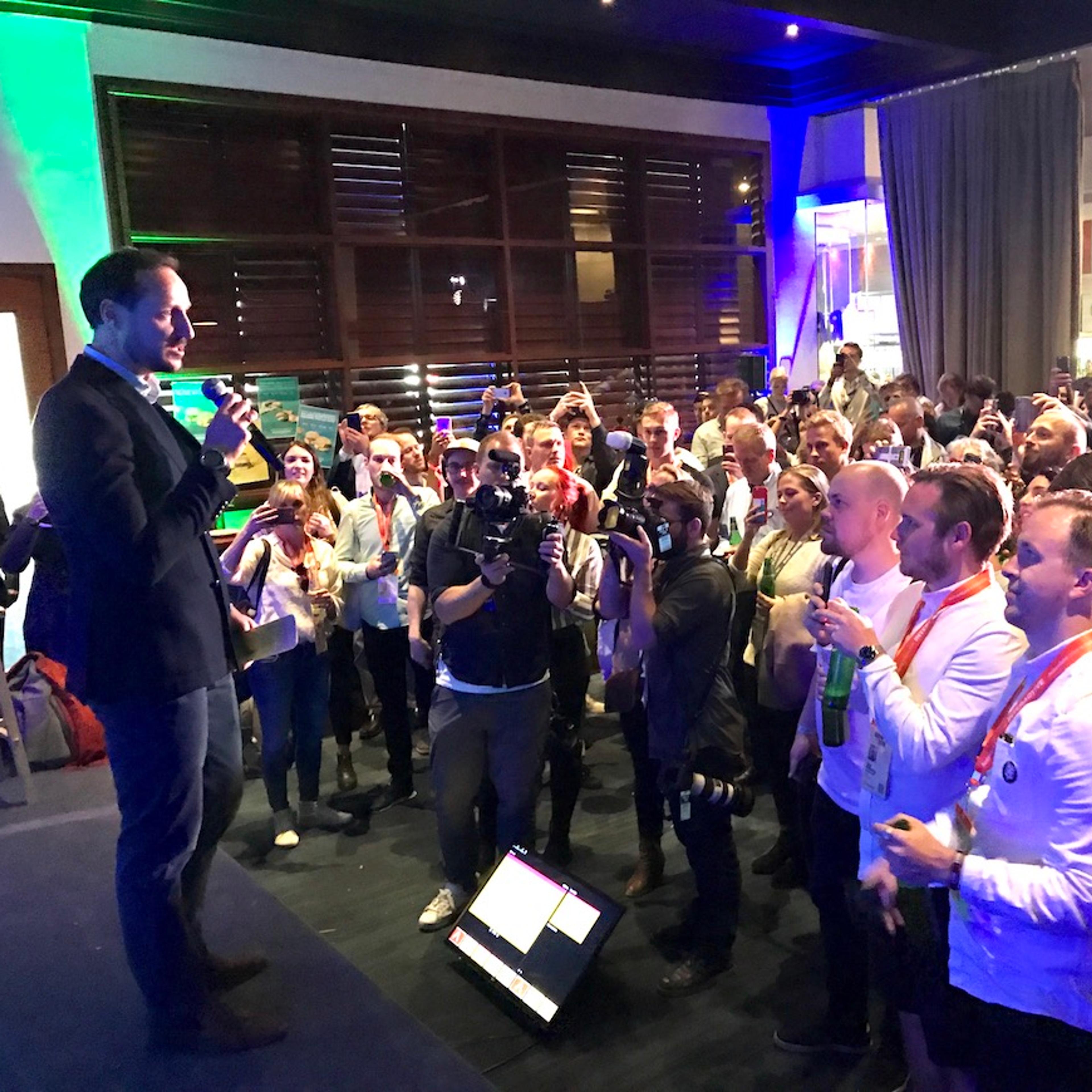 Såkalla pitching er viktig på ein festival som denne. Det vil seie at eit utval selskap får nokre minutt på ein scene der dei kan formidle dei gode ideane sine til eit publikum av utanlandske investorar og samarbeidspartnarar. Dei nordiske landa har gått saman om ein Nordic Pitch i år, og det var Kronprins Haakon som opna han.