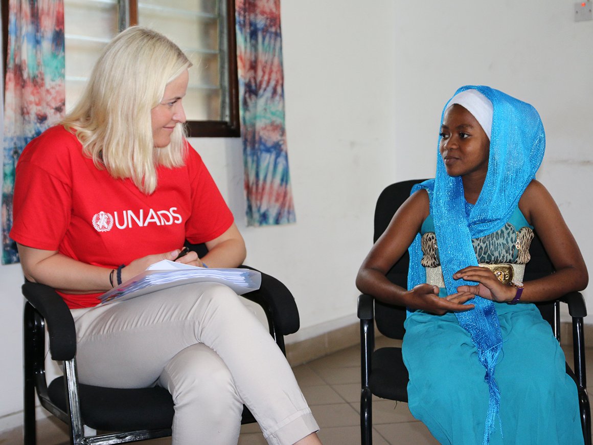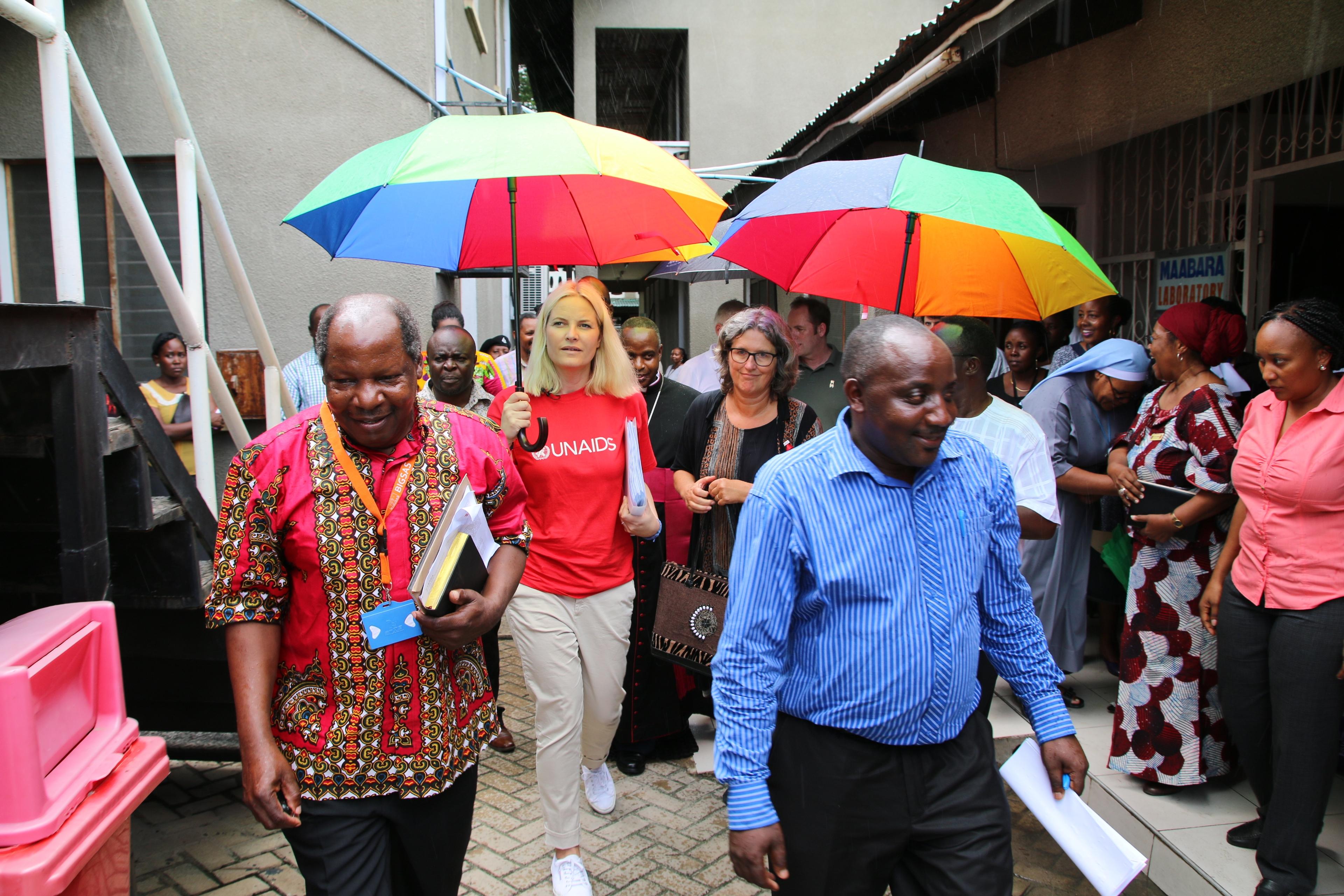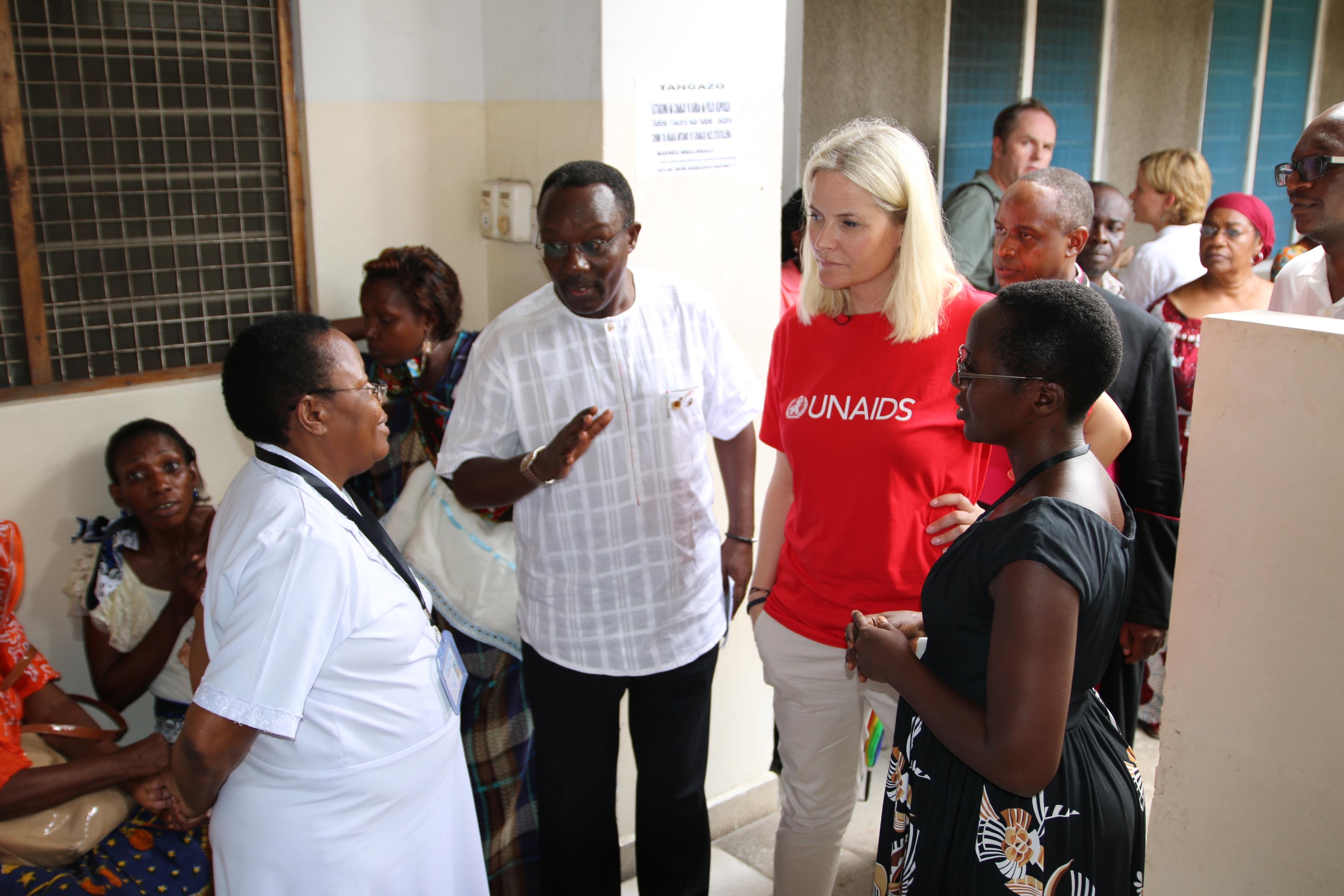 H.K.H. Kronprinsessen besøkte UNAIDS-støttede prosjekter i Tanzania i dag. Her fikk hun se hvordan mødre med HIV nå får sunne barn, takket være tilgang på viktige medisiner.