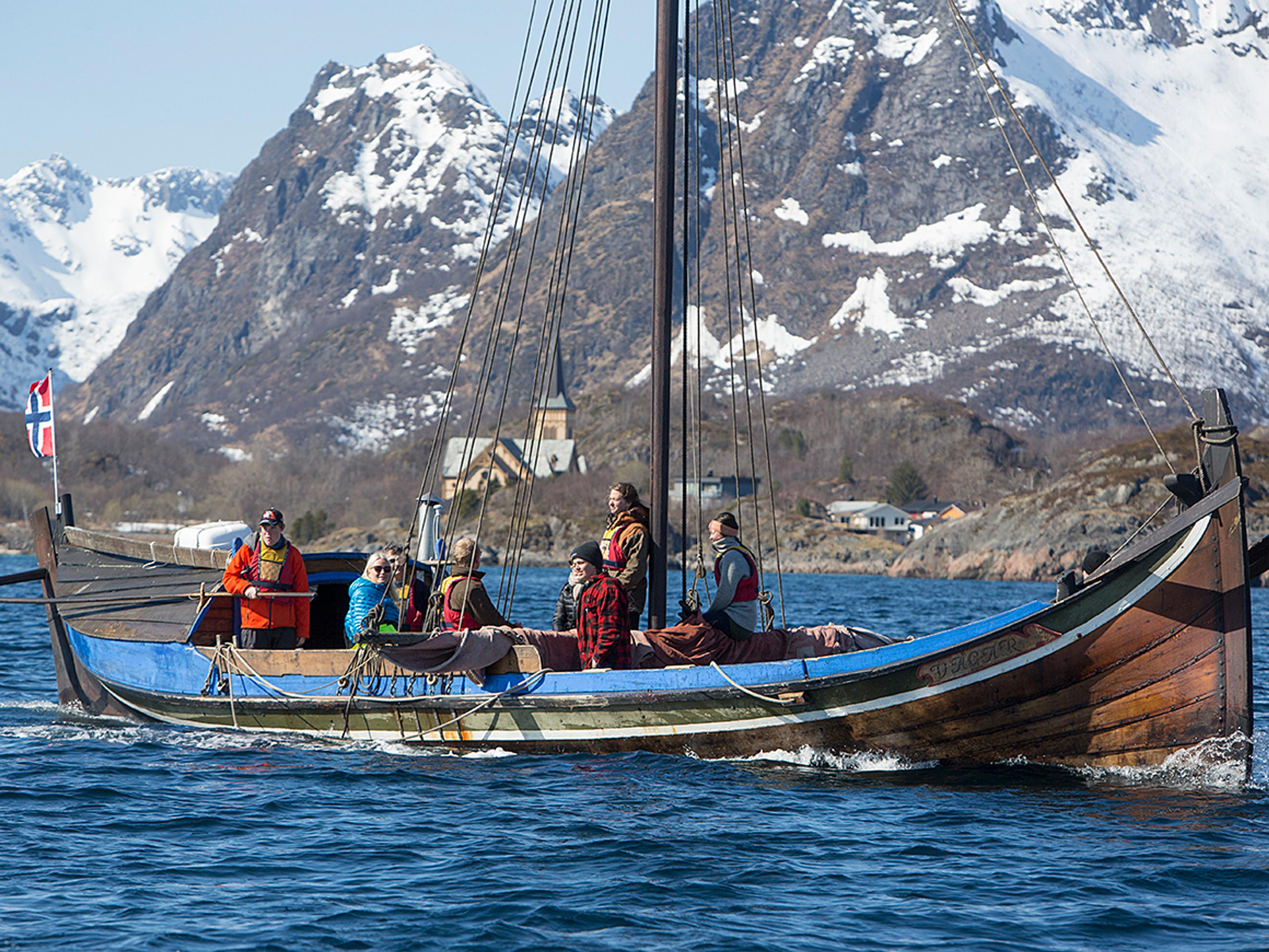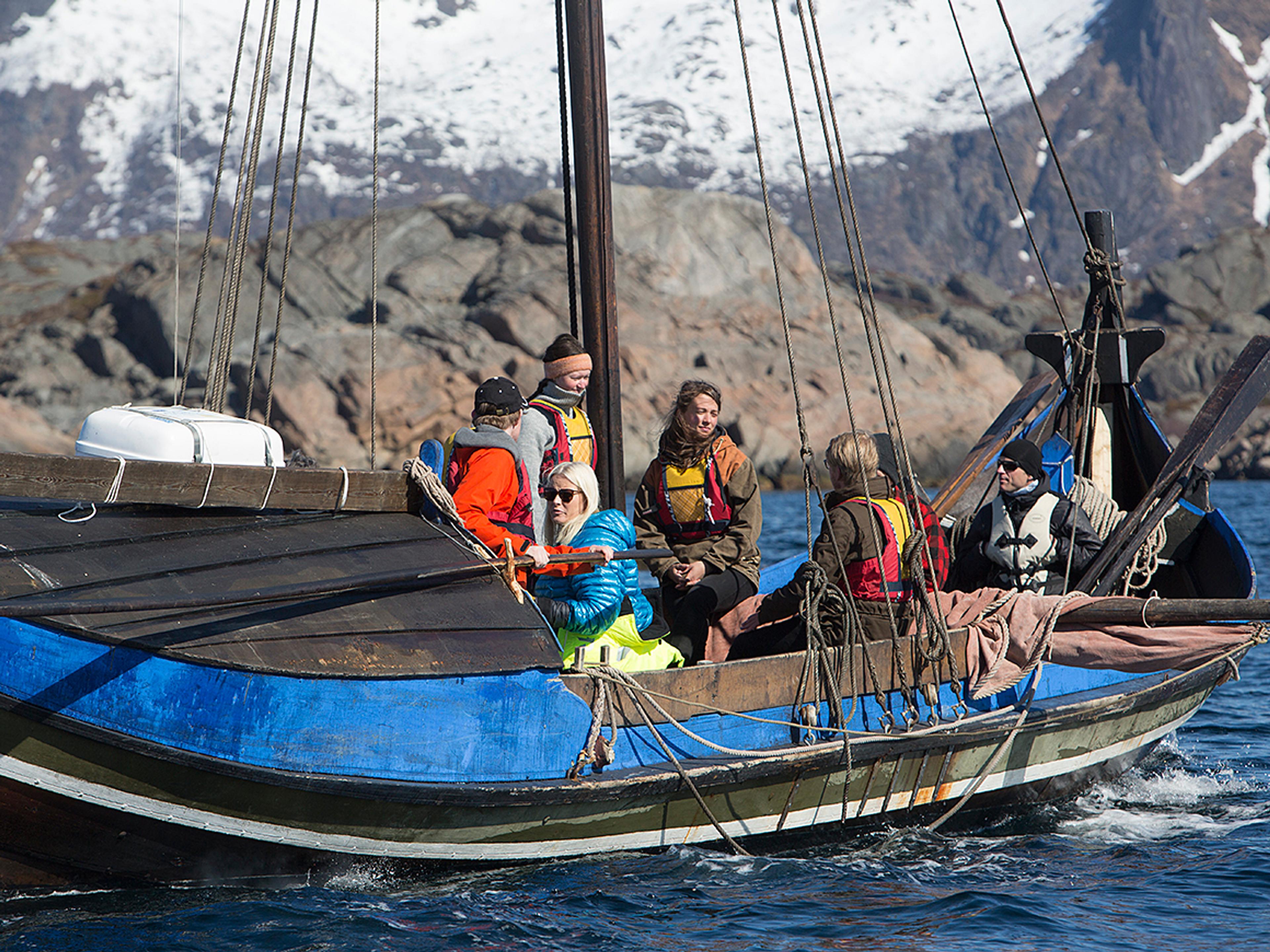 Så bar det sjøveien til WWFs konferanse. Folkehøgskolen har en vakker fembøring som brukes mye i undervisningen. Kronprinsessen gikk om bord, og med elver som mannskap gikk turen til havna i Svolvær.