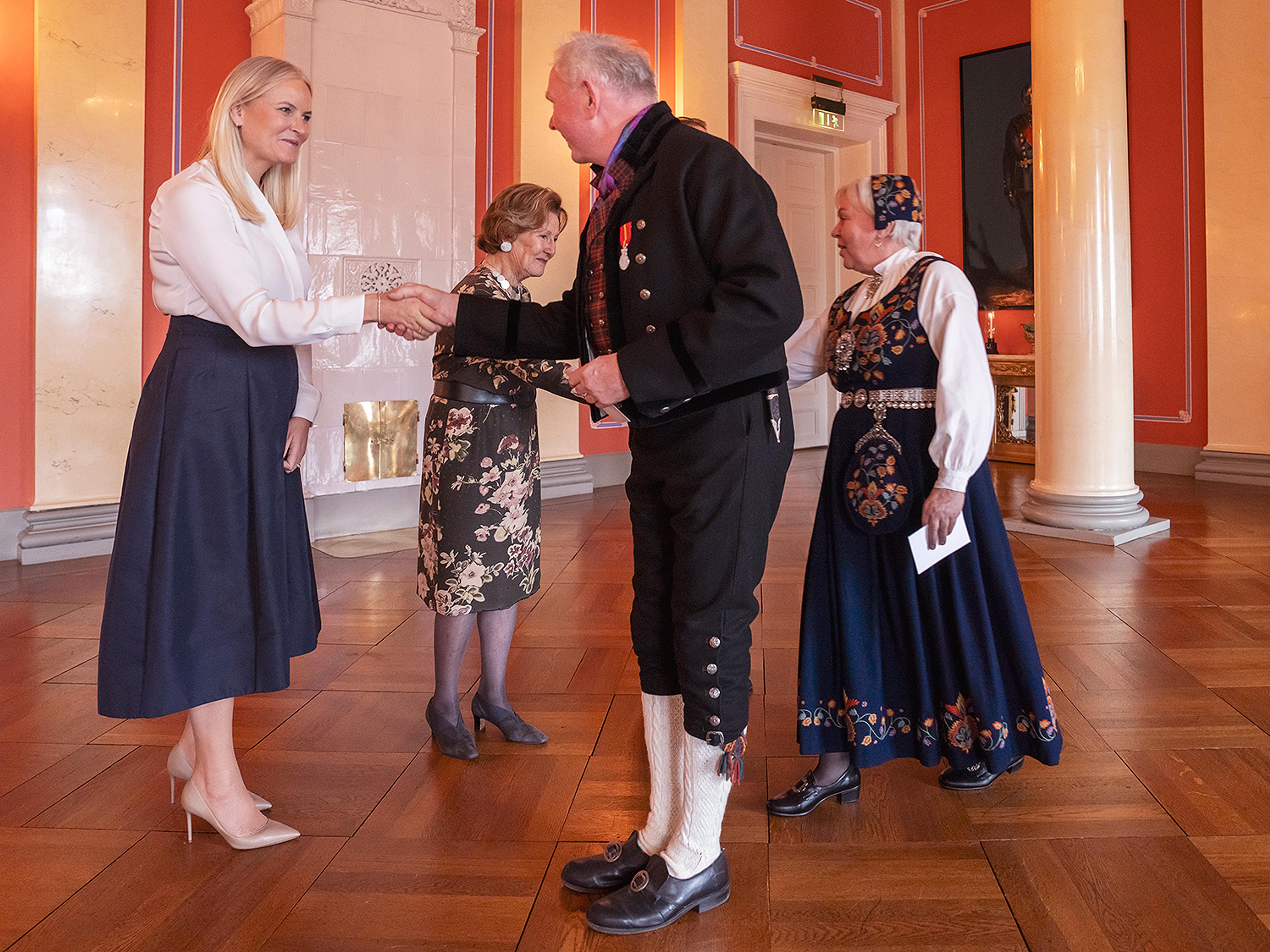I dag var 24 mottakarar av Kongens Fortenestmedalje i mottaking på Det kongelege slottet. Det er tradisjon at medaljemottakarane blir ønskte velkommen til Slottet saman med kvar sin følgjesperson.