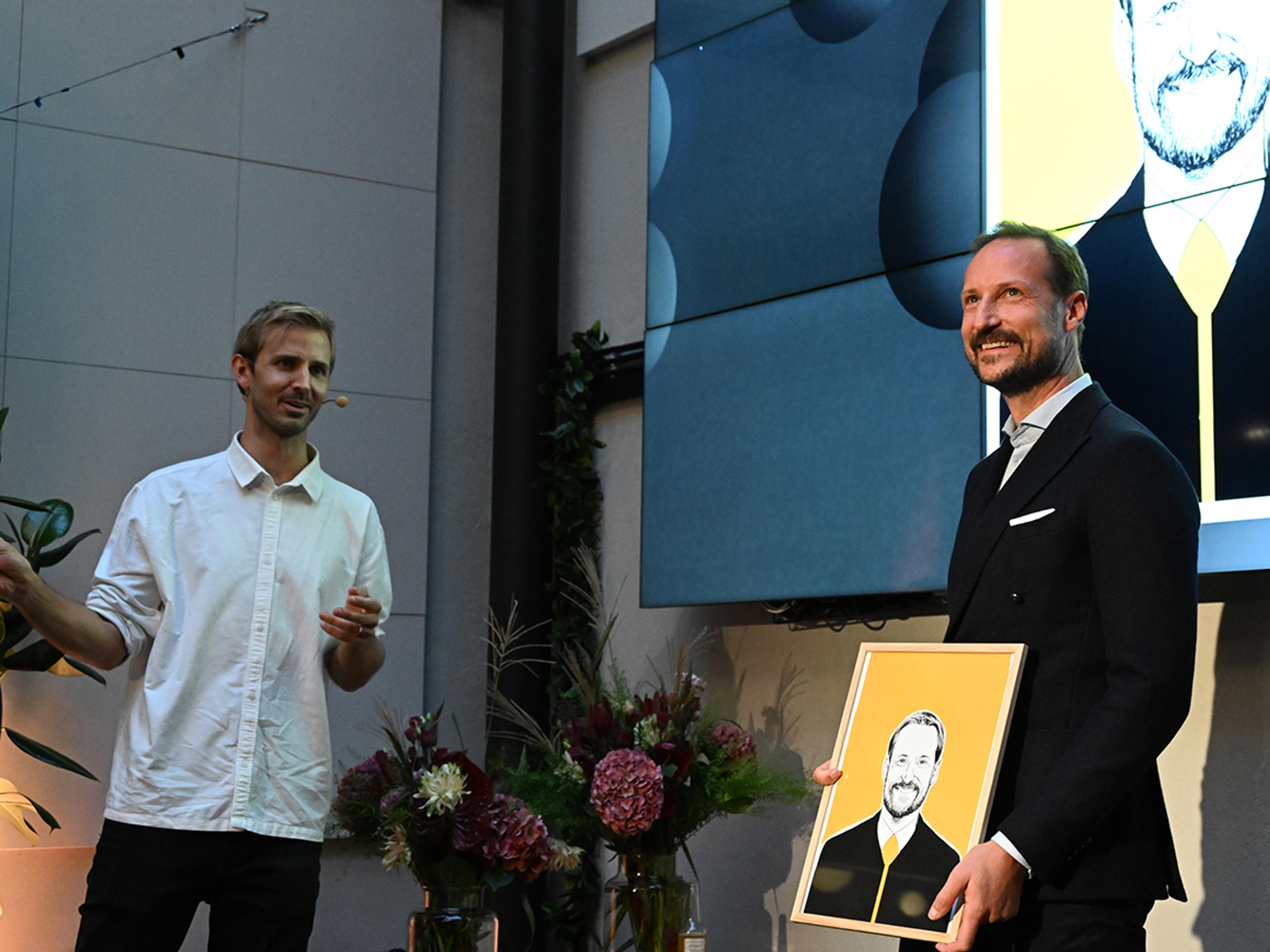 Til slutt bad Mesh-leiar og grunnleggjar Anders Mjåset Kronprins Haakon komme opp på scenen. Der vart Kronprinsen heidra med ein plass i Mesh Hall of Fame for den mangeårige innsatsen sin for innovasjon og gründerverksemd.
