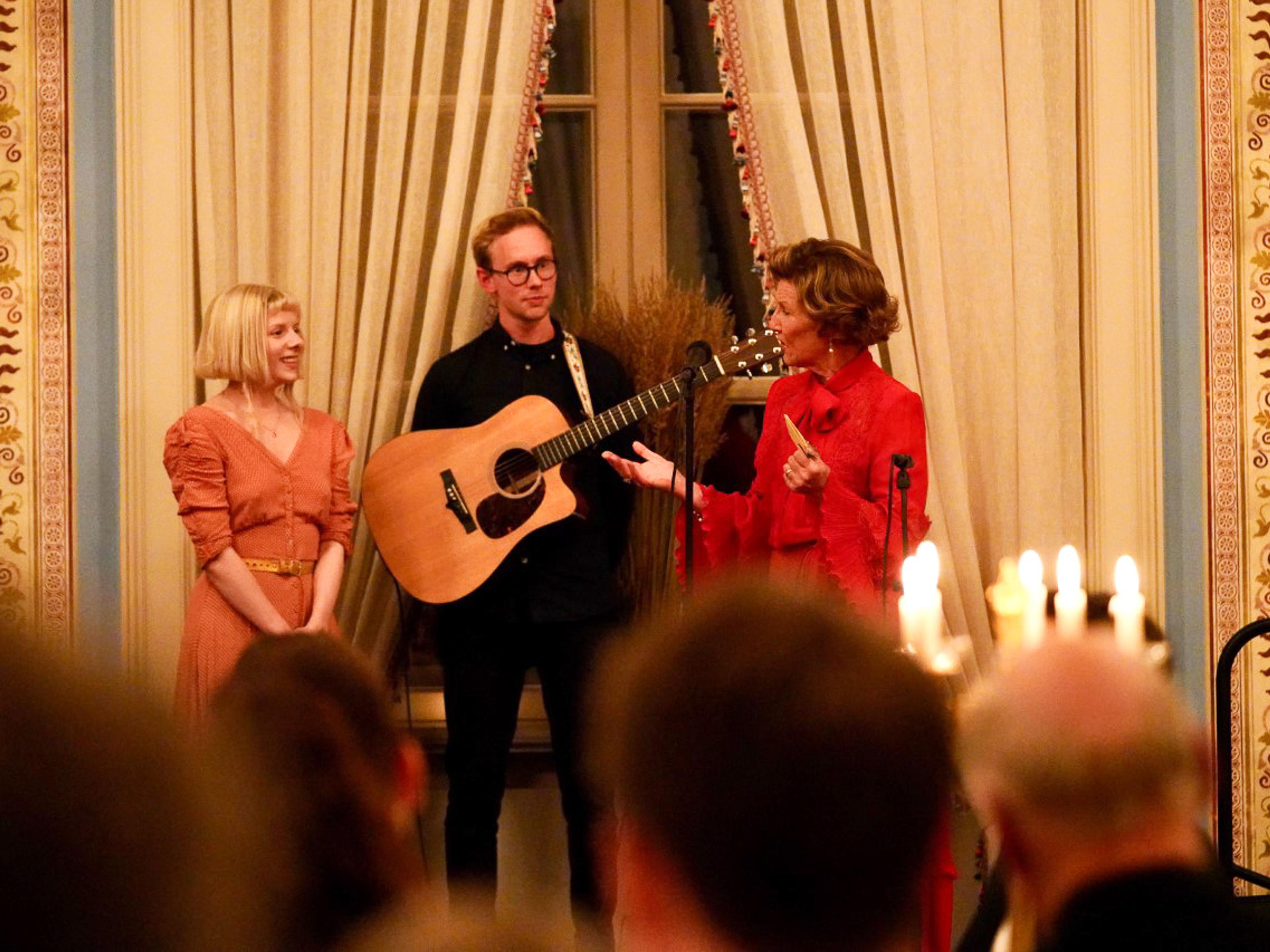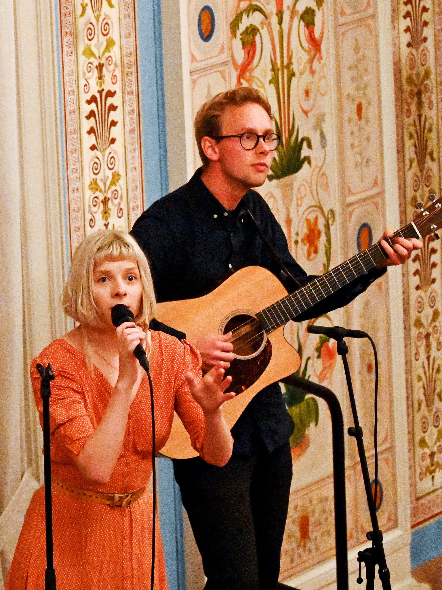 Til slutt inntok artisten Aurora Aksnes scenen i Store spisesal og sang tre sanger – med Fredrik Svabø på gitar.