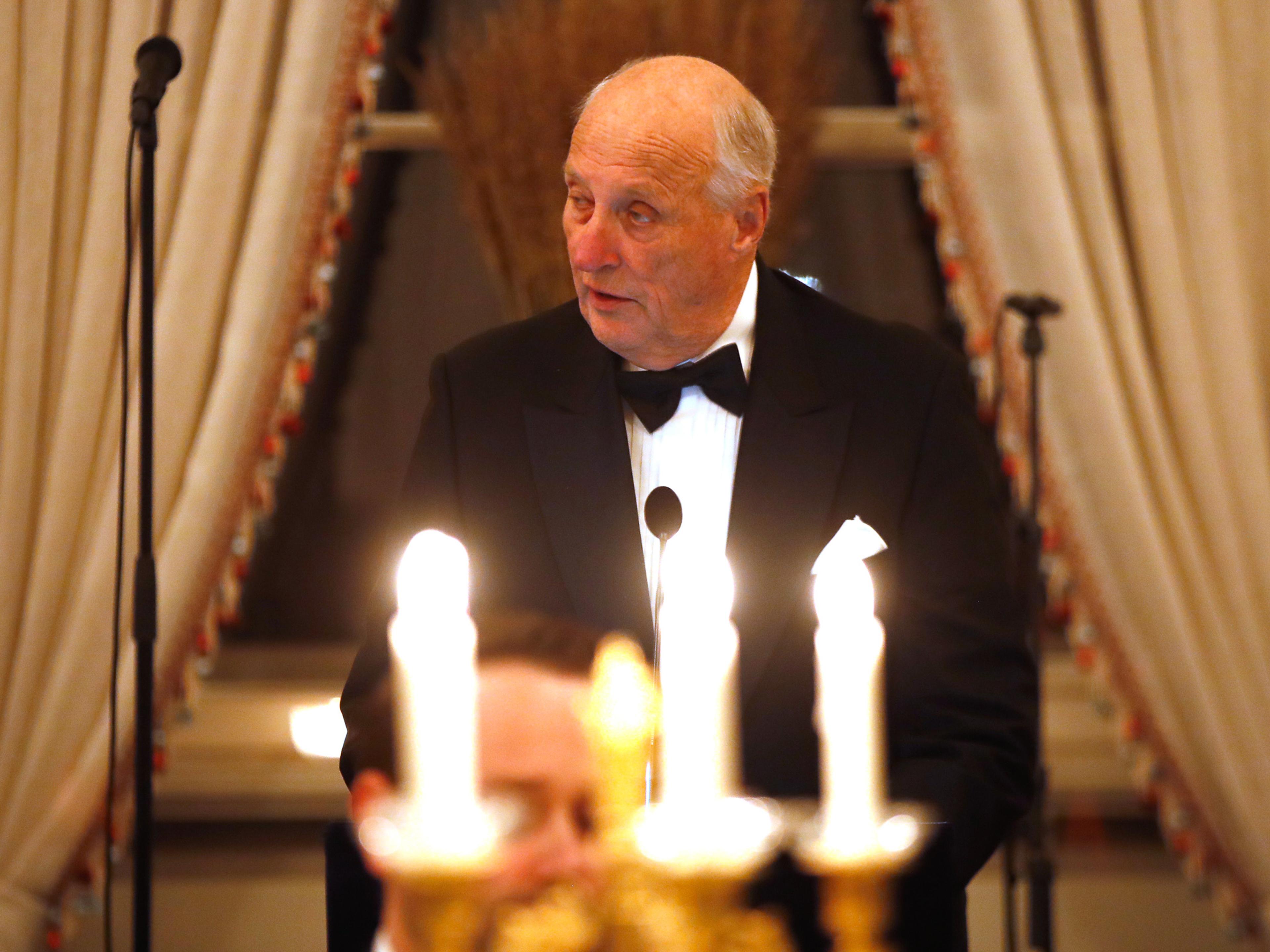 Etter at Kong Harald hadde ønsket gjestene velkommen, ble det servert laks og carpaccio av elg som forretter, kveite til hovedrett og epledessert som siste rett.