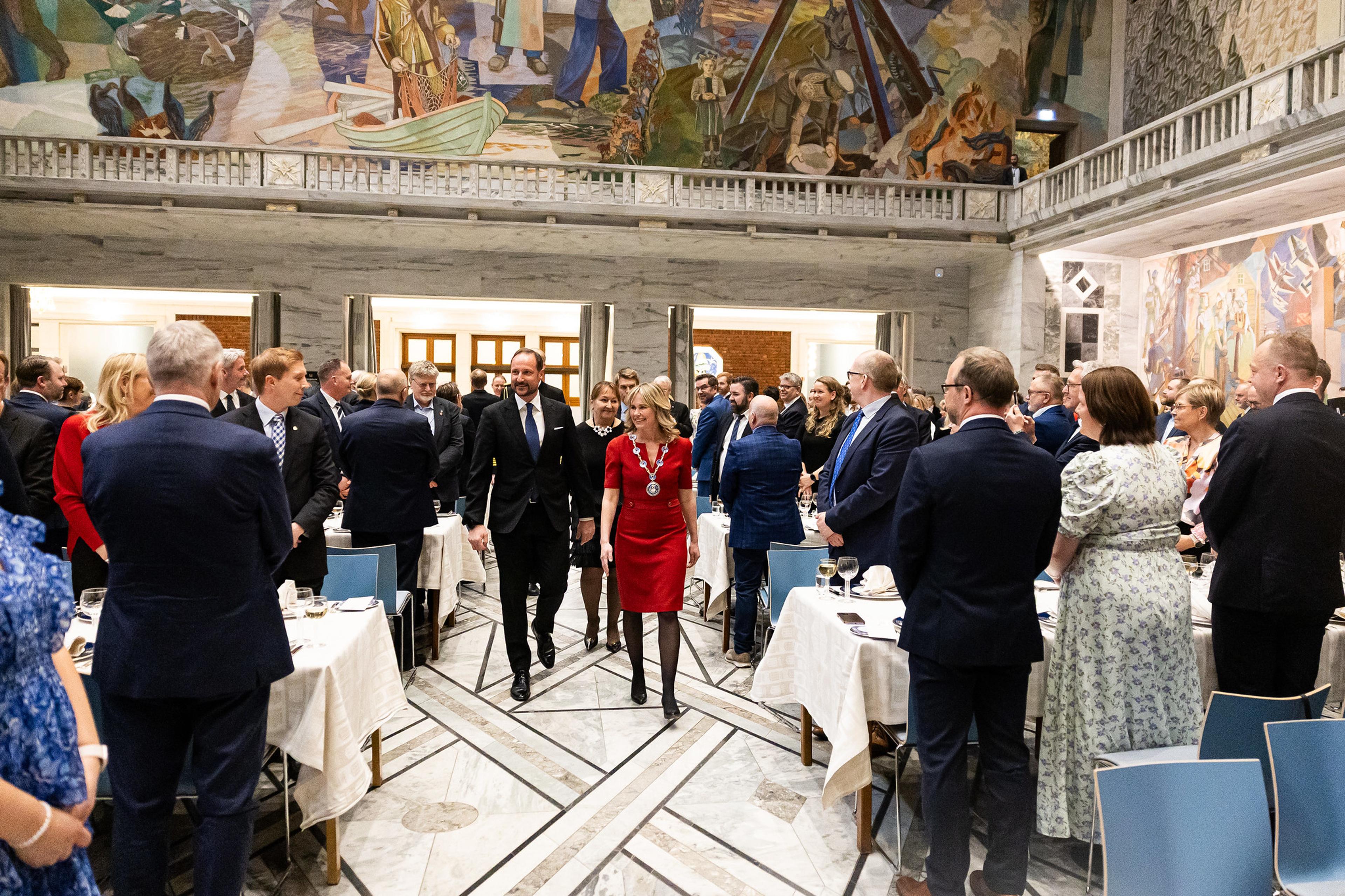 Hans Kongelige Høyhet Kronprinsregenten var til stede under en festmiddag for landets ordførere og kommunedirektører i Oslo rådhus.
