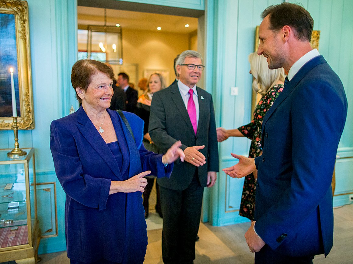 I morgen deles næringslivets fredspris – Oslo Business for Peace Award – ut i Oslo Rådhus. I kveld møtte Kronprinsparet årets vinnere og tidligere vinnere til middag på Skaugum.