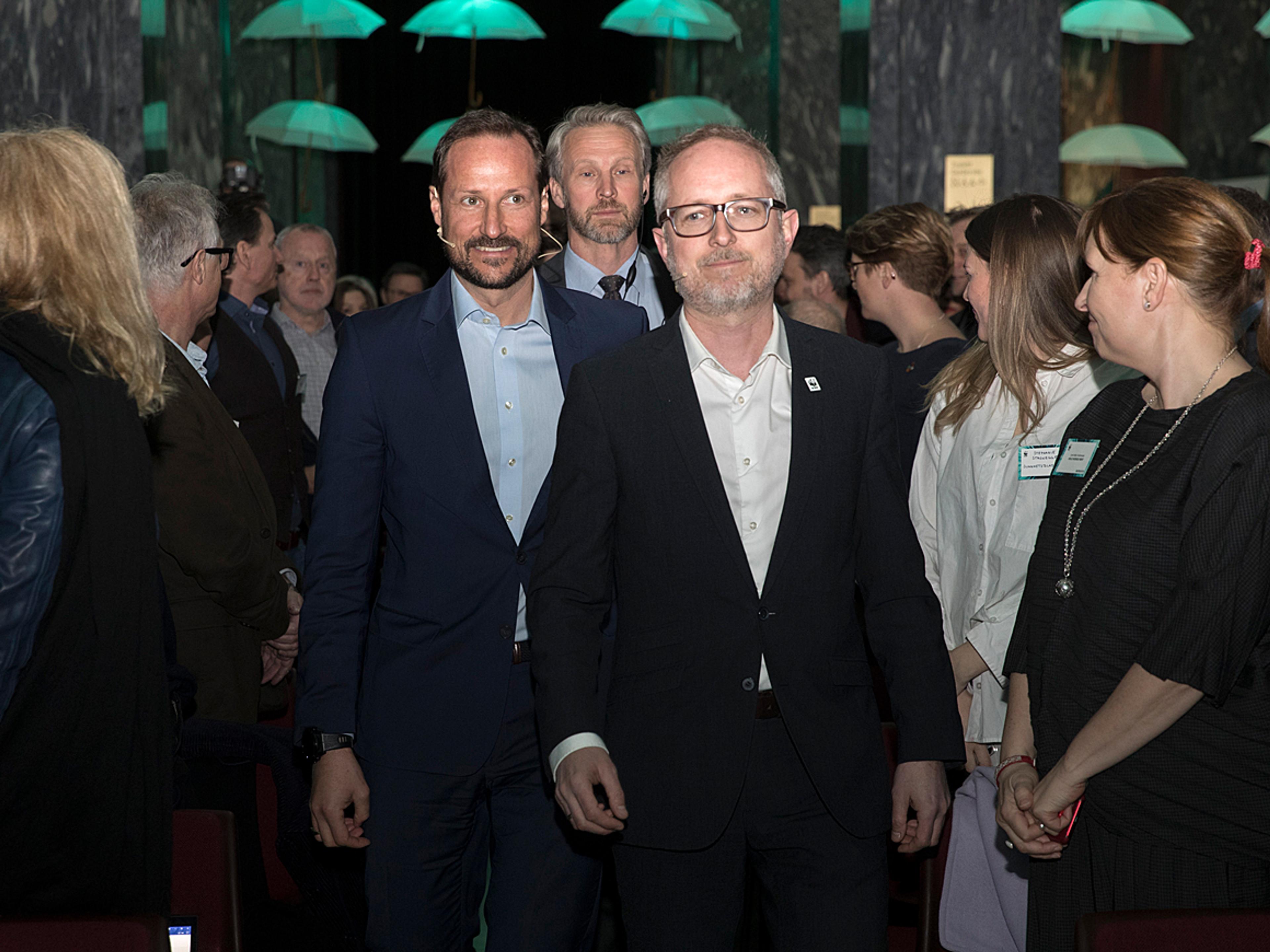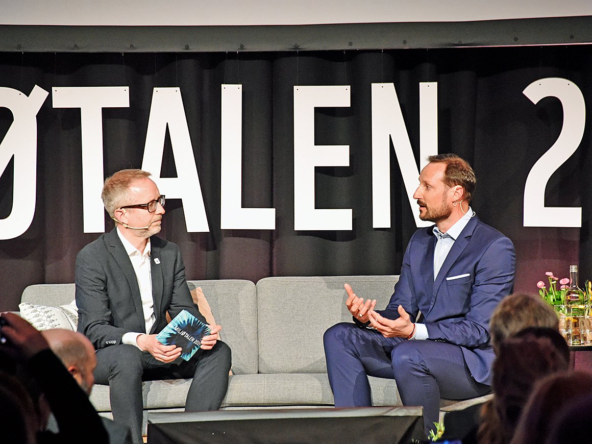 Hennes Kongelige Høyhet Kronprinsesse Mette-Marit var til stede i salen da Kronprinsen ble invitert opp til scenen i Sentralen i Oslo av dagens vert. Bård Vegar Solhjell utfordret ham til å snakke om Norge og vårt forhold til naturen.