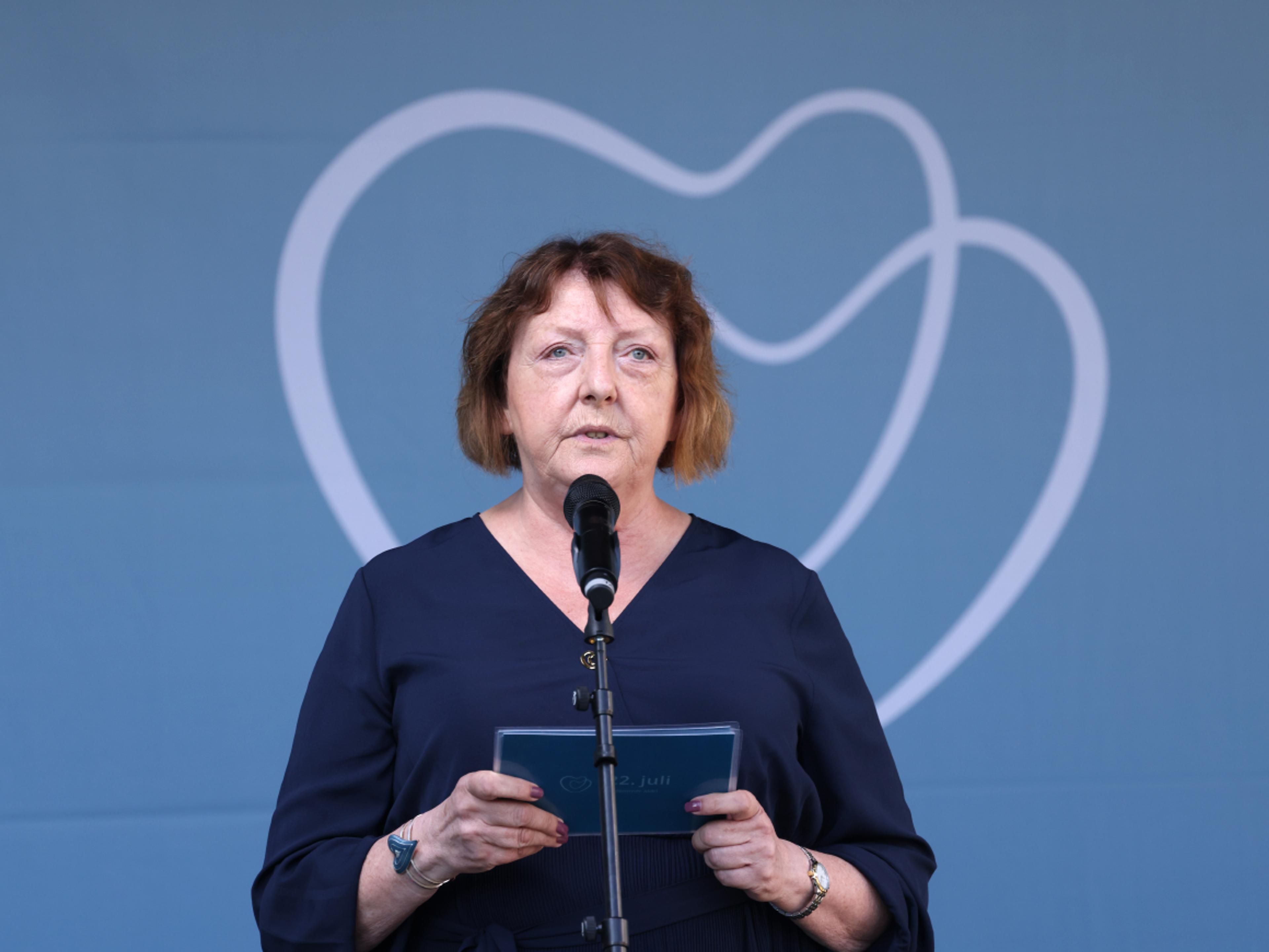 - En inndeling i "oss og dem" resulterte i hat og drap, sa Hoem, og vi har ikke stanset dette hatet. Drapsmannen var en av oss. Den livsfarlige rasismen og høyreekstremismen lever fortsatt. Alle hatefulle ord fører ikke til terror, men all terror starter med hatefulle ord. Det er for sent å si fra når hatet har tatt liv. Vi må si at vi ikke godtar rasisme, ikke godtar hat. For gjør vi det, kan vi kanskje holde løftet om "aldri mer 22. juli".