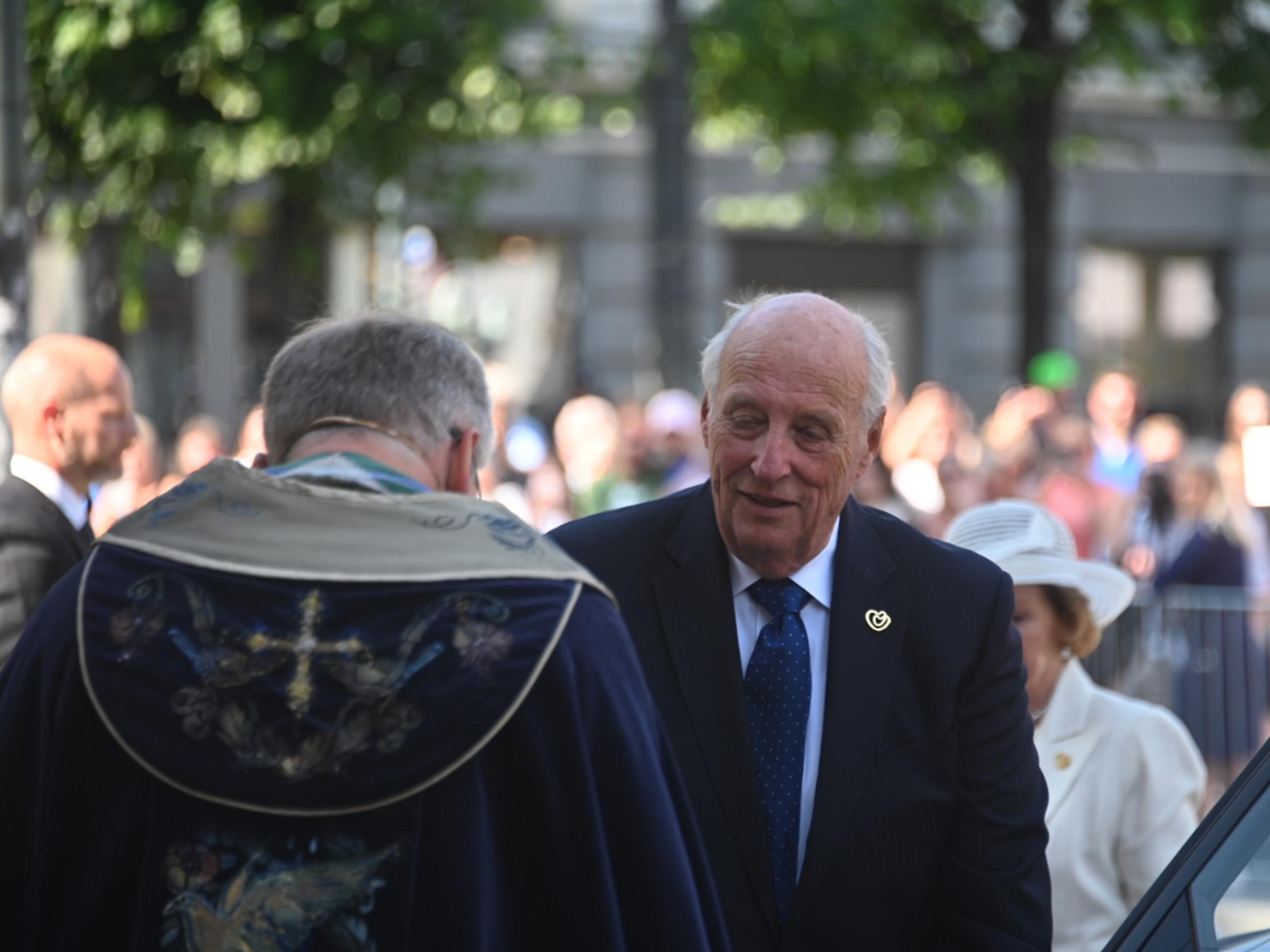 Deres Majesteter Kongen og Dronningen var til stede under minnegudstjenesten i Oslo domkirke, der så mange kom sammen for å legge ned blomster i dagene etter terrorhandlingene.