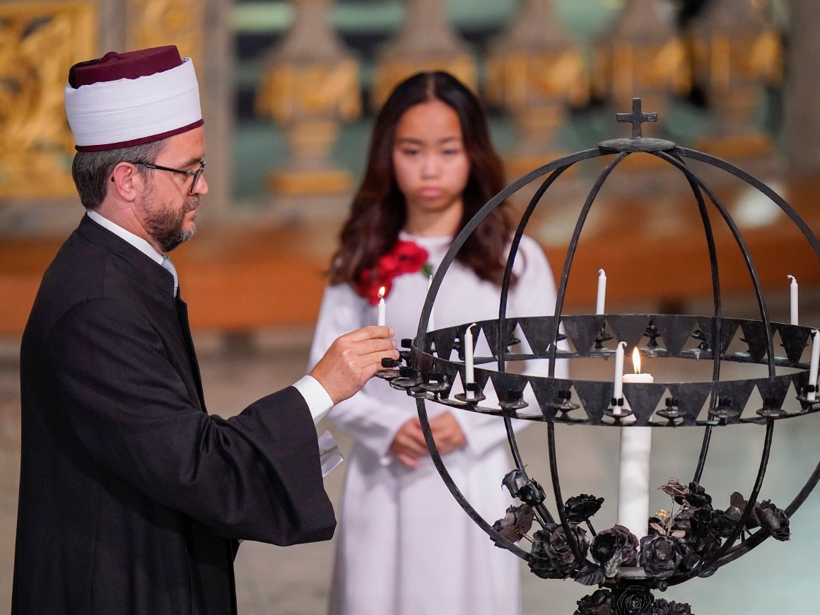Imam Senaid Kobilica innledet til tenningen av åtte lys: