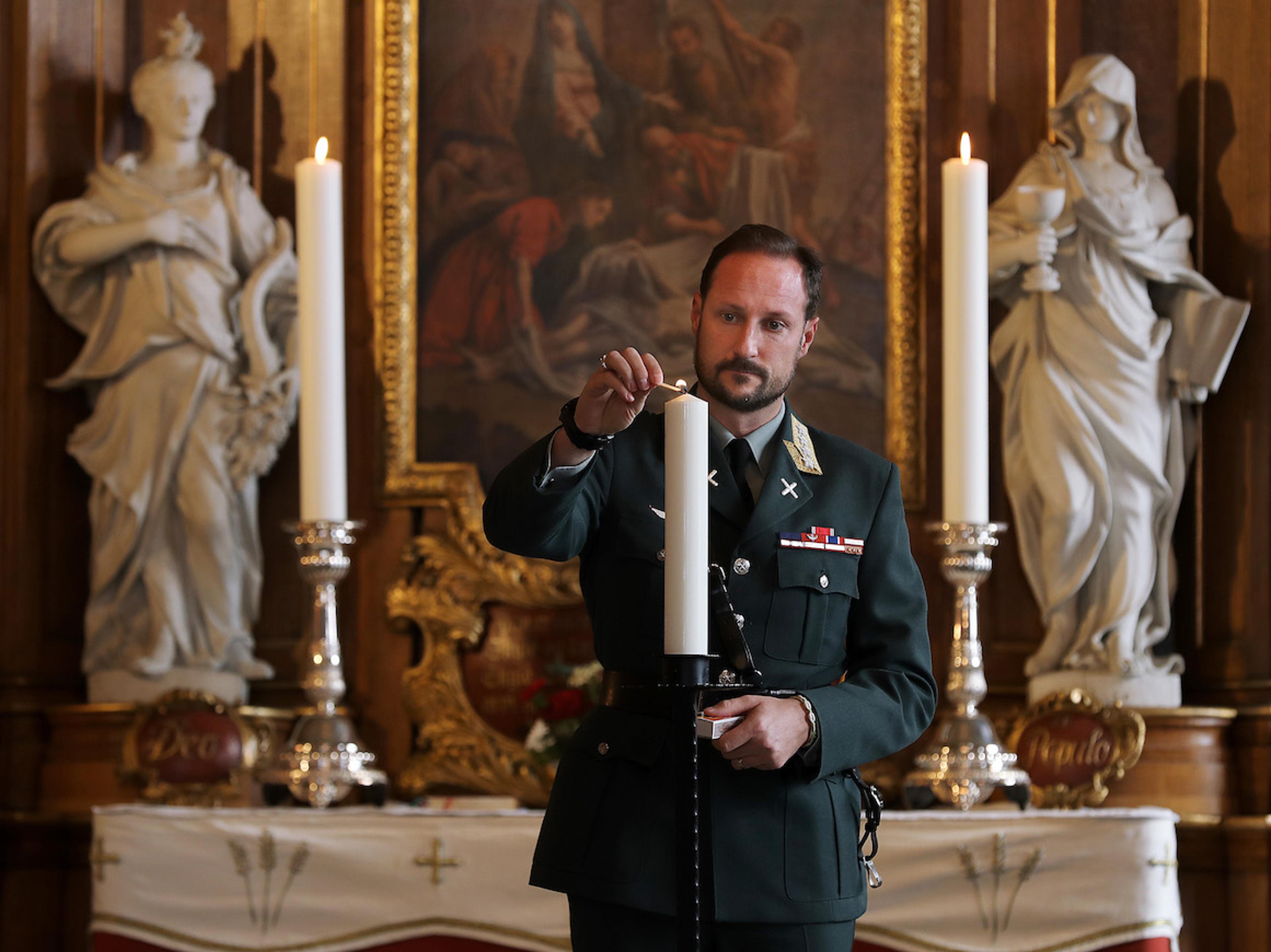 Etter kransnedlegginga deltok Kronprinsregenten ved minnegudstenesta i Akershus slottskyrkje, der feltprost oberst Nils Terje Lunde var forrettande prest.